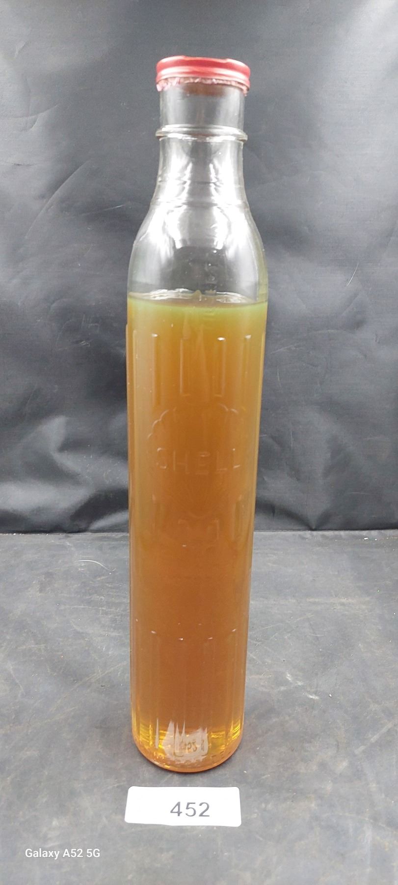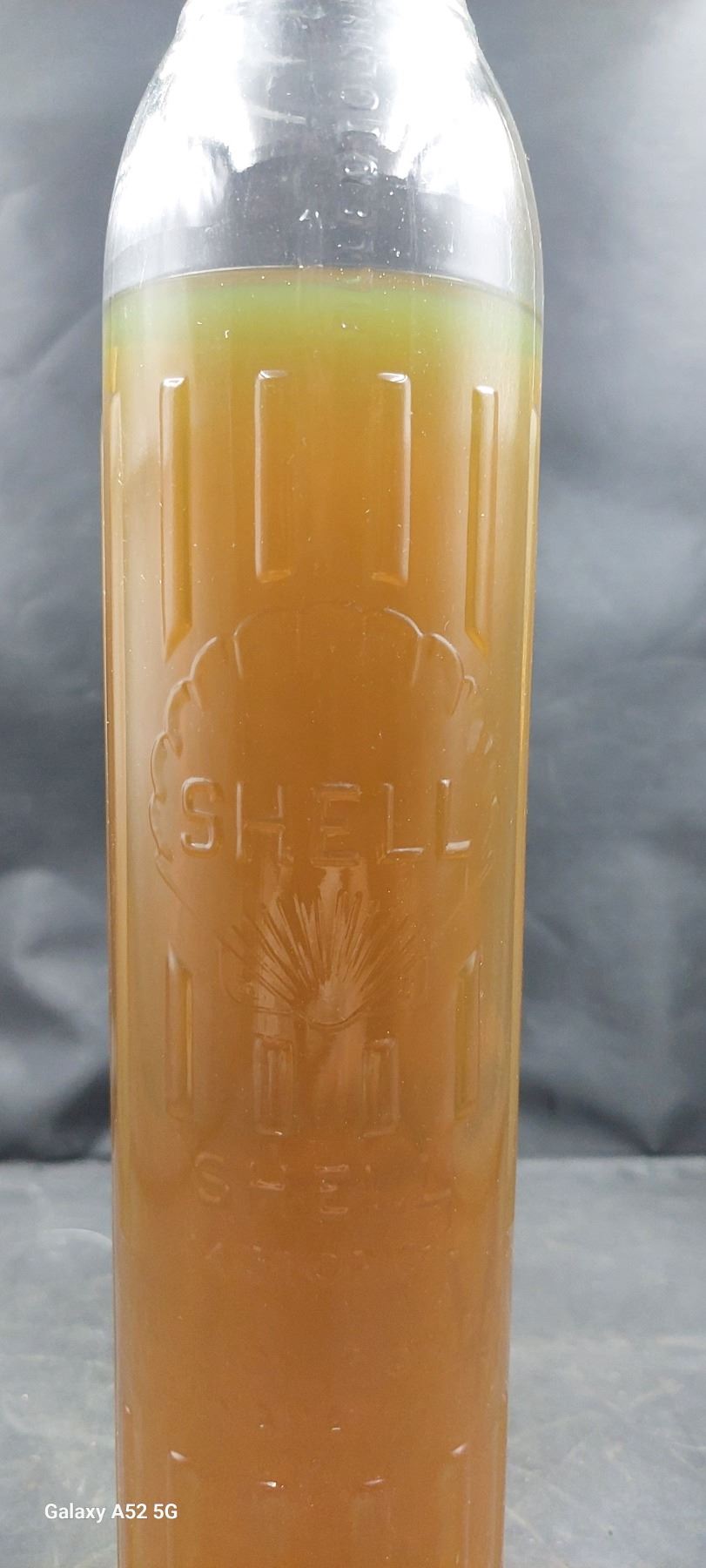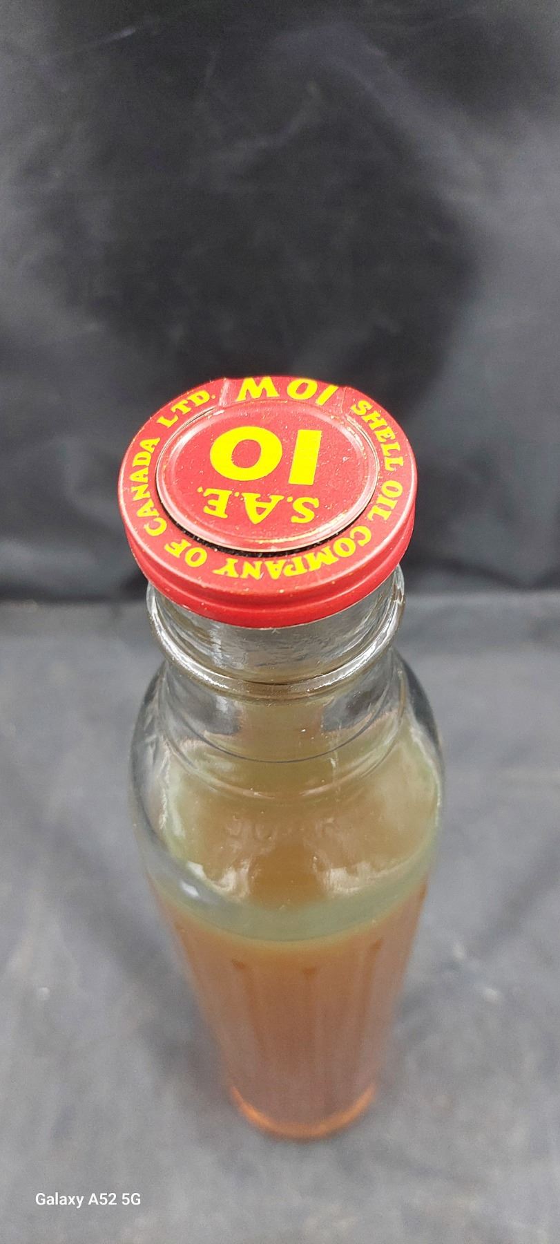 Vintage Shell motor oil embossed oil bottle with original cap 15" tall