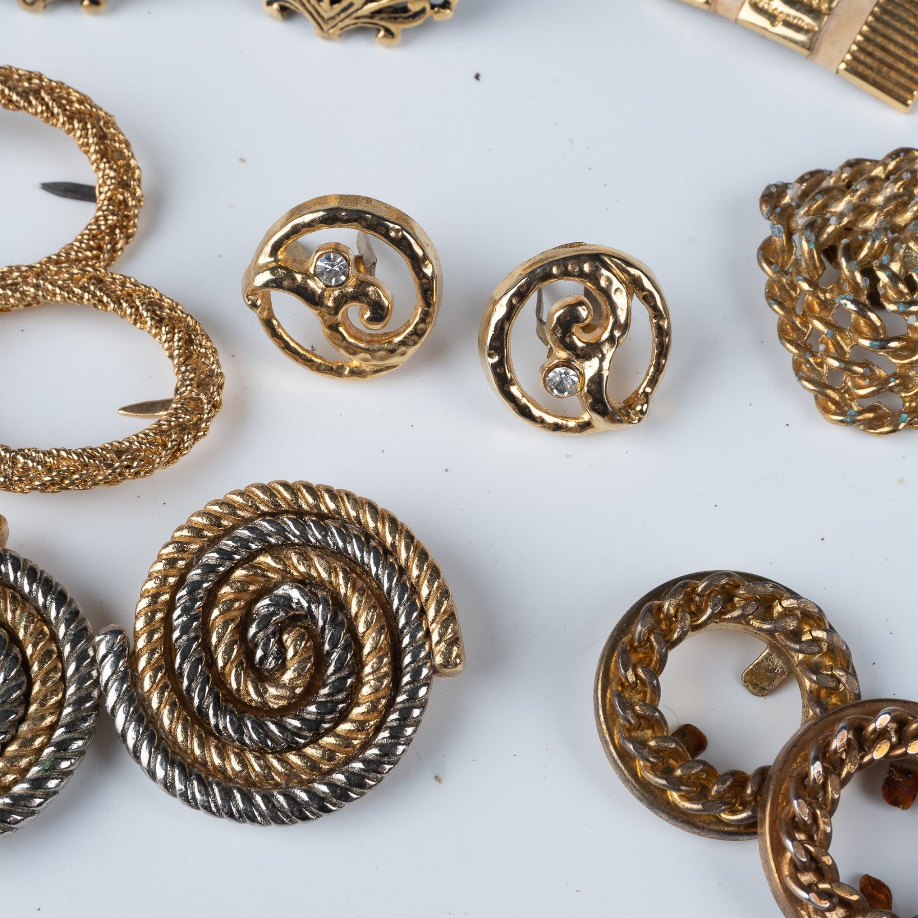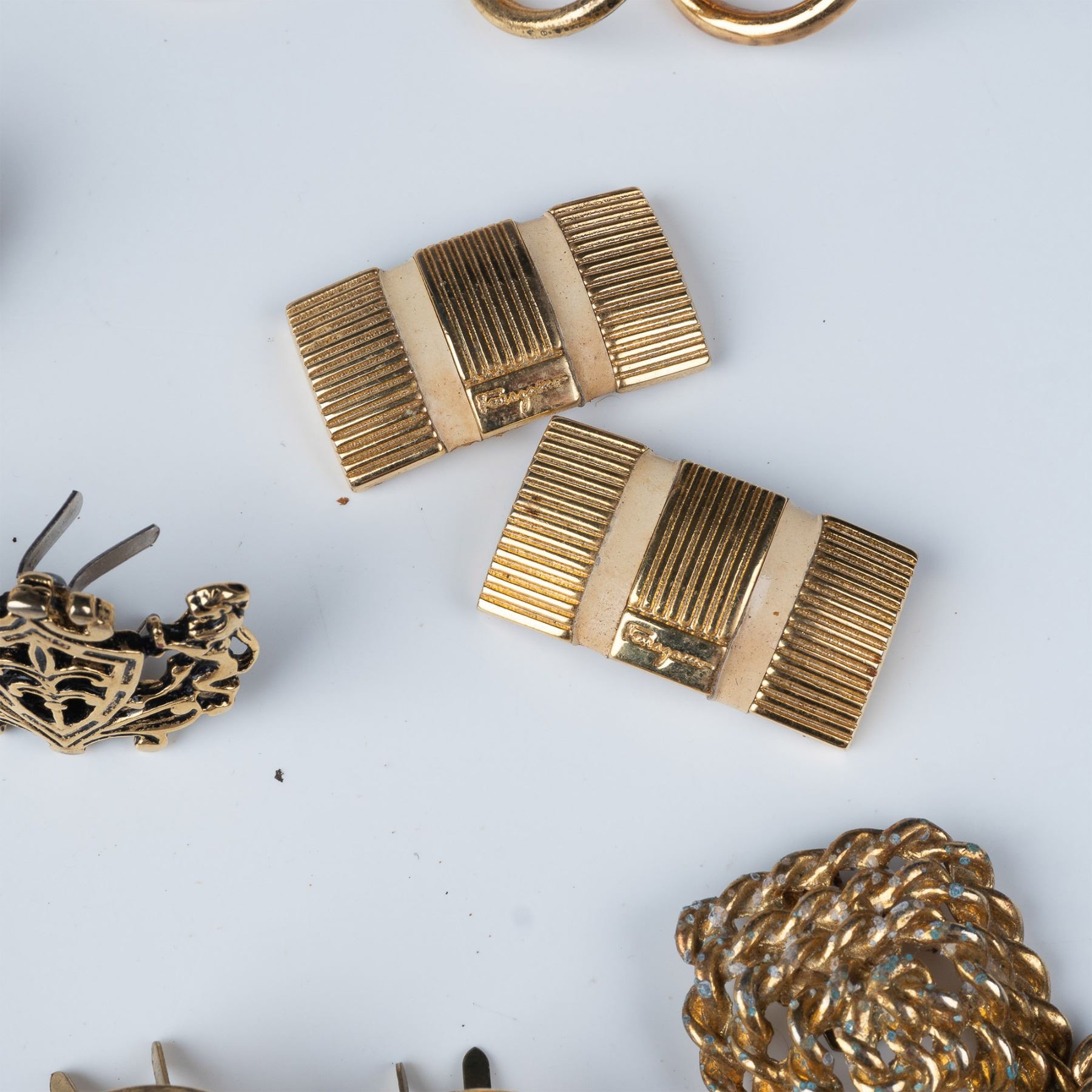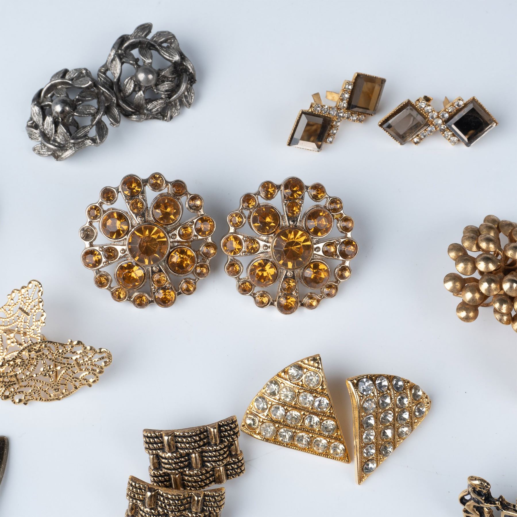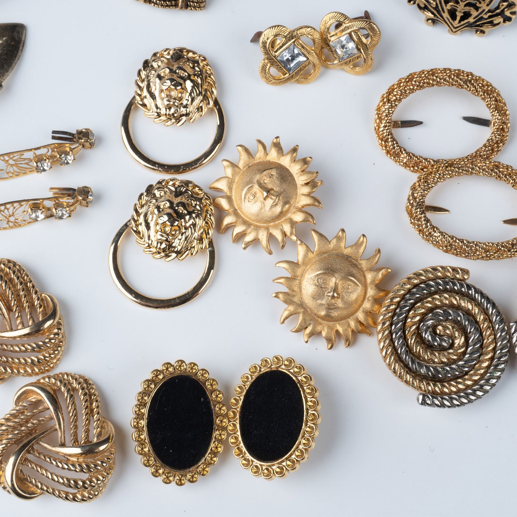 A curated collection of 28 pairs of vintage shoe clips in a variety of elegant designs, featuring gold-tone, silver-tone, and mixed-metal finishes. This assortment includes classic, ornate, and whimsical styles, ranging from intricate filigree patterns to floral motifs, geometric shapes, and textured embellishments. Some pieces incorporate sparkling rhinestones, sculpted metalwork, and enamel detailing, adding a touch of sophistication to any footwear. Perfect for vintage fashion enthusiasts, costume designers, or collectors, this lot offers a diverse selection of decorative clips suitable for enhancing shoes, handbags, or accessories. Largest item measures 2.25"L.