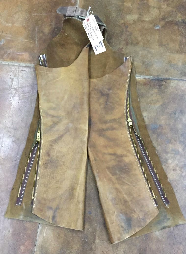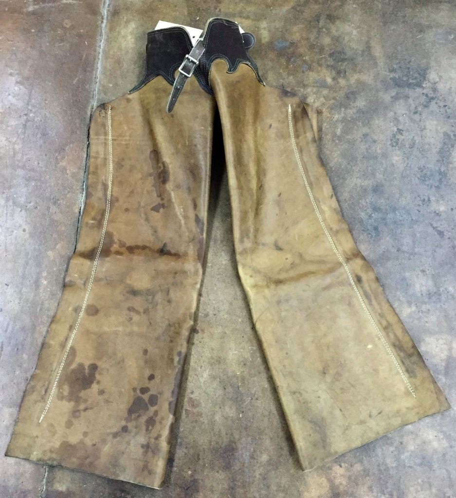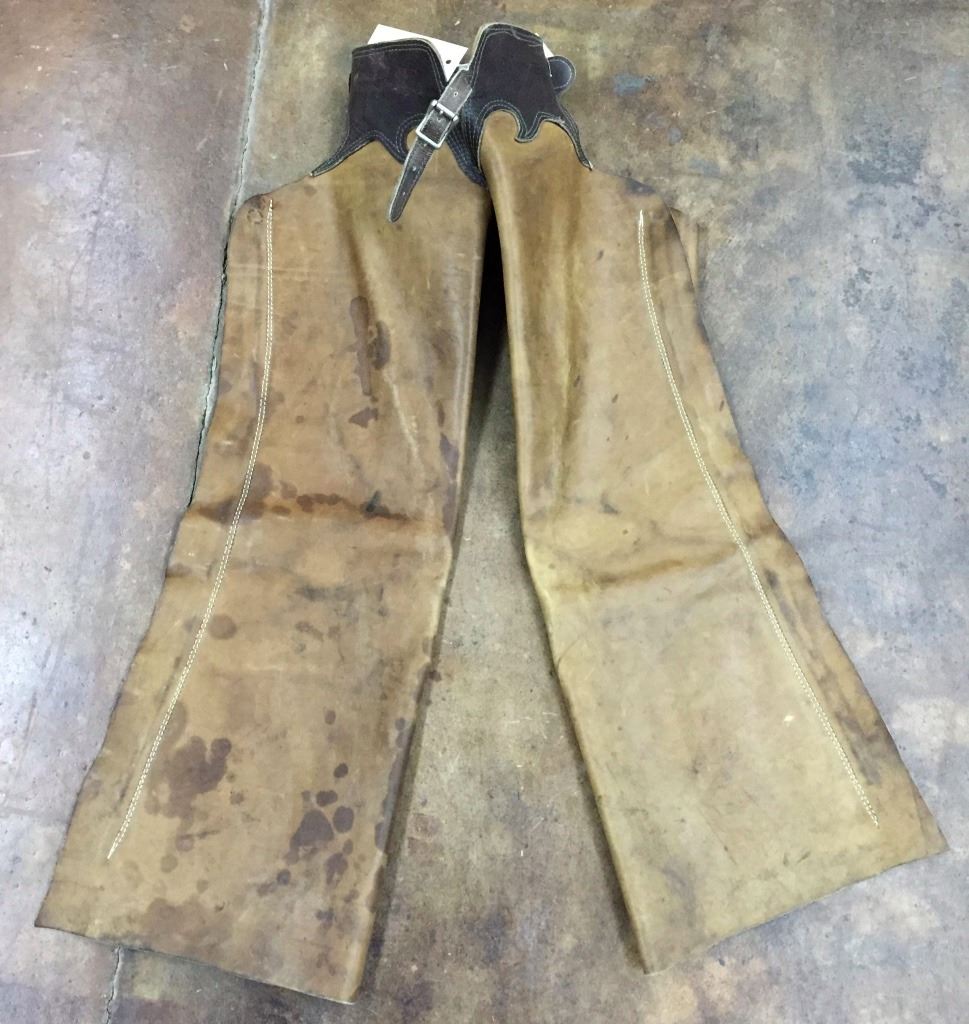 These vintage chaps measure approx. 33” in length. No makers mark found, but they are in pretty decent condition and could be used or displayed. Please look closely at the pics as they are an important part of our description. Shipping: There will be a $7 handling / packaging fee for shipping this lot. The actual cost of postage will be added on top of that.