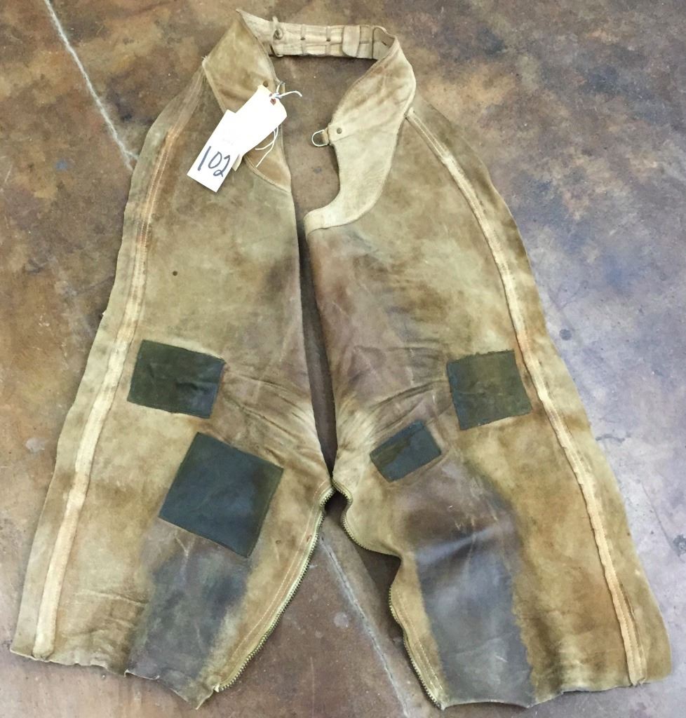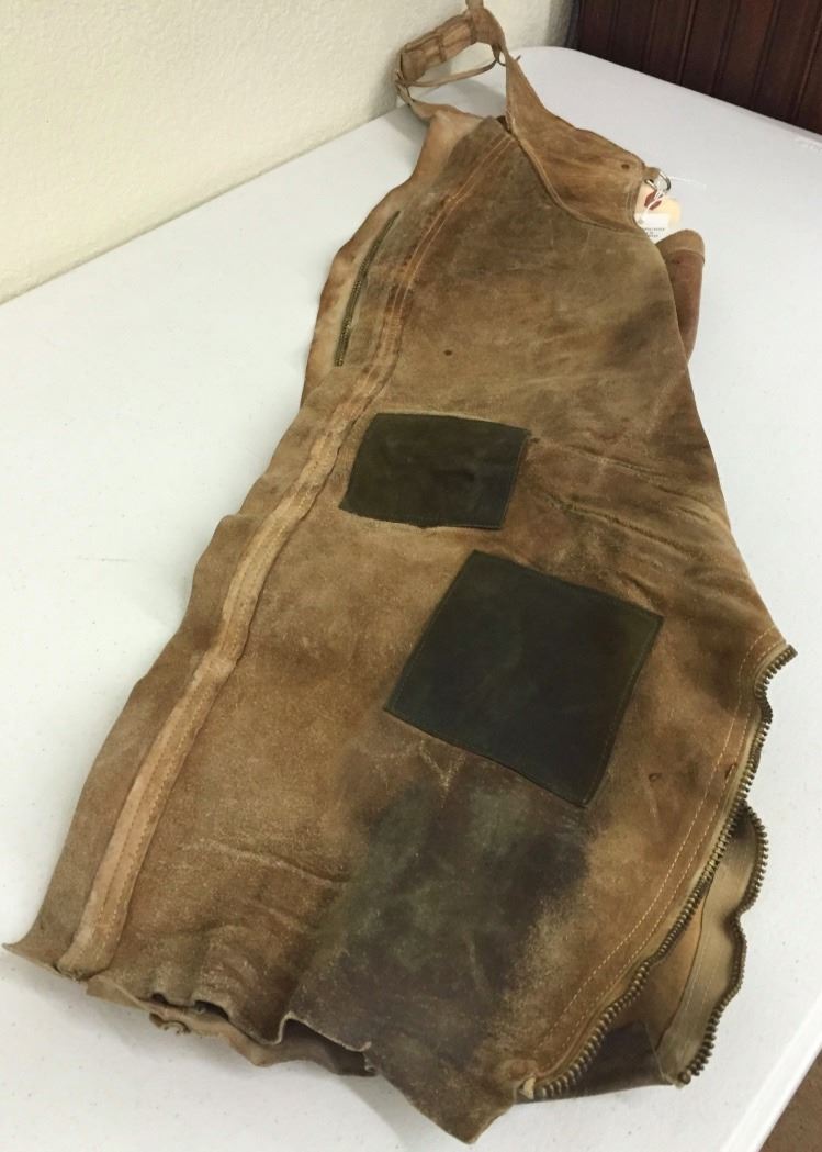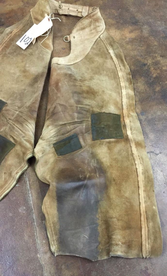 These chaps measure approx. 33” in length. They have been used and repaired! Could still be used or displayed. Please look closely at the pics as they are an important part of our description. Shipping: There will be a $7 handling / packaging fee for shipping this lot. The actual cost of postage will be added on top of that.