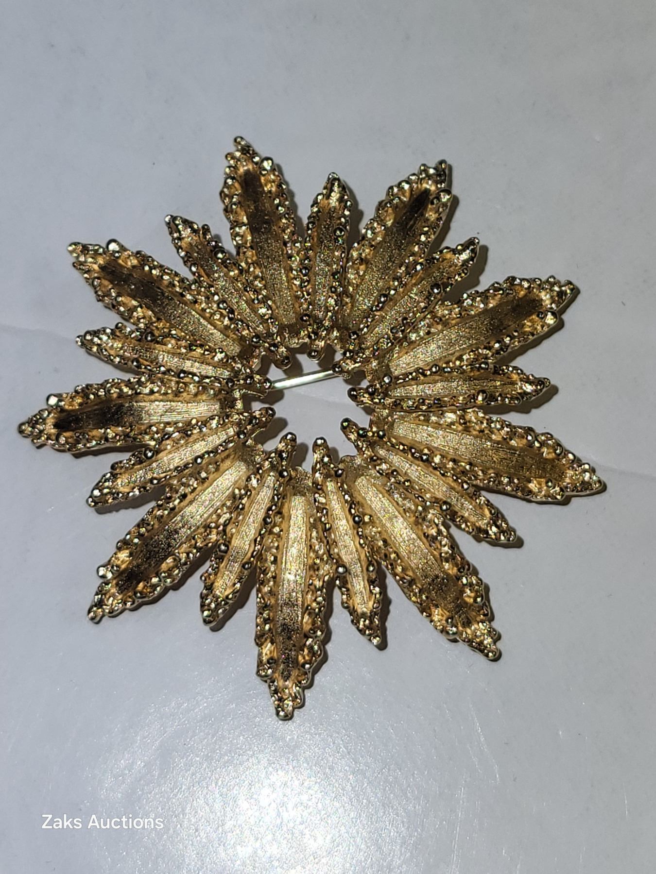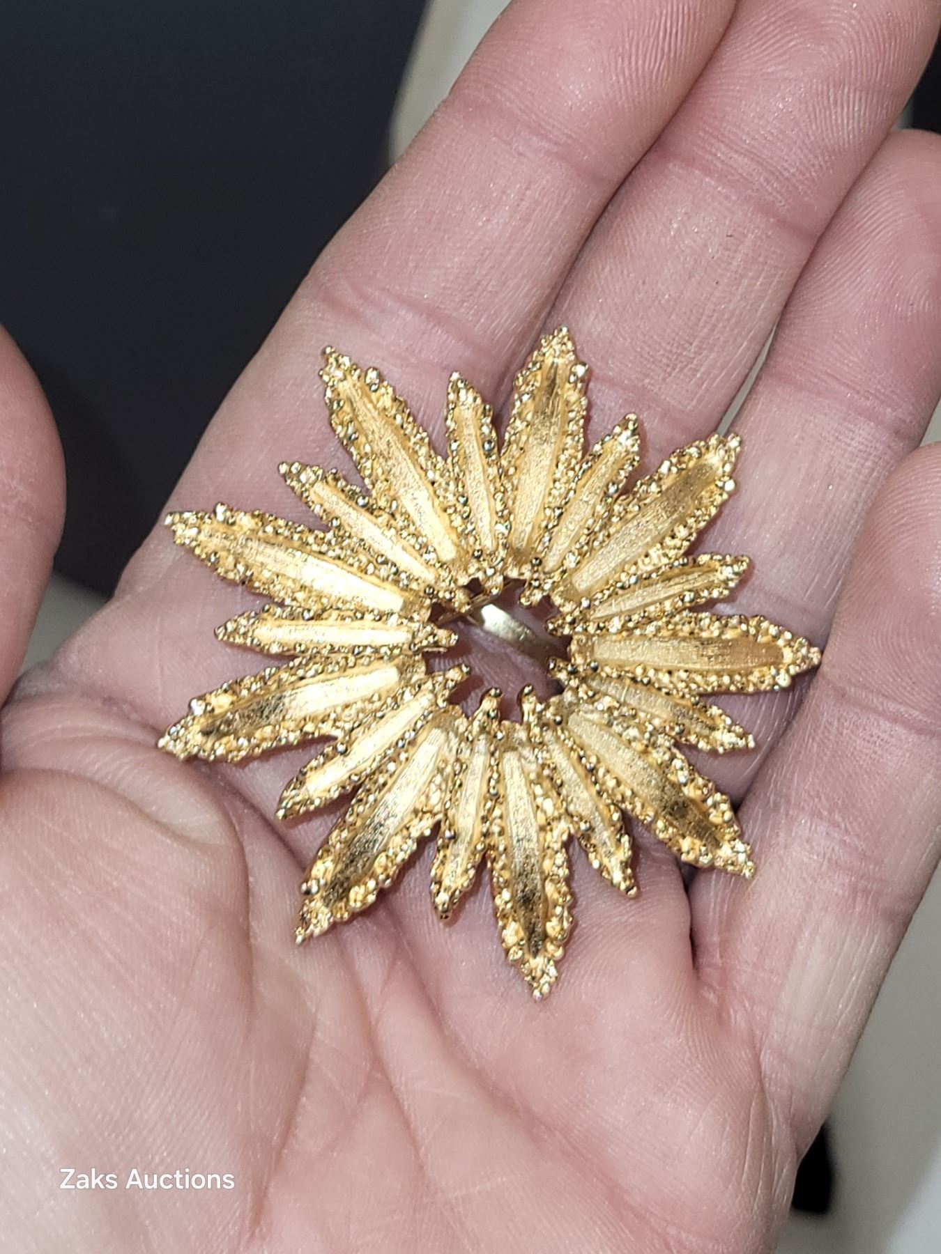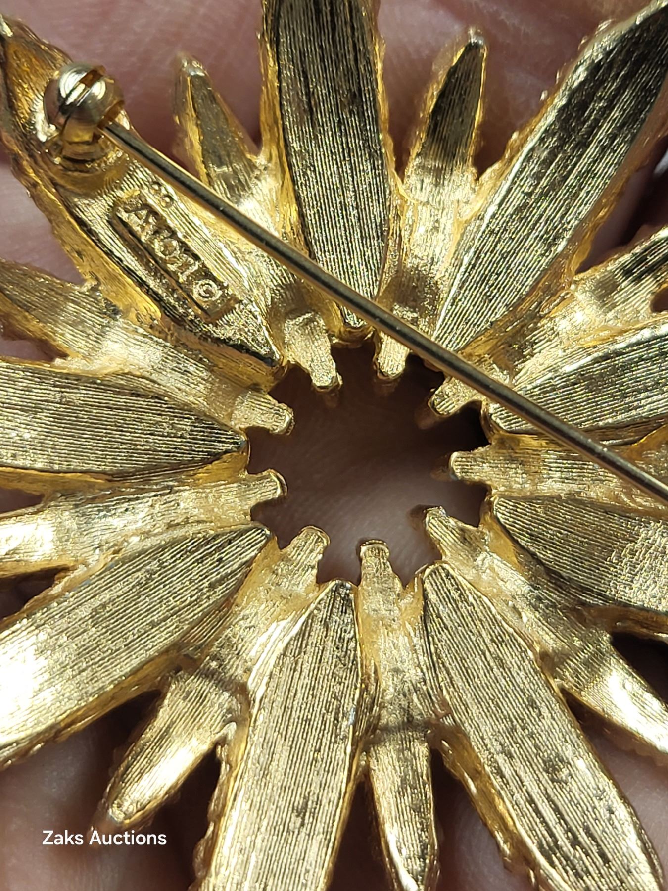 Vintage Signed Avon Matte Satin Textured Goldton Starburst Brooch