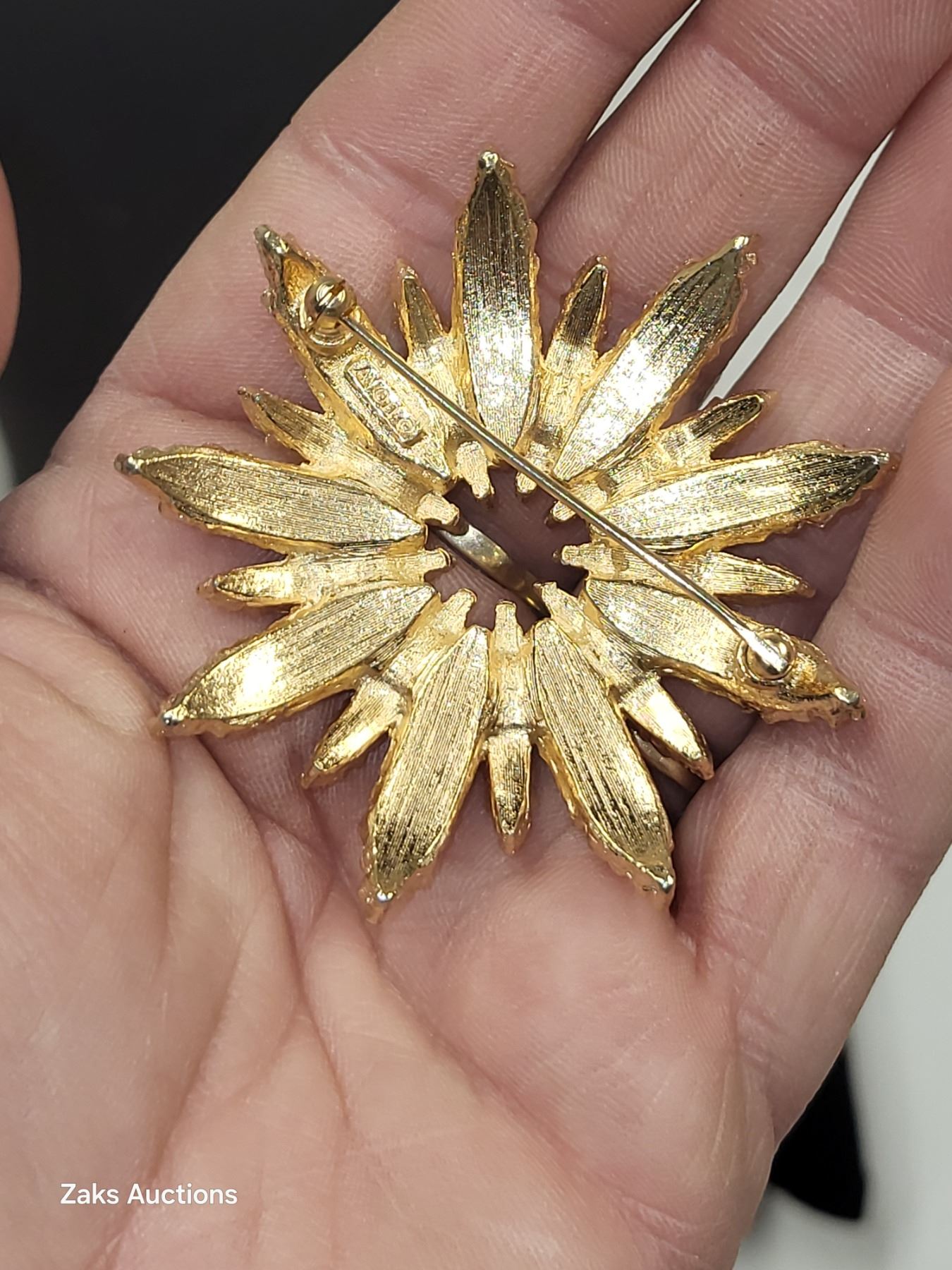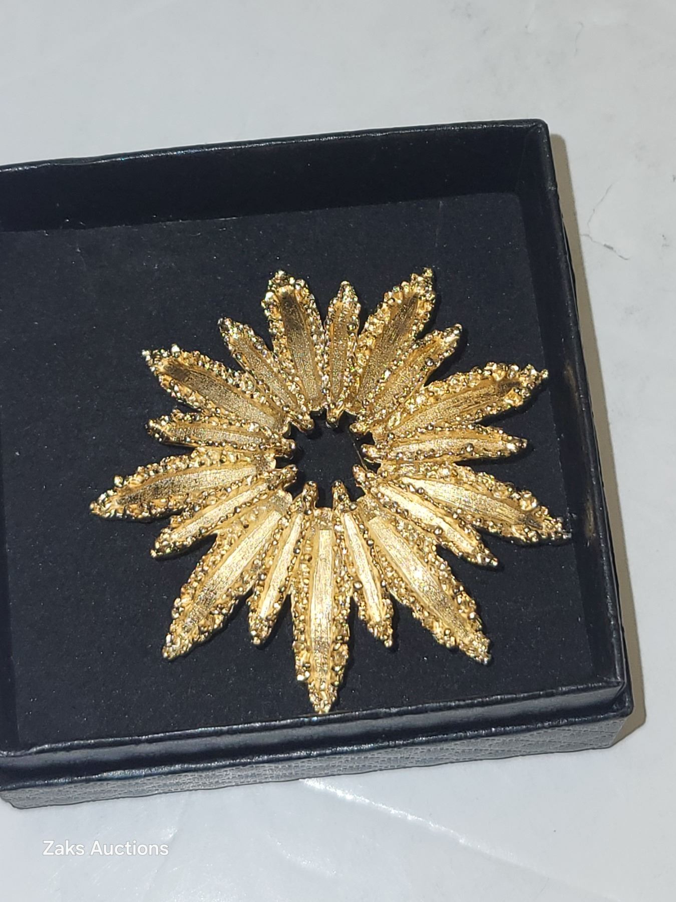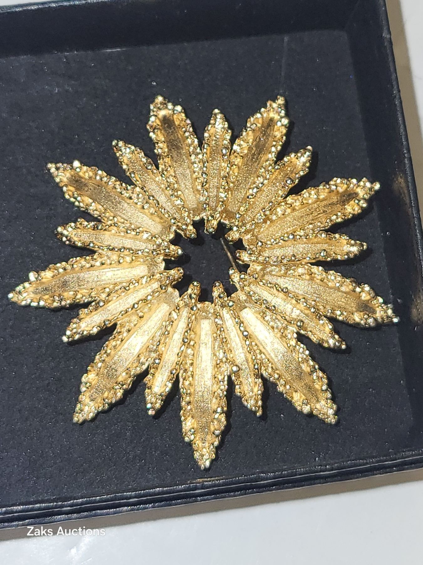 Vintage Signed Avon Matte Satin Textured Goldton Starburst Brooch