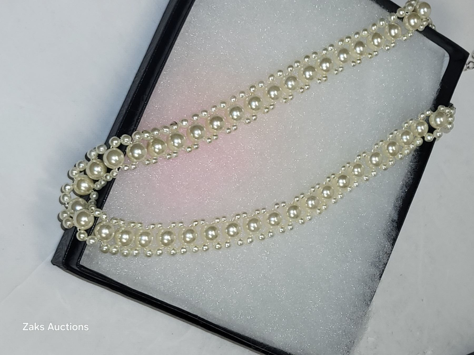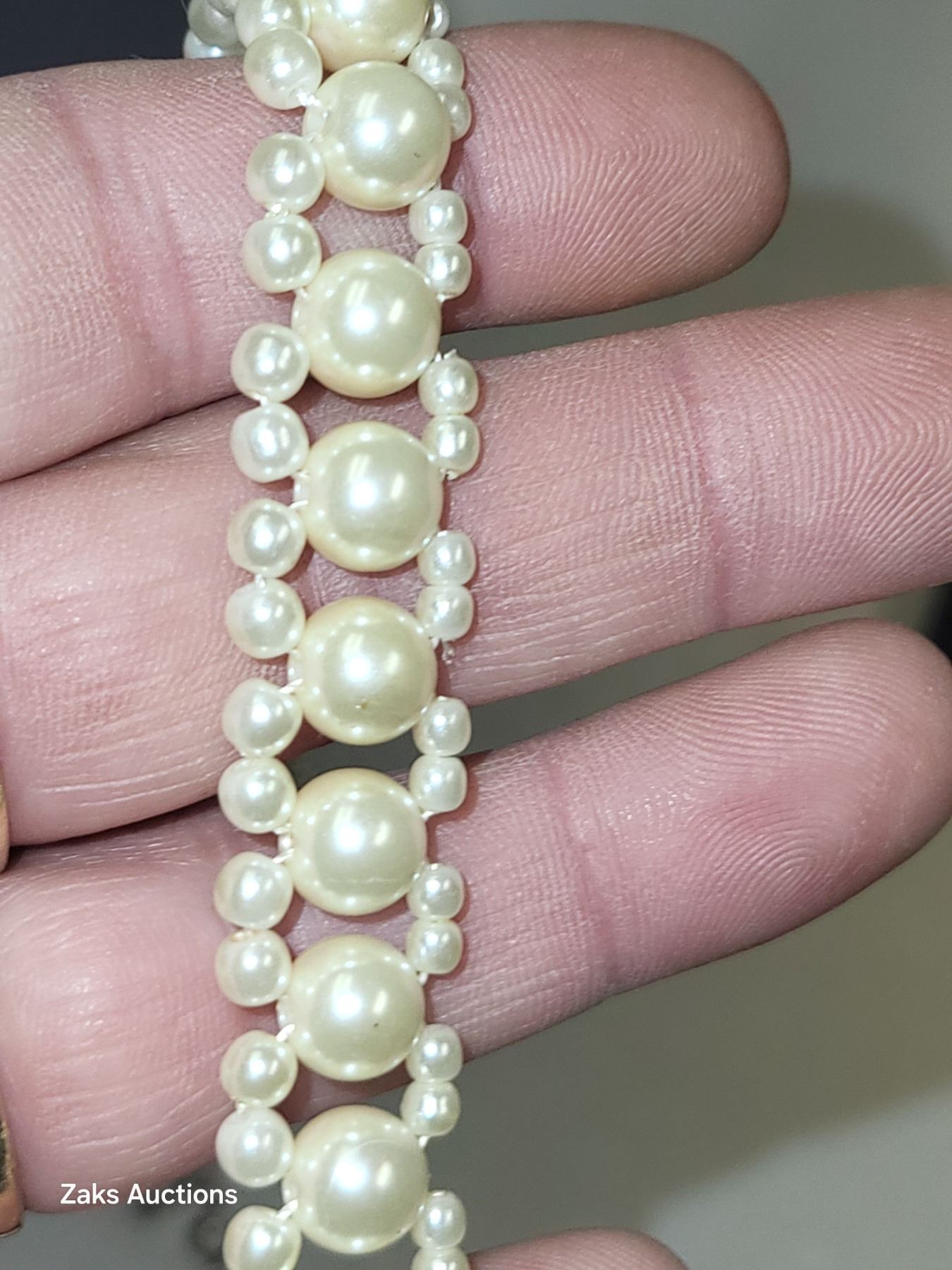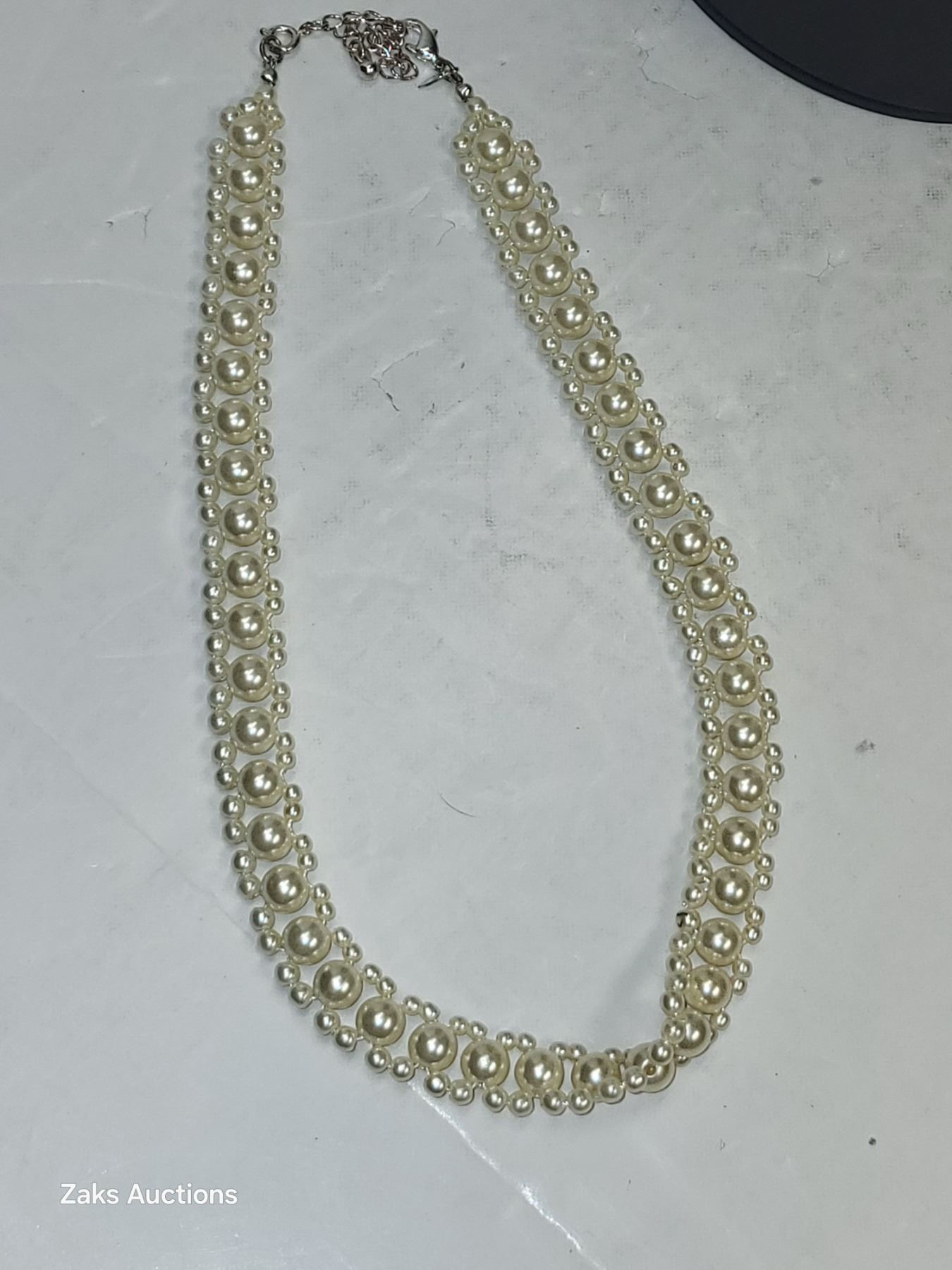 Vintage Signed Avon Simulated Pearl 3 Row Collar Necklace