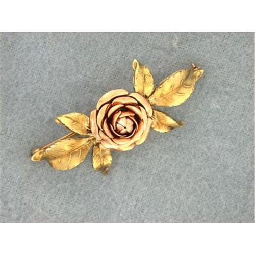 Elegance in the form of a rose--the symbol of romance and fidelity! This 14K rose and yellow gold pin is truly stunning in its lifelike appearance. Looking as though it were just-picked, each petal and leaf is perfectly formed. The piece is in the Art Nouveau style from the 1920's. To further enhance its desirability, the pin is signed by Borel. Appraisal Price $599.00.