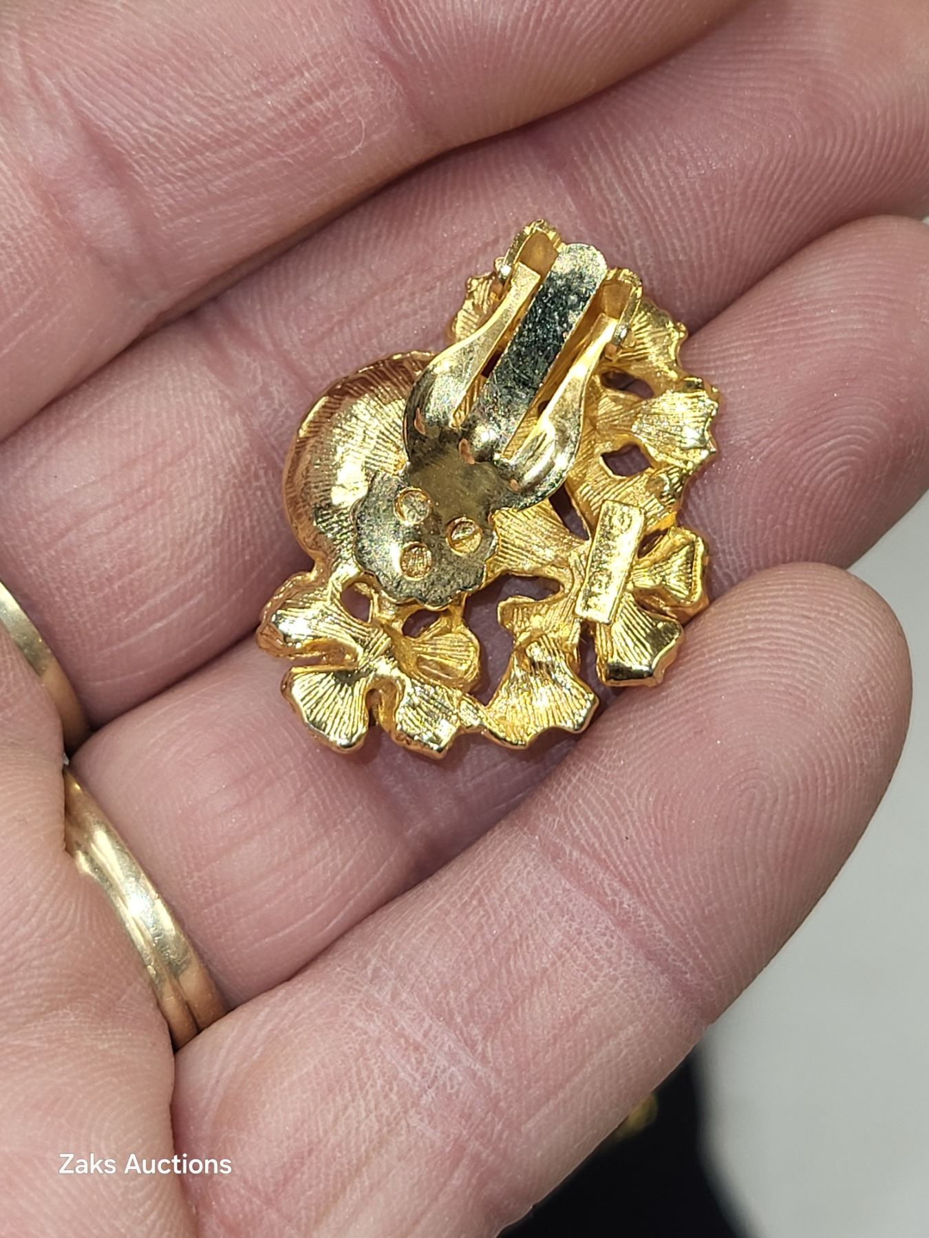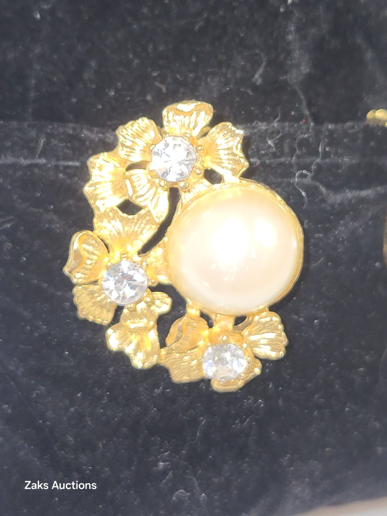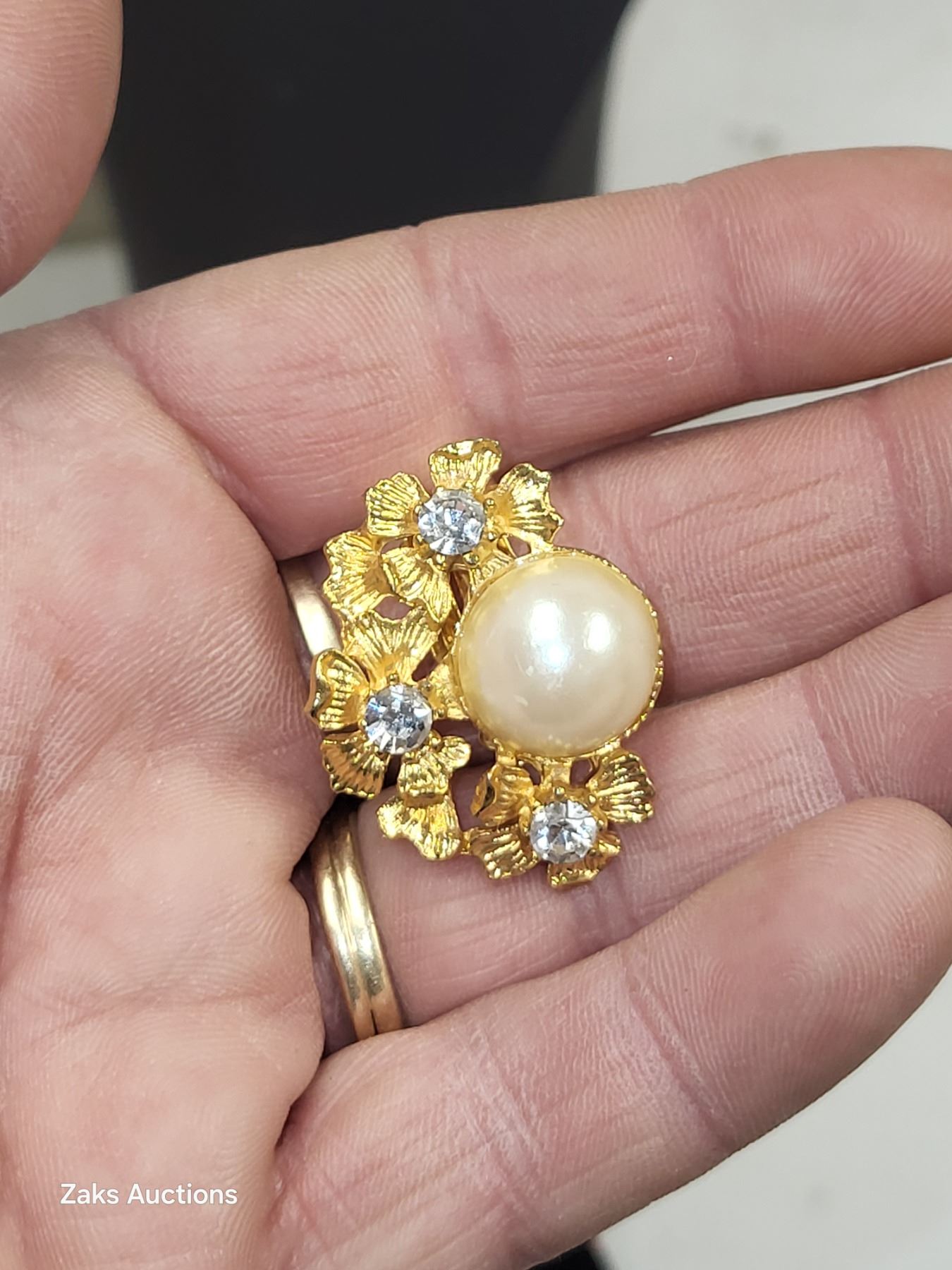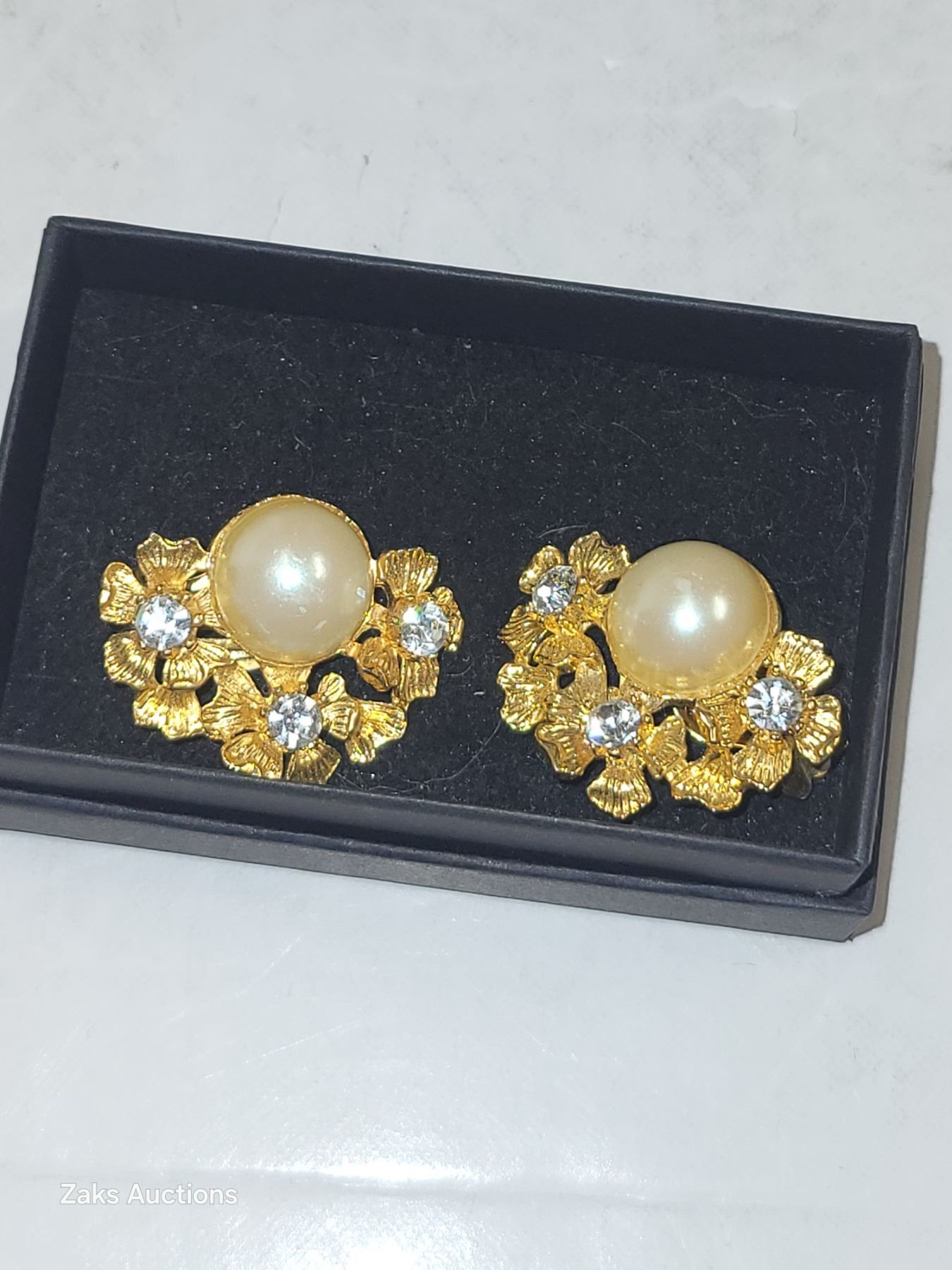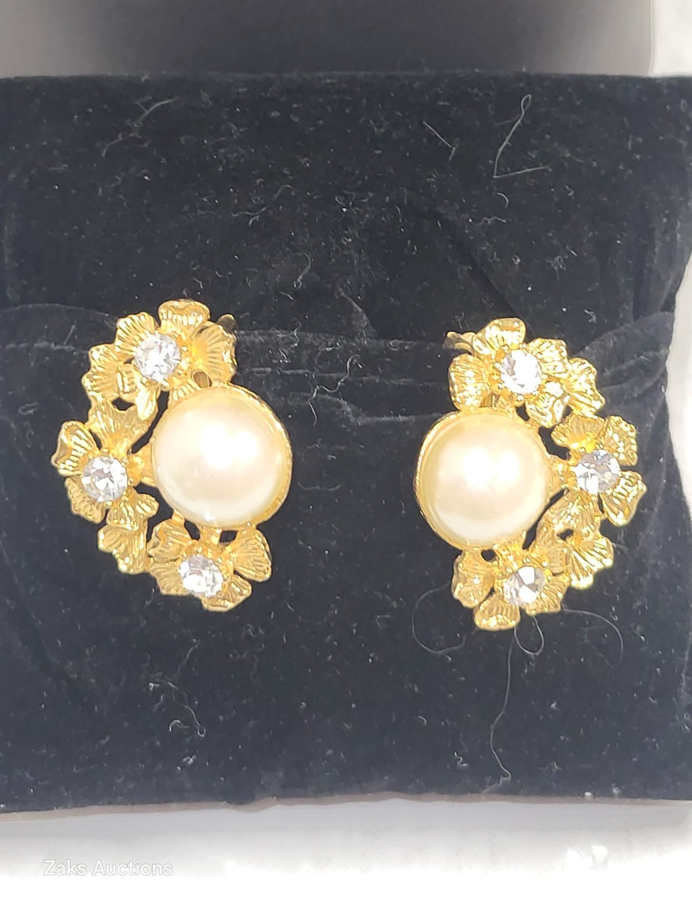 Vintage Signed Butler Simulated Pearl & Crystal Clip On Earrings
