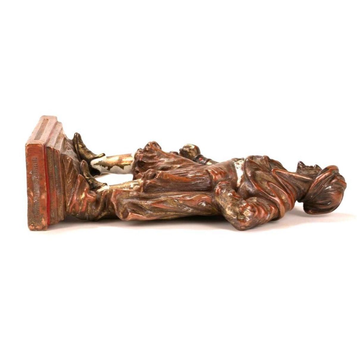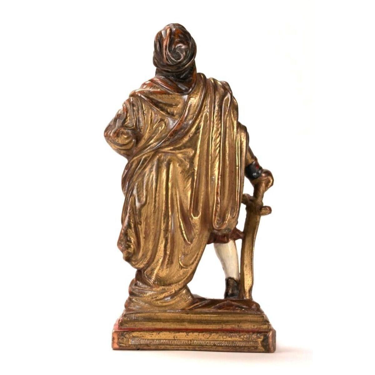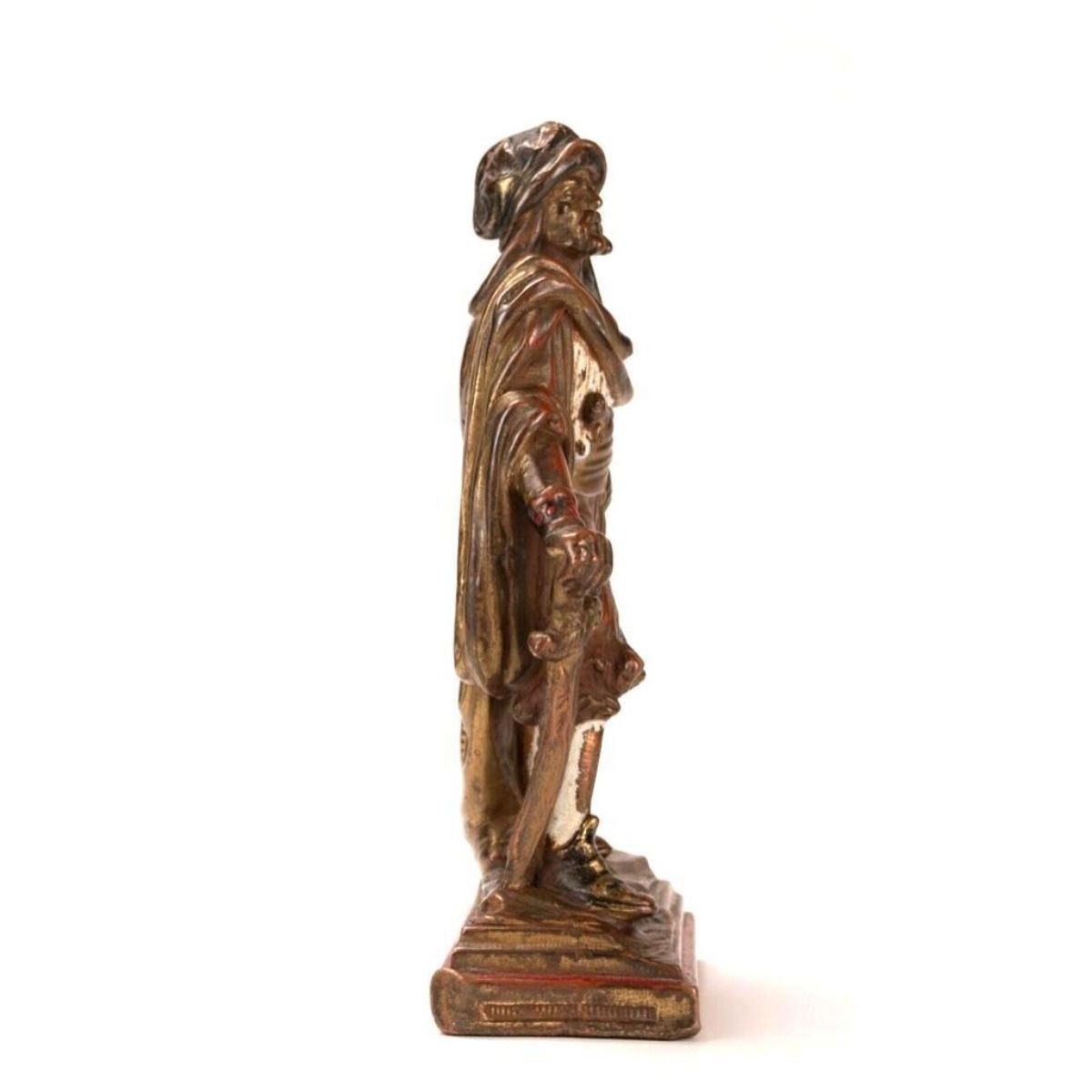 Vintage 1920's Middle Eastern Arab man, cold painted copper-coated standing statue figure with sword. Signed P. Beneduce. 9 1/2" H X 5" W X 3" D.Â