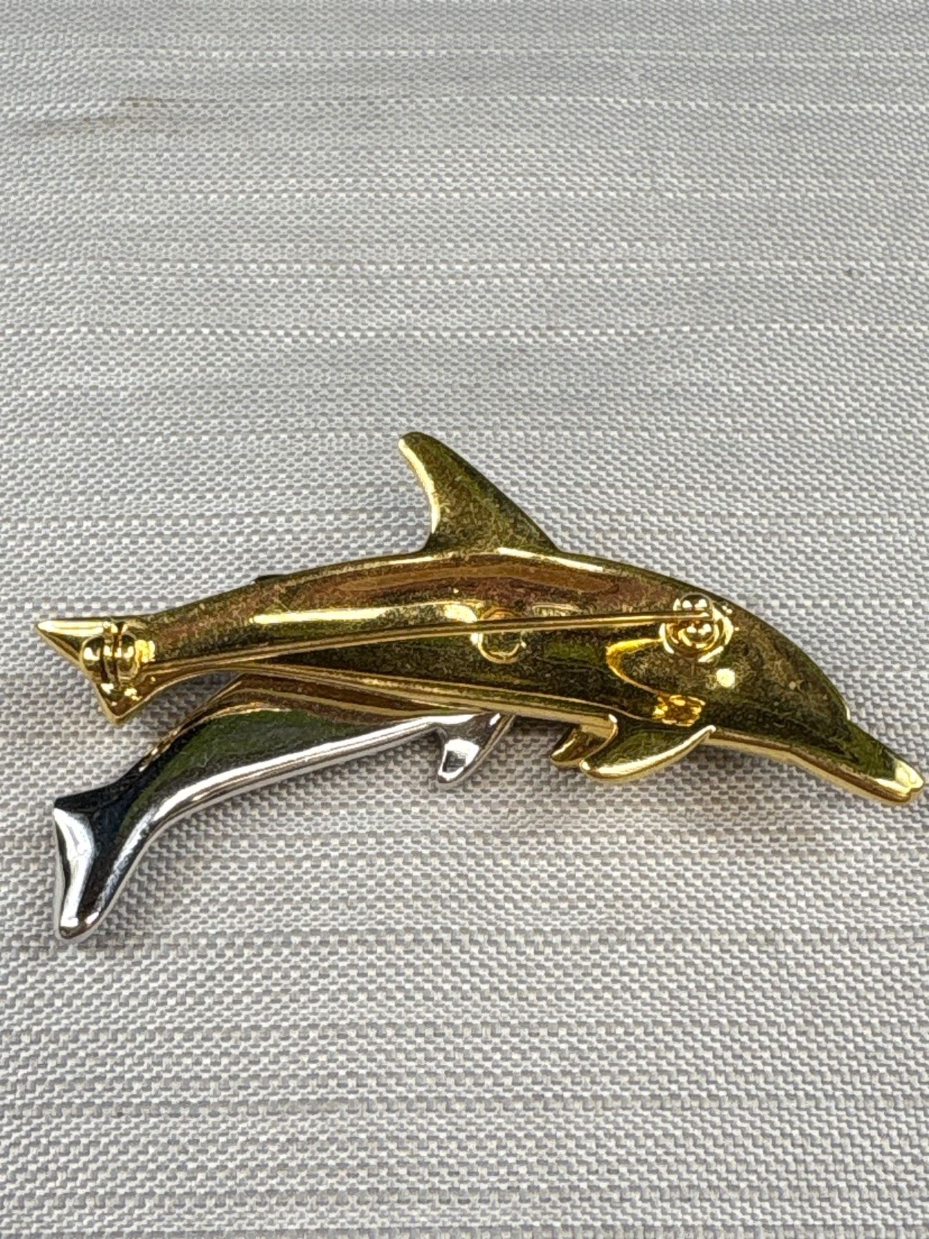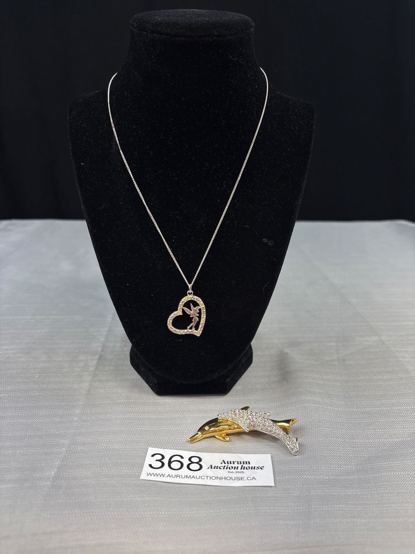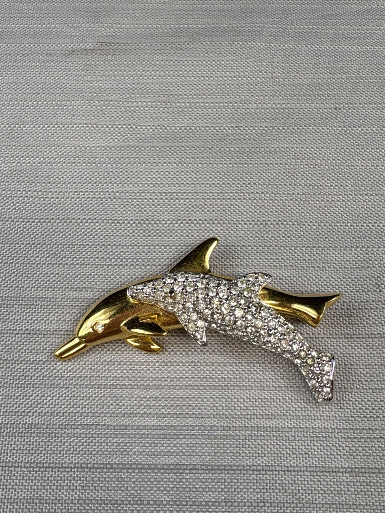 Vintage Signed Swarvoski Dolphin Brooch Pin and Signed Disney Tinkerbell