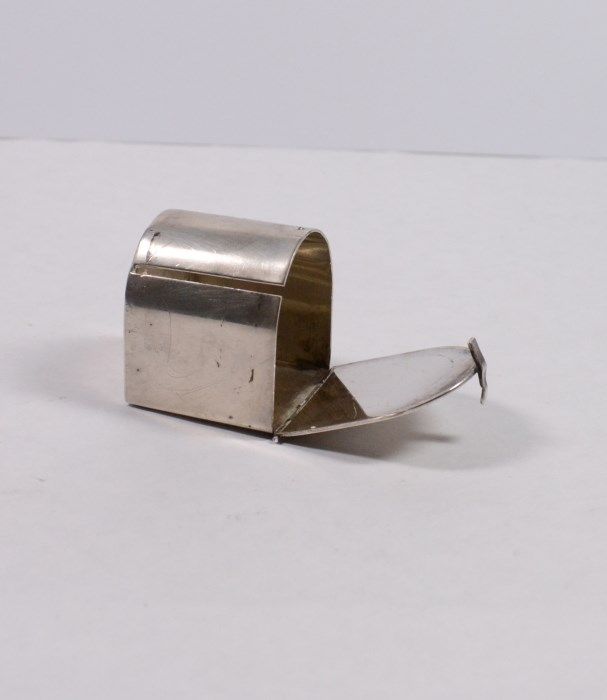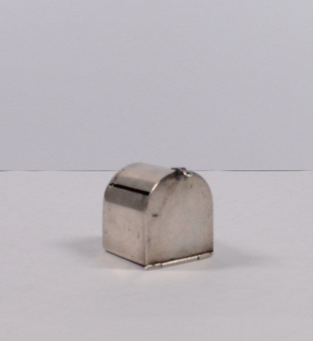 This is an Authentic Signed Tiffany & Co. sterling silver mini mailbox for postage stamp rolls, with slot to dispense stamps. 1 3/8" x 1 1/4" 1.110 ozt. Very unique piece. Est. Value $55.00 - $75.00