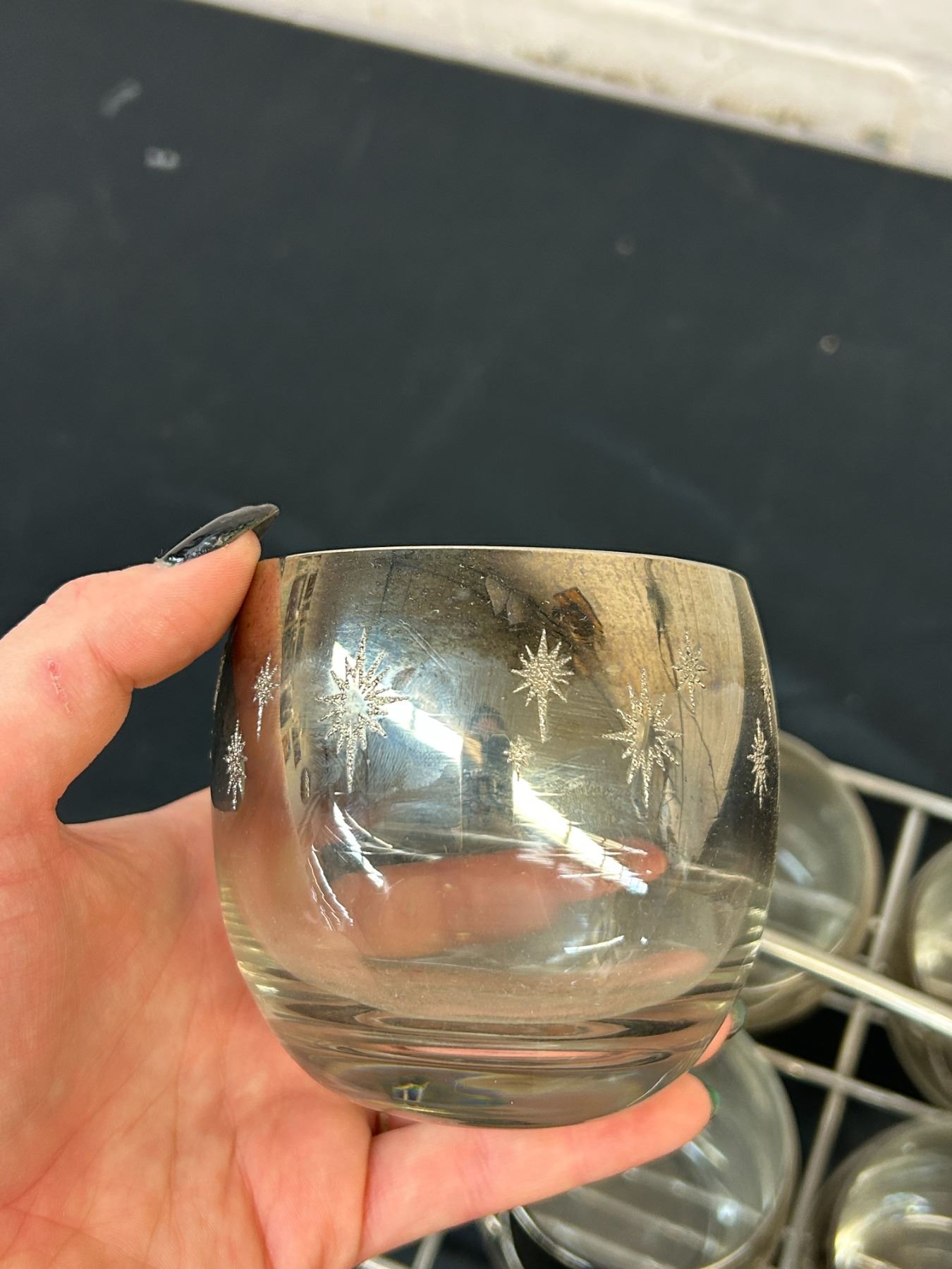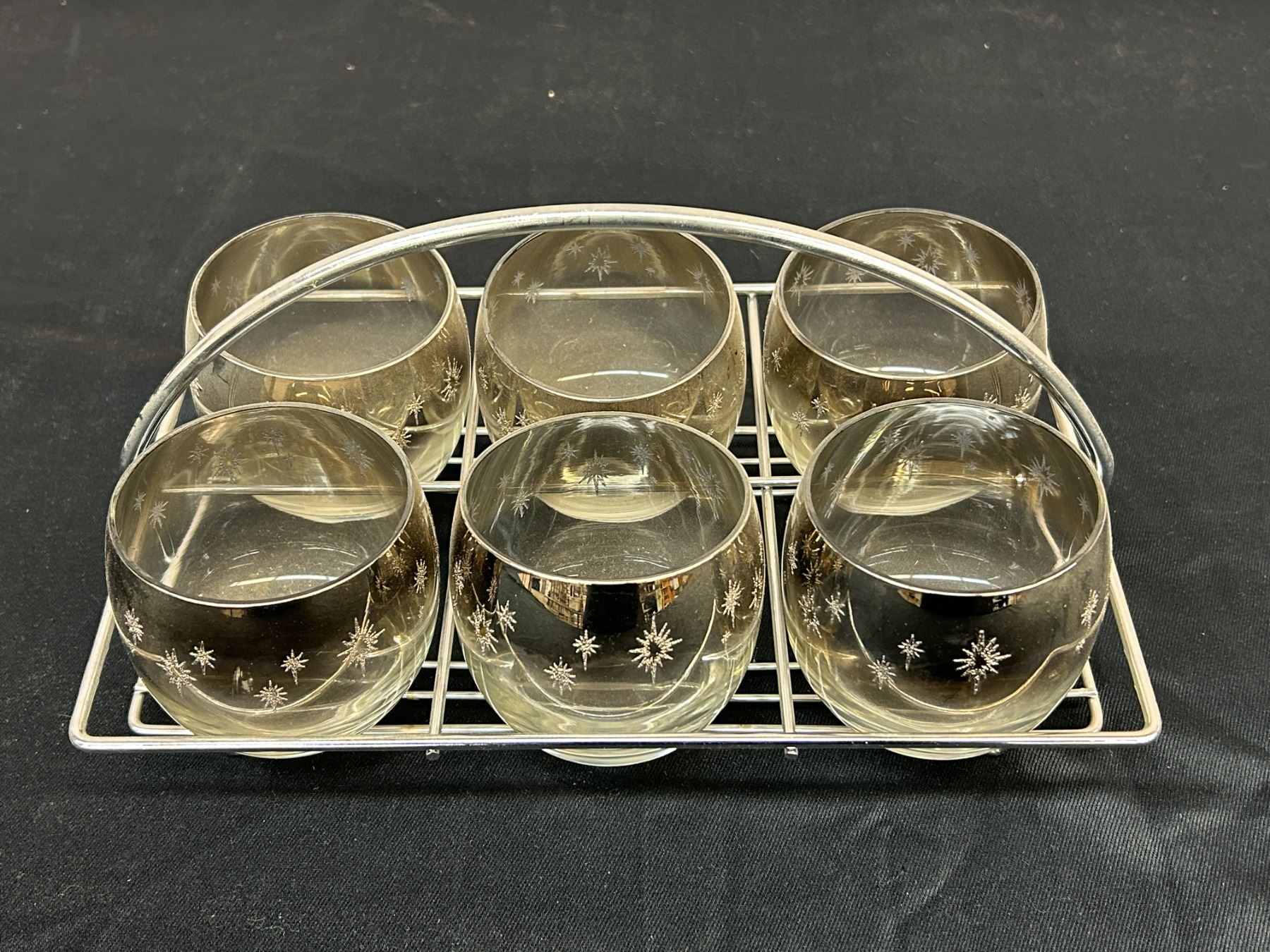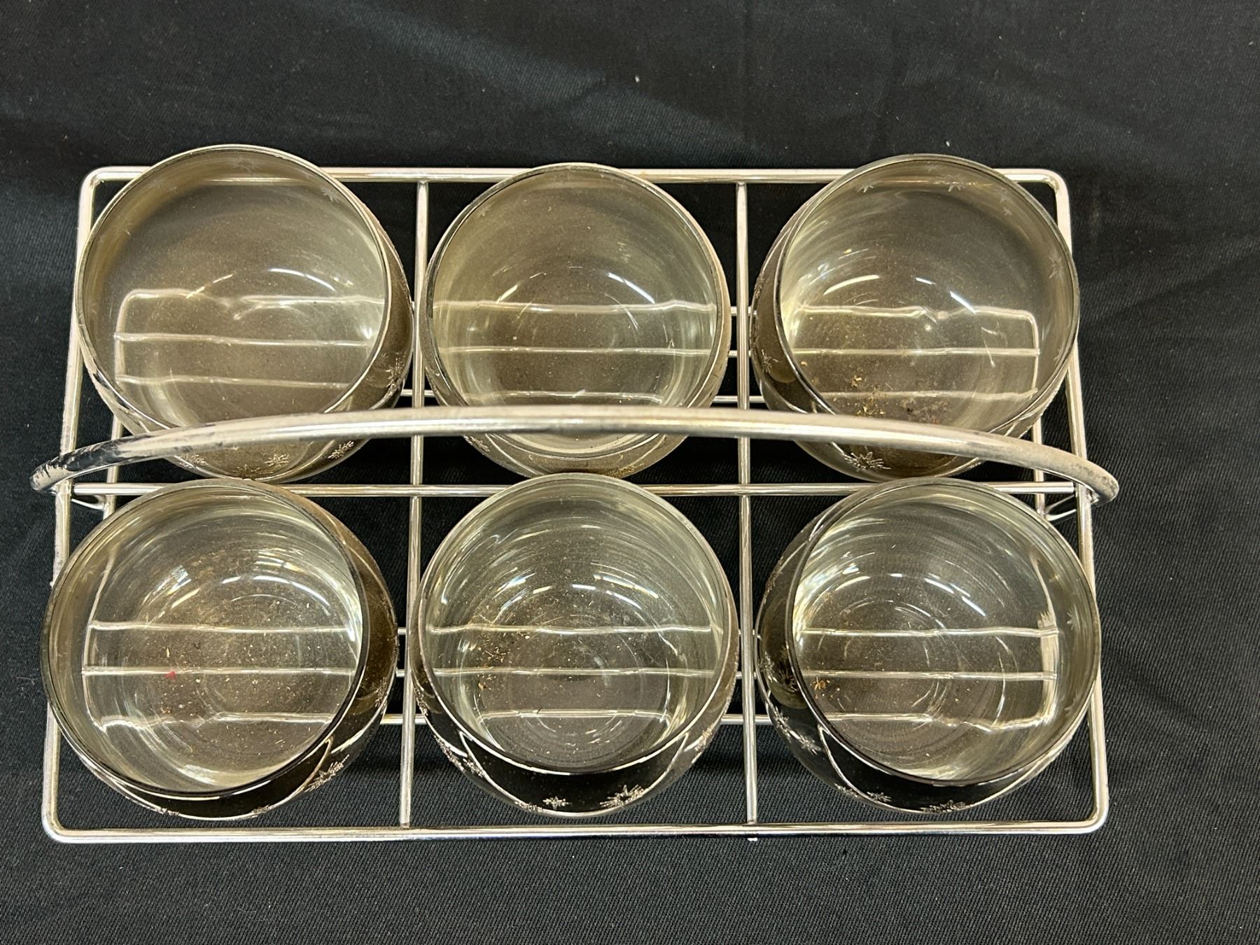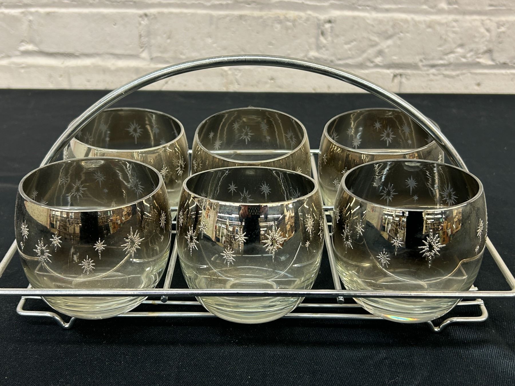 Vintage Silver Fade Embossed Roly Poly Caddy Set of 6 Glasses, MCM