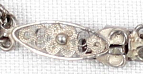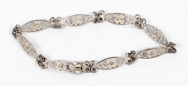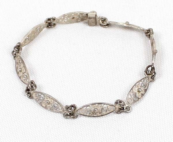 Vintage Silver Filigree Link Bracelet, measures 7''L end to end x .25''W, bracelet is marked 800 (80% silver or 800/1000)