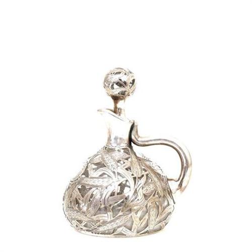 <tr><td>Title:Vintage Silver Overlay Glass Decanter Steuben</td></tr>