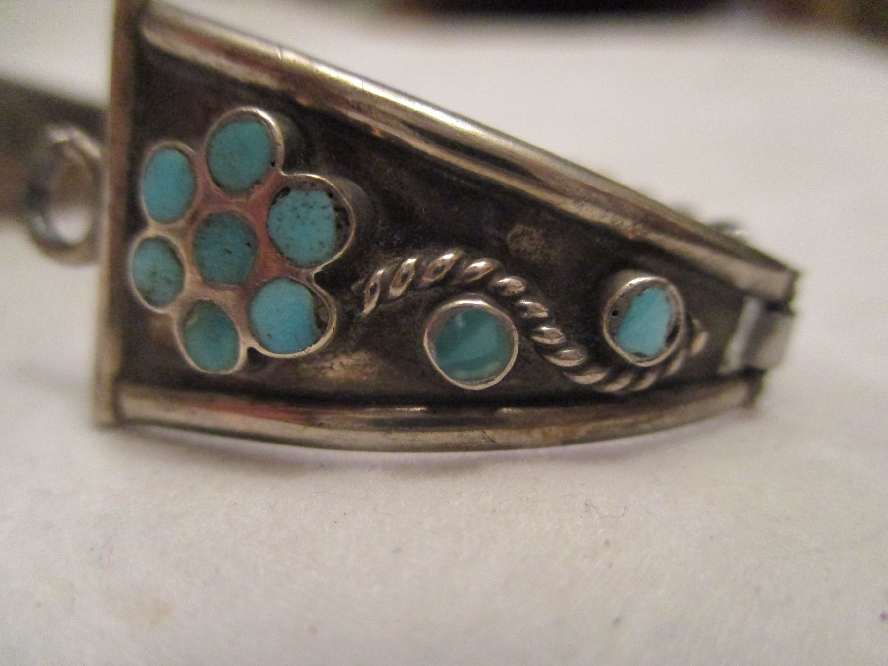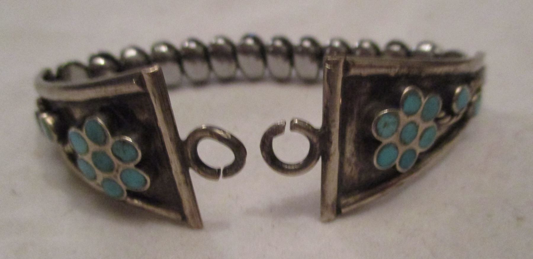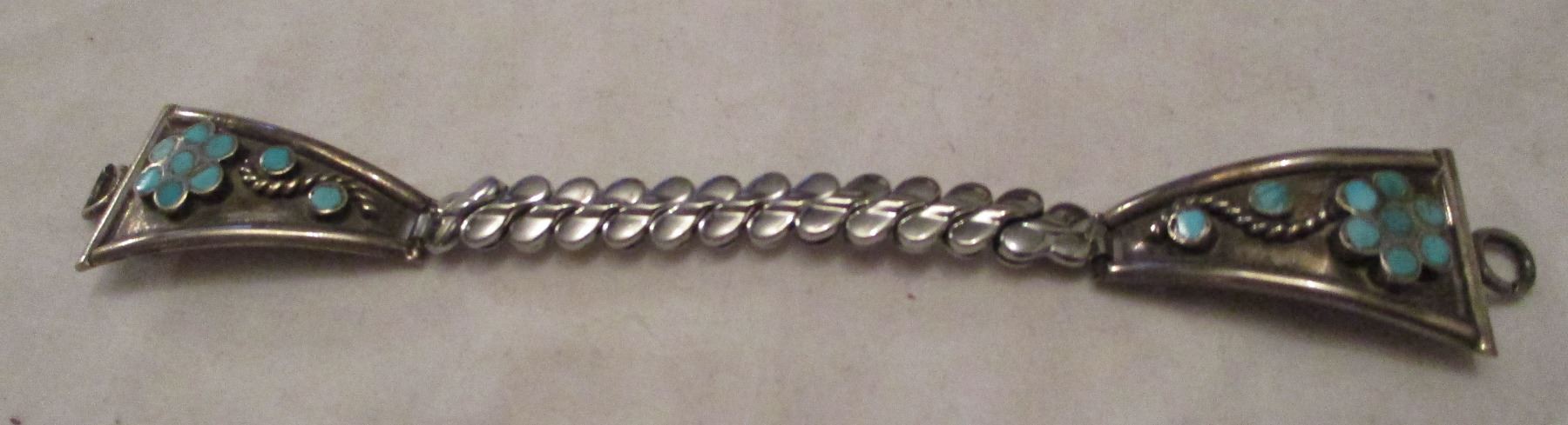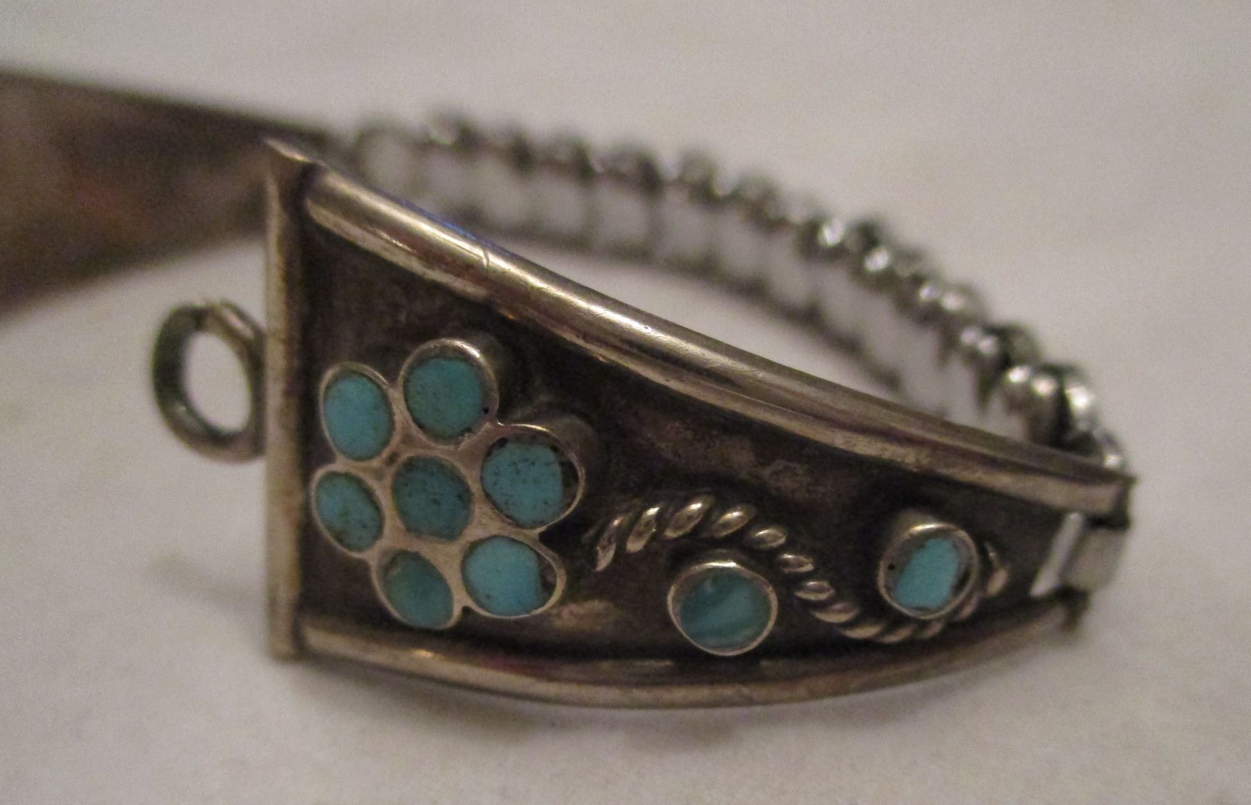 Vintage Silver and Turquoise Watch Band with Floral Design.