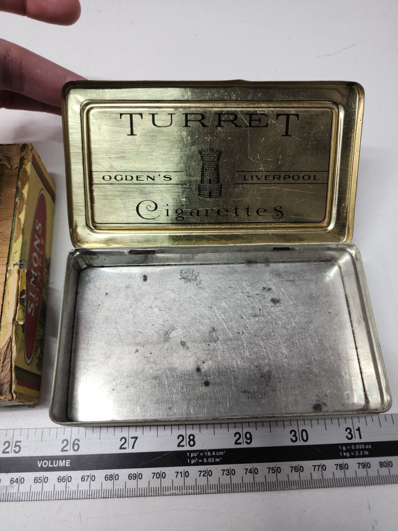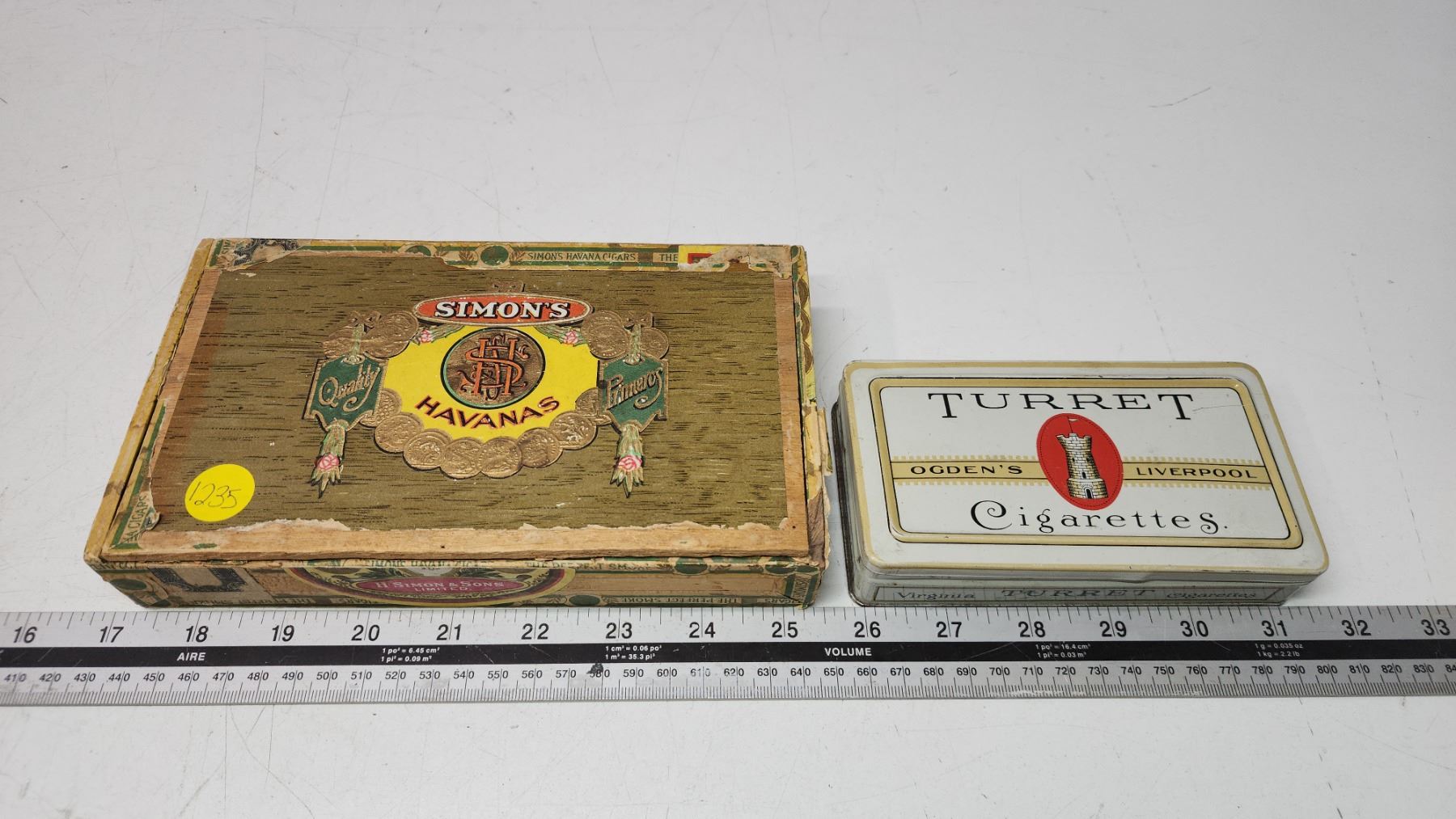 Vintage Simon's cigar box and Turret ciggarette's tin