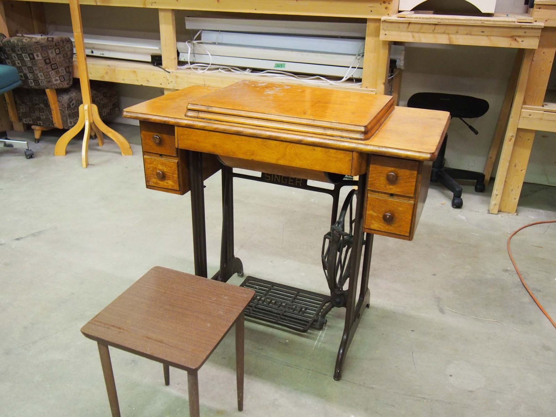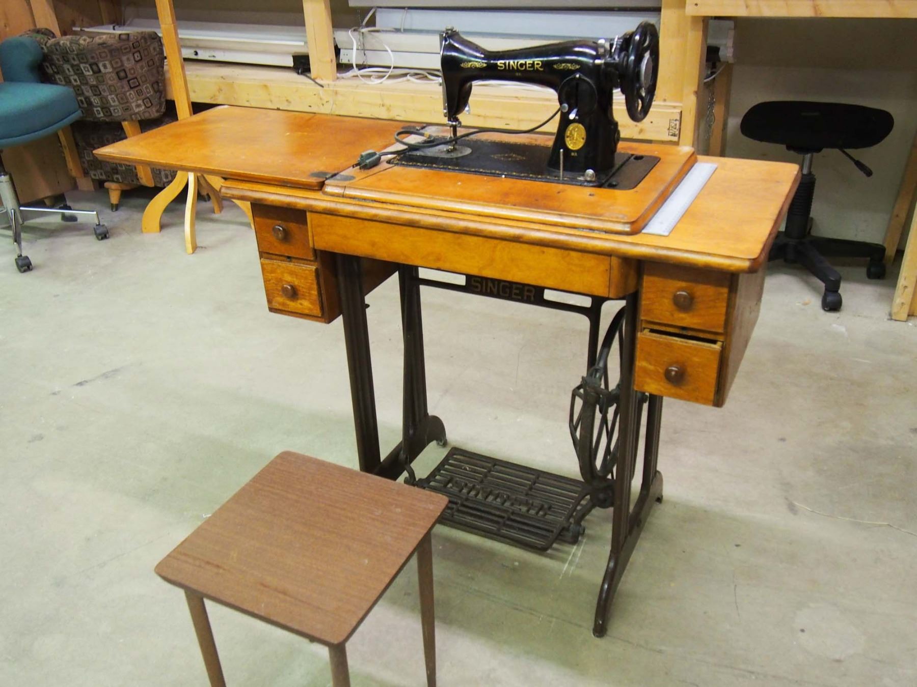 Vintage Singer Sewing Machine With Mini End Table