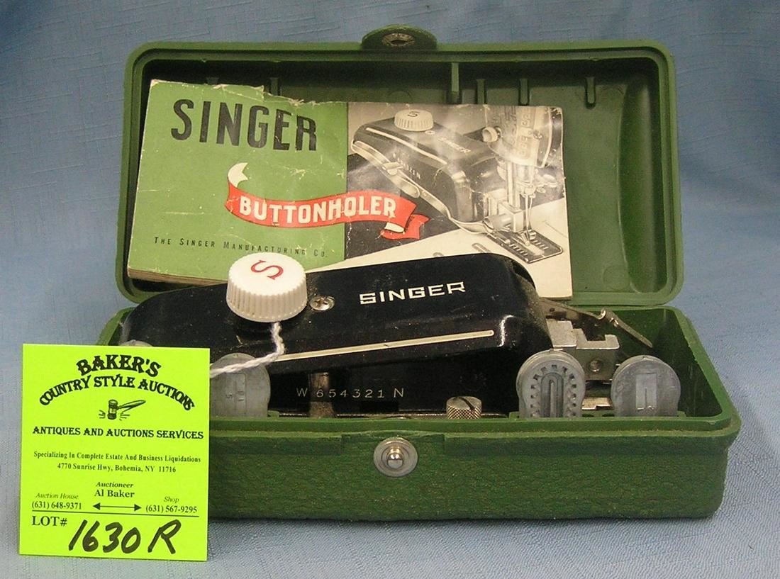 Vintage Singer button holer in original case with booklet est. value $50.00-$60.00