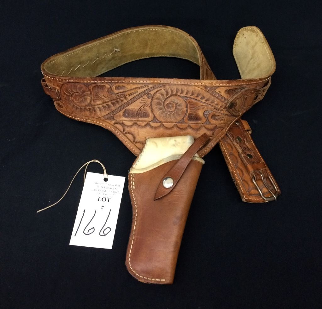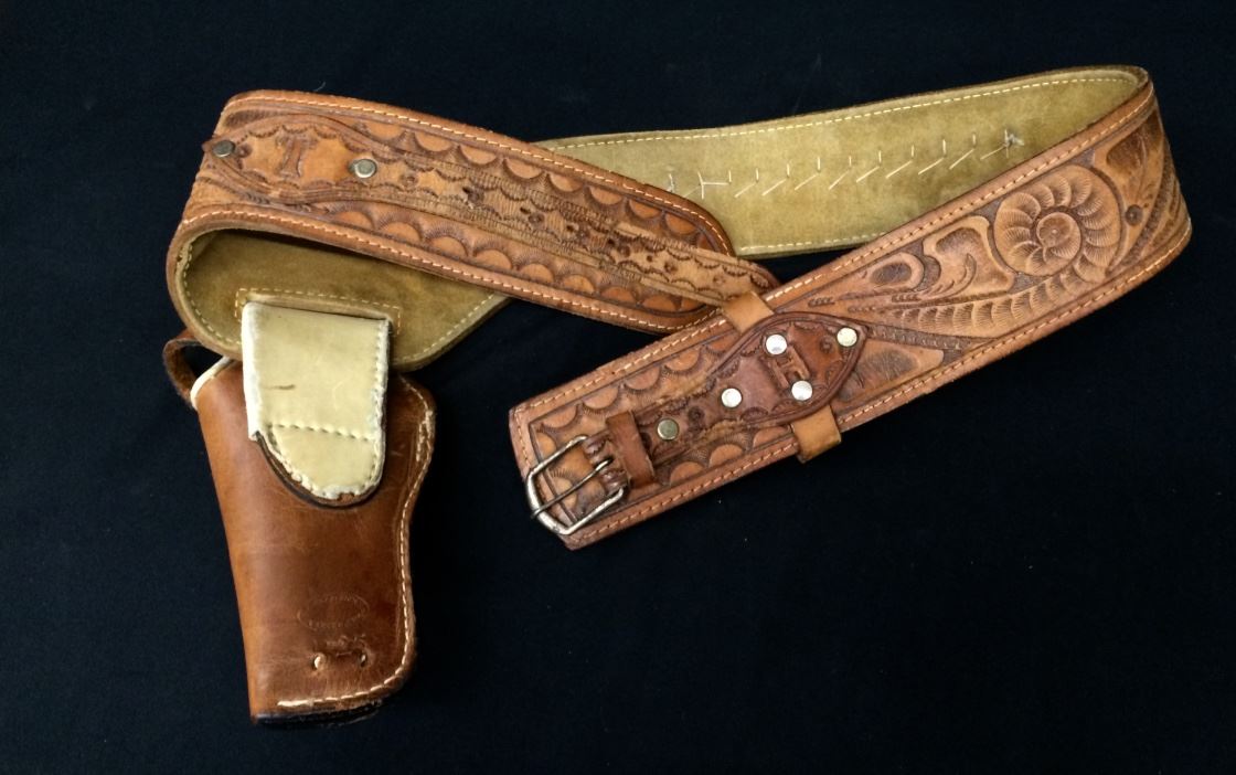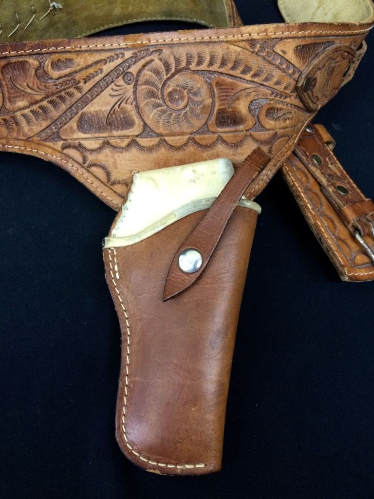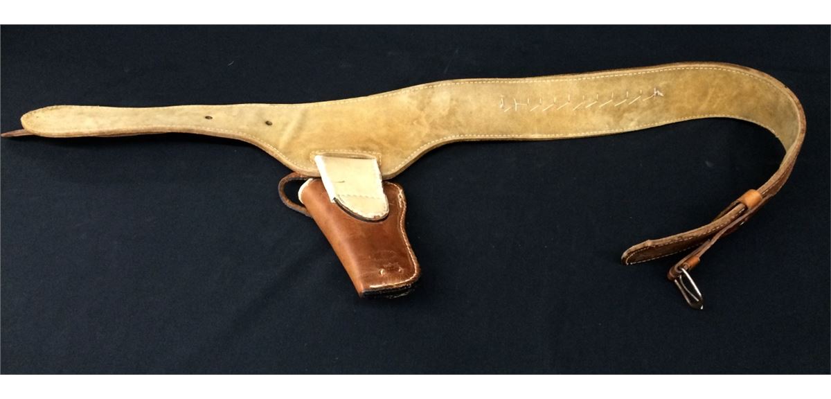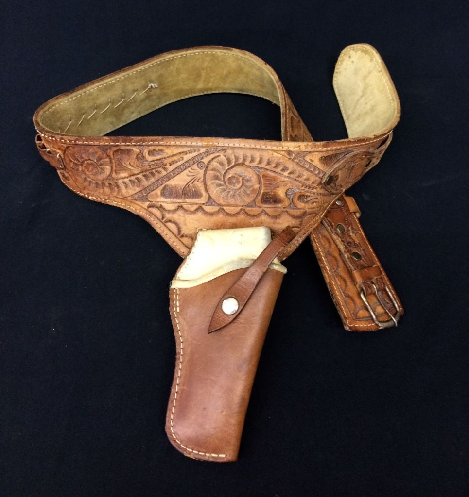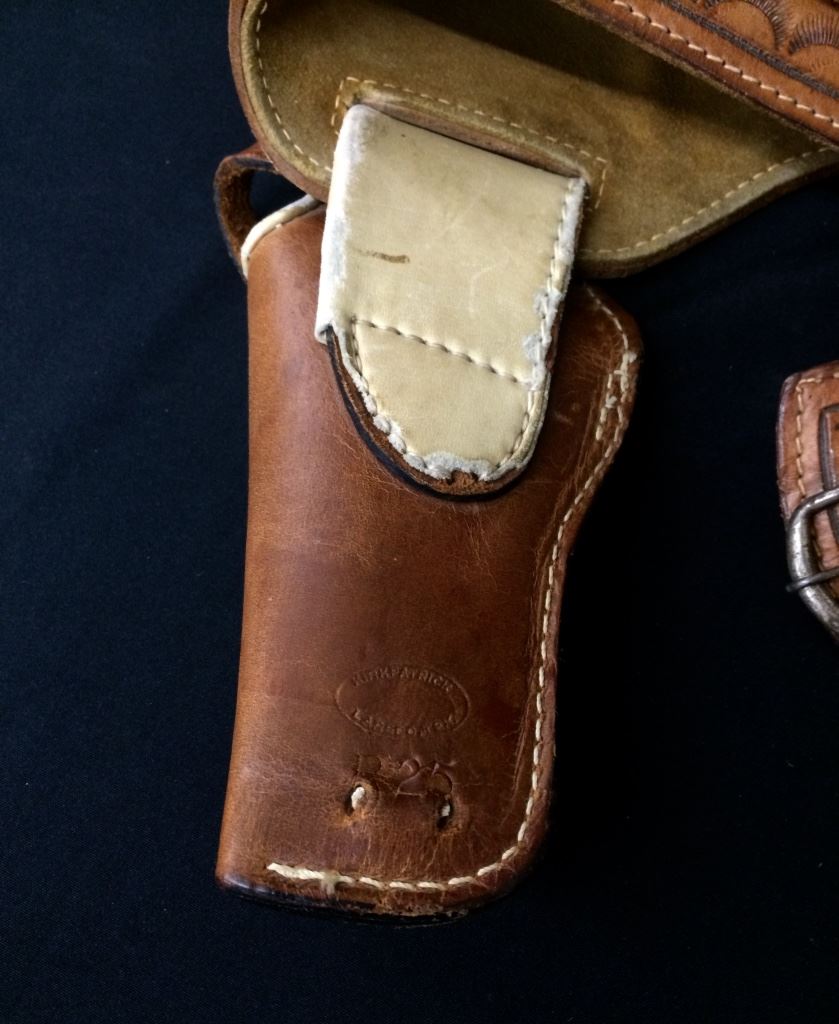 This single rig leather cartridge belt has a makers stamp of “Kirkpatrick - Laredo, TX.” Belt is 42” long overall and 3” wide. Not known what size gun it was made for. In pretty good condition, minor wear and tear evident. Shipping: There will be a $7 handling / packaging fee for shipping this lot. The actual cost of postage will be added on top of that.