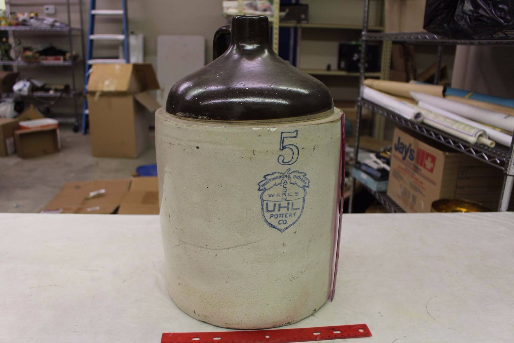 Vintage Size 5 Ceramic Crock (Marked Huntingberg, Indiana. UHL Pottery Co.)