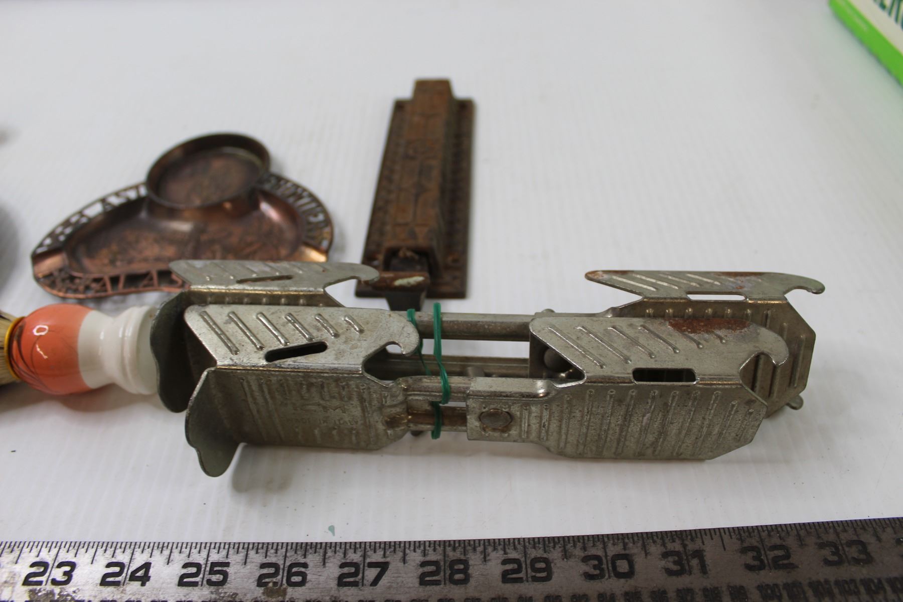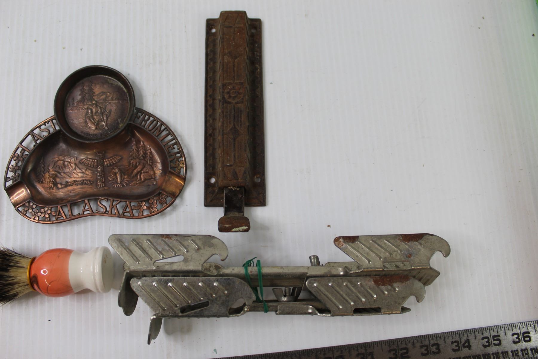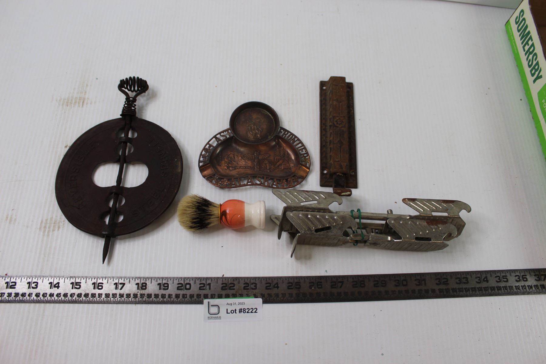 Vintage Skate Pieces, Ashtray, Shaving Brush and Reversible Steel Spindle