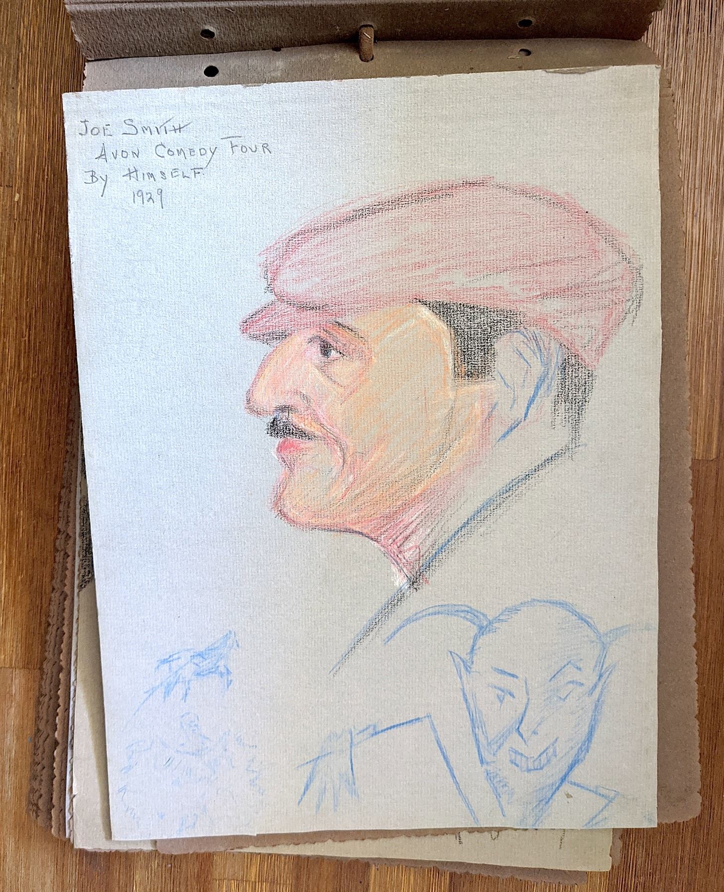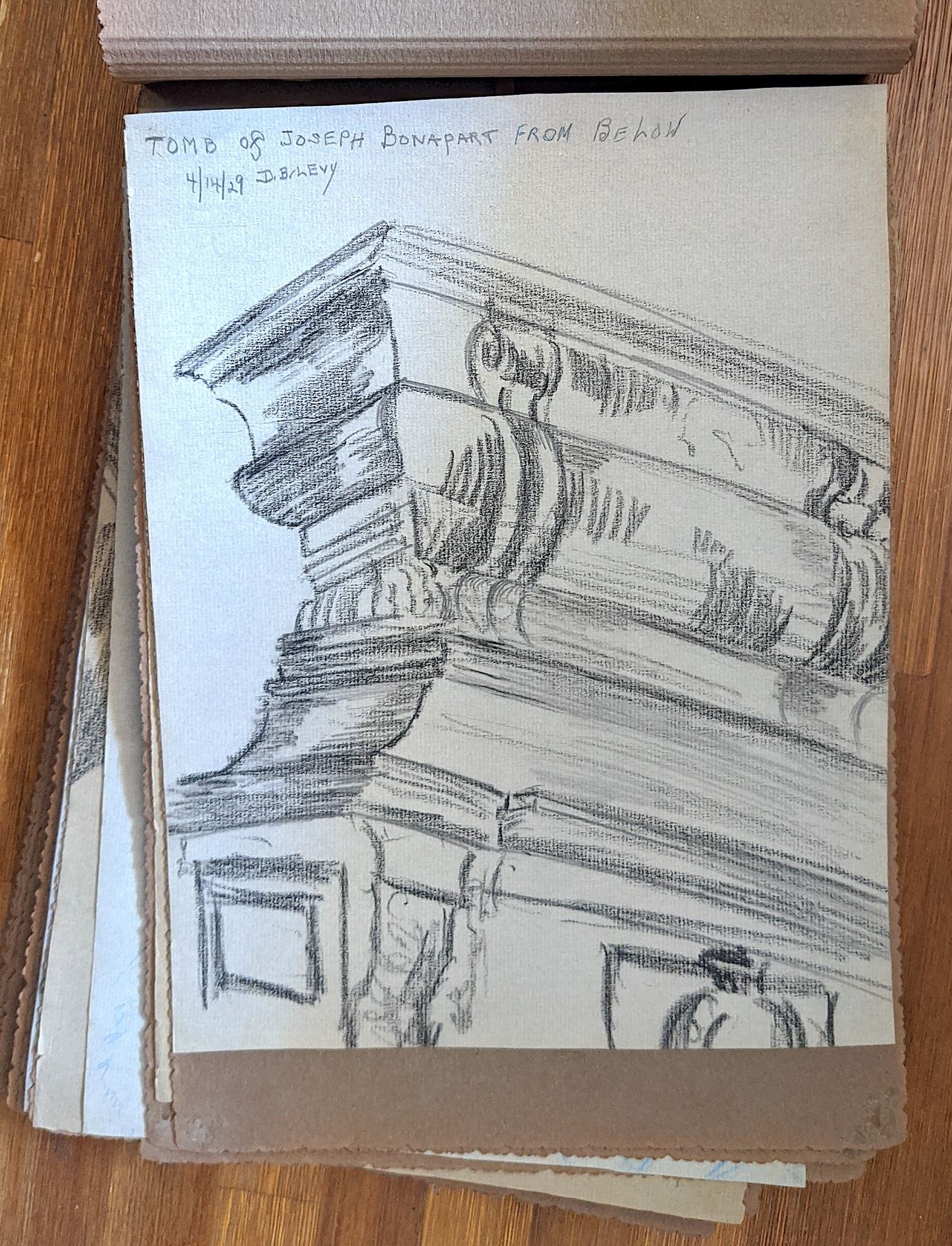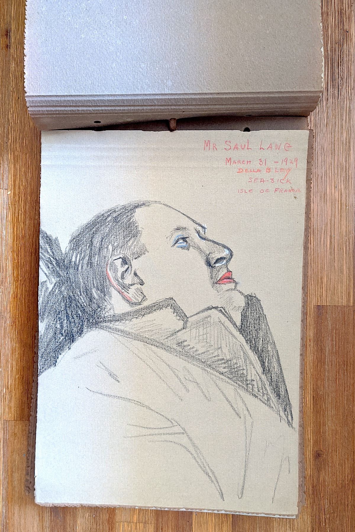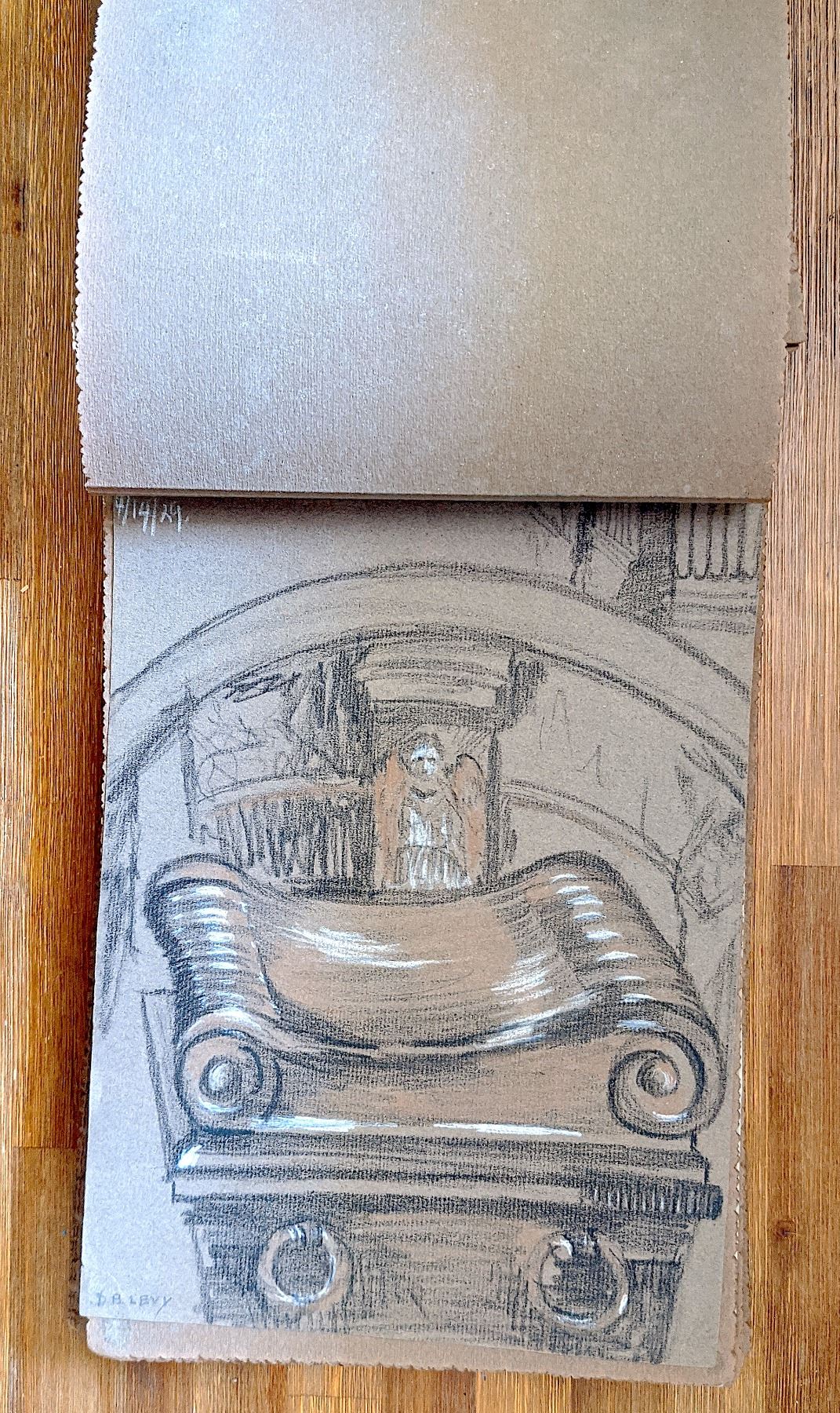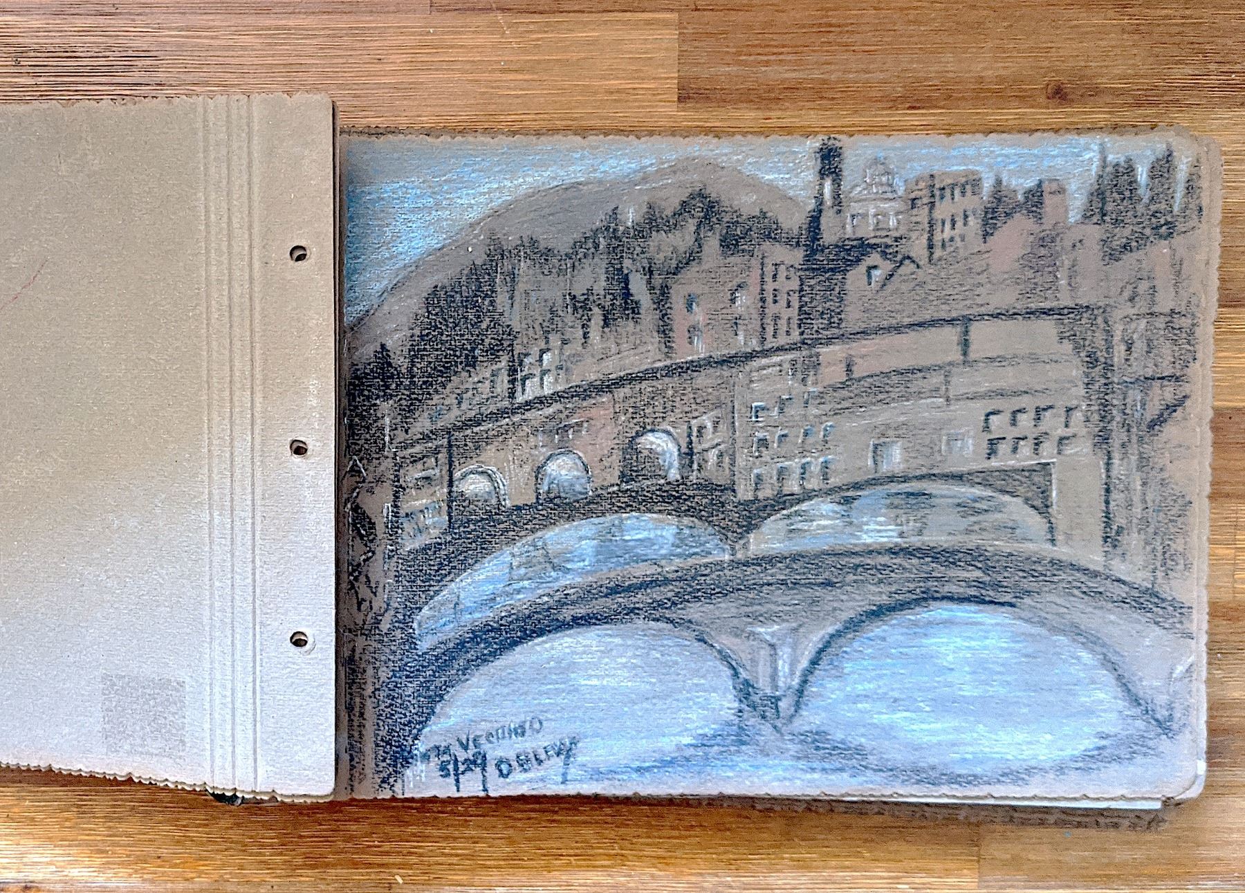 Vintage sketchbook with original pastel and charcoal drawings from Florence, Italy. Include a drawings of Ponte Veccio Bridge.
