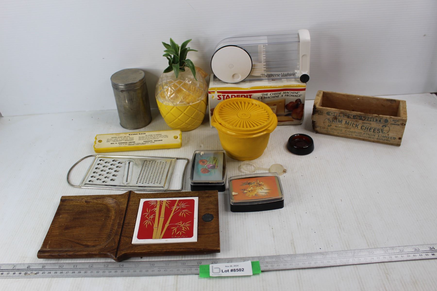 Vintage Skim Milk Cheese Box, Tupperware Container, Starfrit The Cheese Machine Cheese Slicer, Misc.