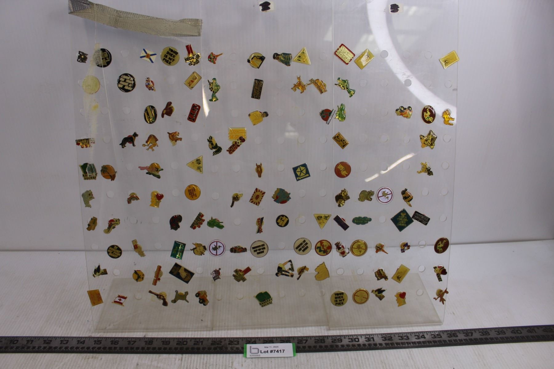 Vintage Slogan Pins Collection with Plastic Display Boards