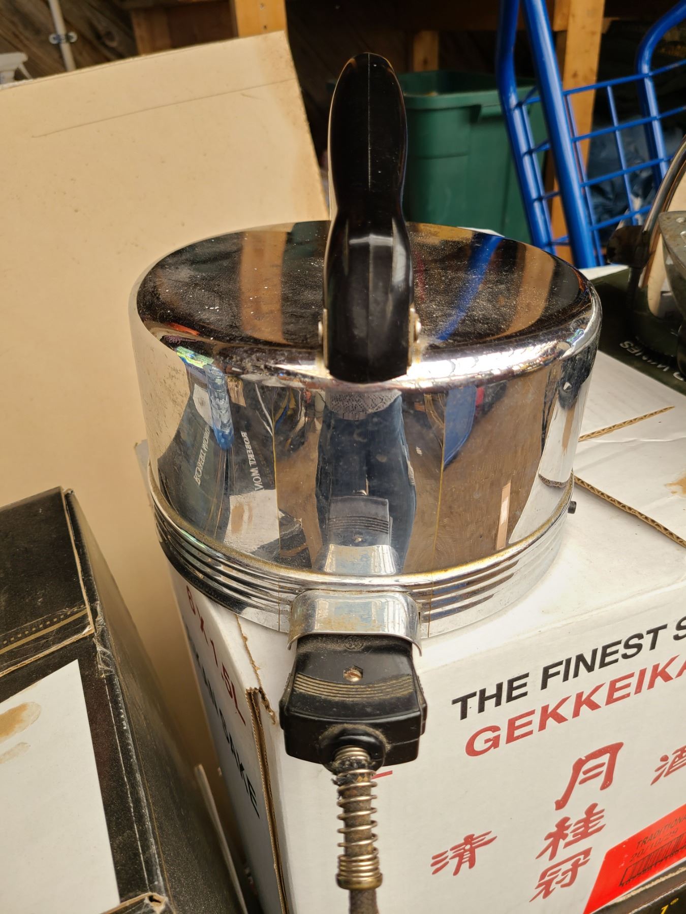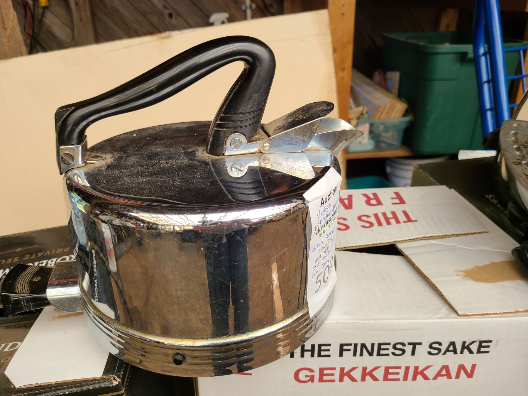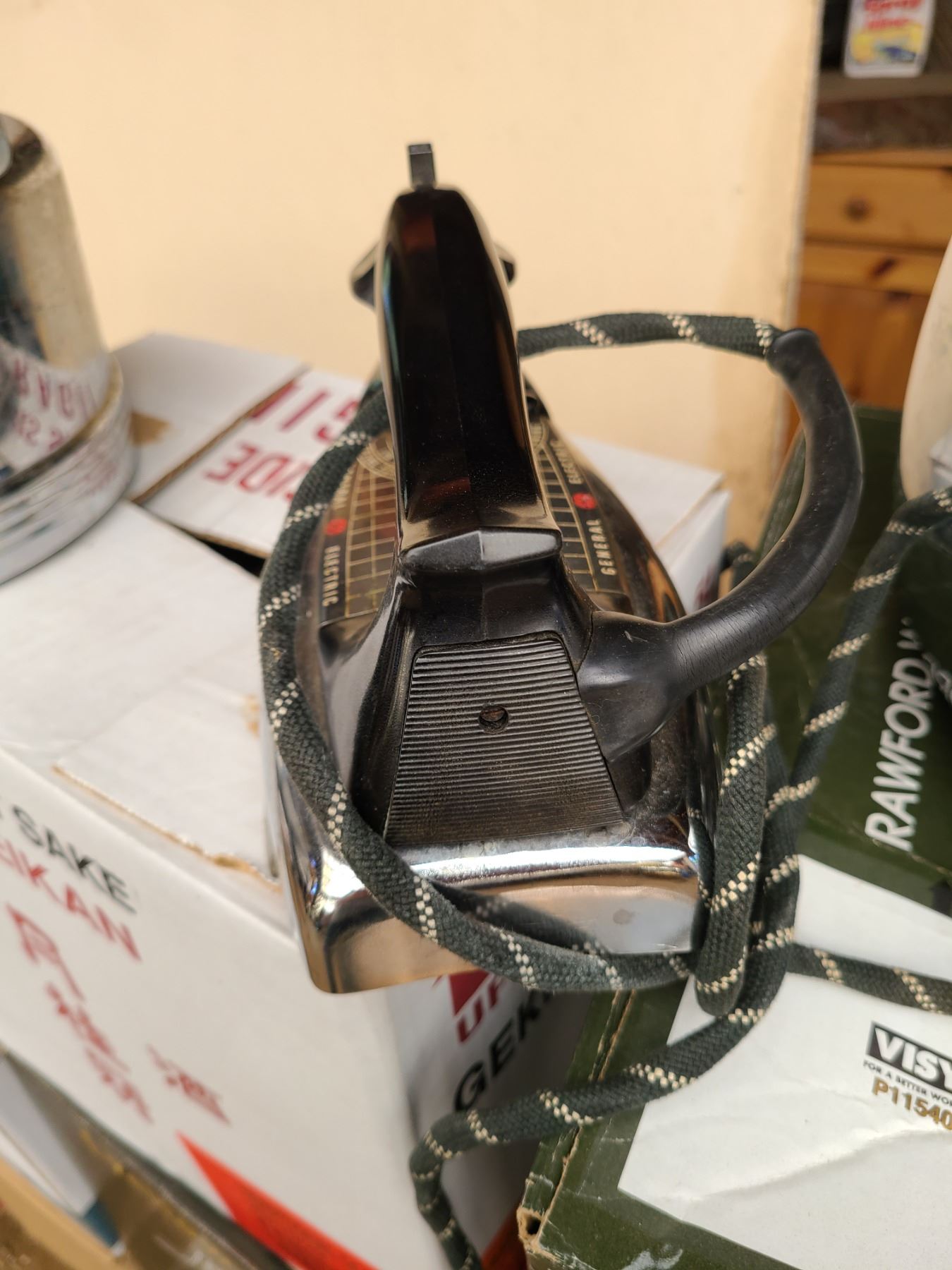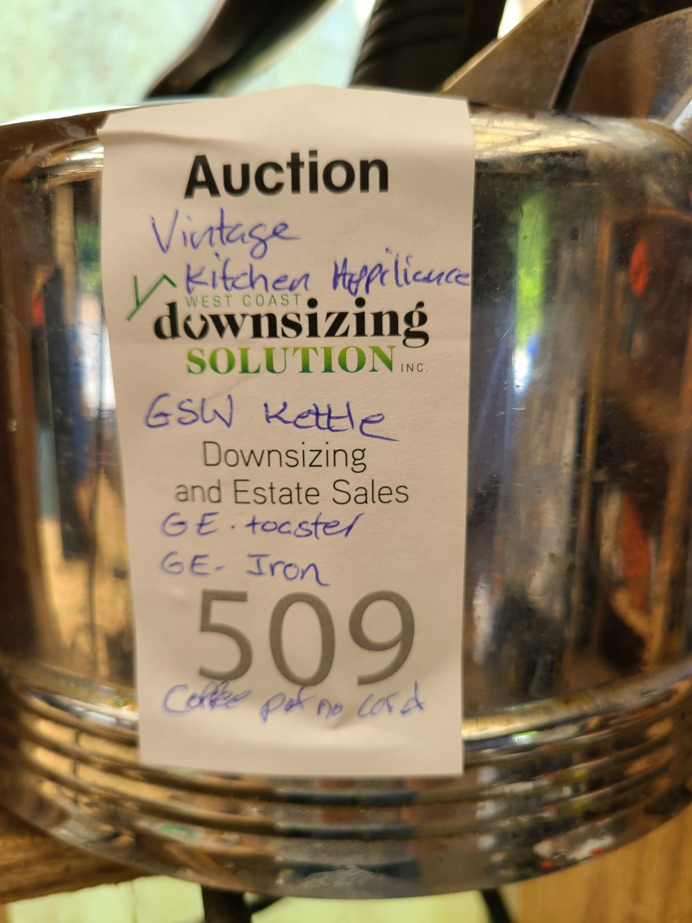 M-36312. GE toaster, GE iron, GSW electric kettle, Universal kettle missing cord. All untested. Pickup at 10am
