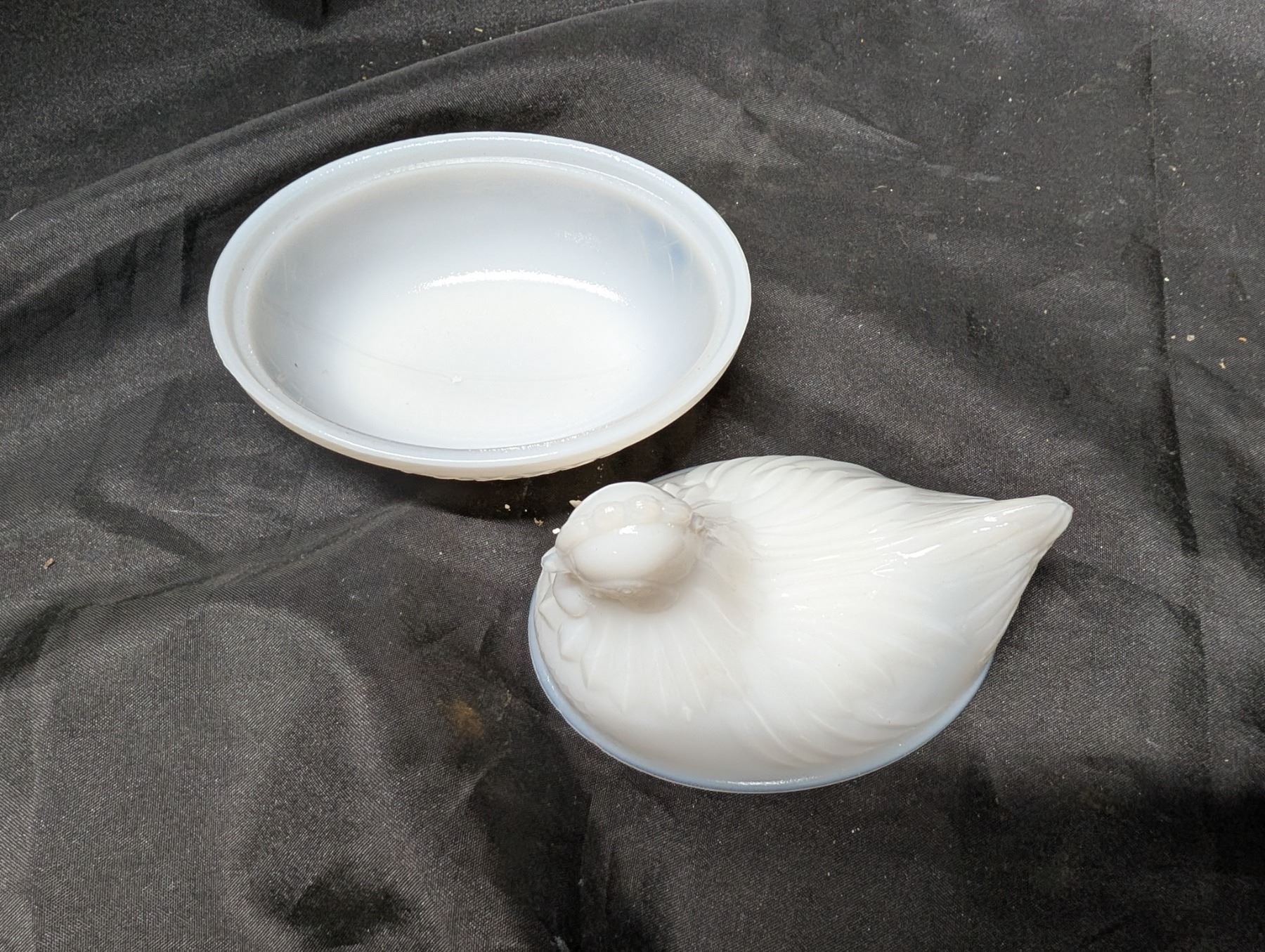 Vintage Small Milk Glass Nesting Chicken Capsule