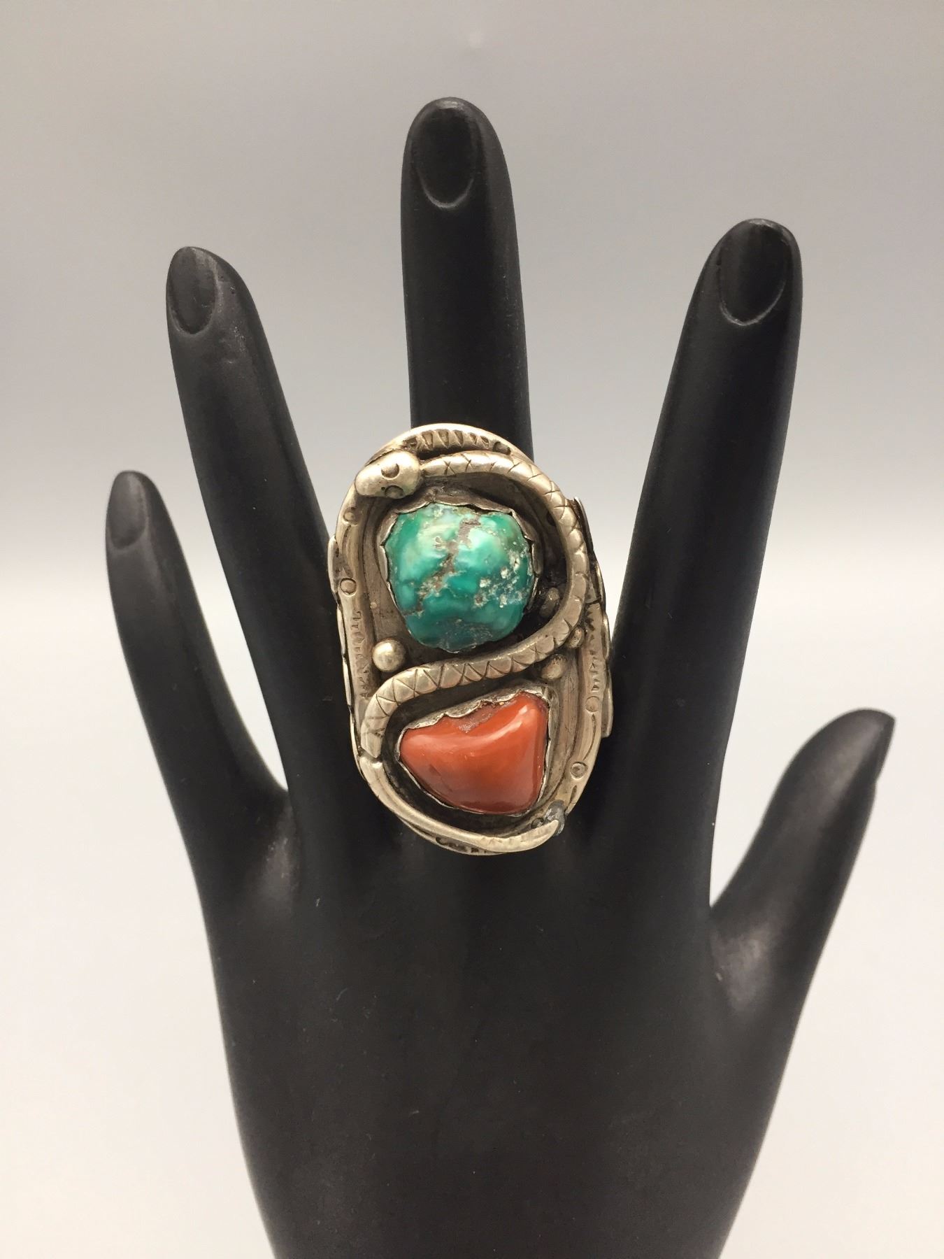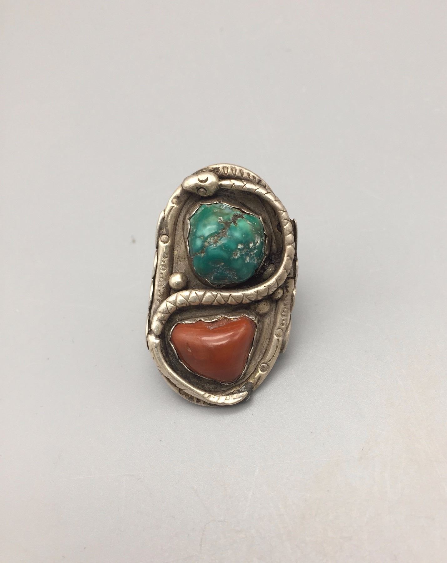 Maker: Unknown, but vintage Navajo in style. Approx. Age: Vintage. Size: SZ 8. Weighs 20.4 g. Additional Info: A vintage snake themed ring. Sterling silver. Condition: Good for it’s age, normal wear expected. Please look closely at the pictures - they are an important part of our description. Shipping: There will be a $5 handling / packaging fee for shipping this lot. The actual cost of postage will be added on top of that.