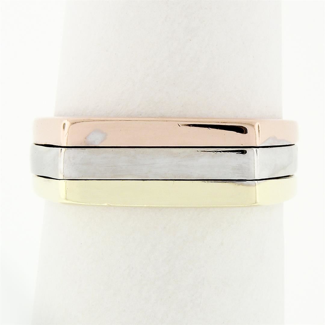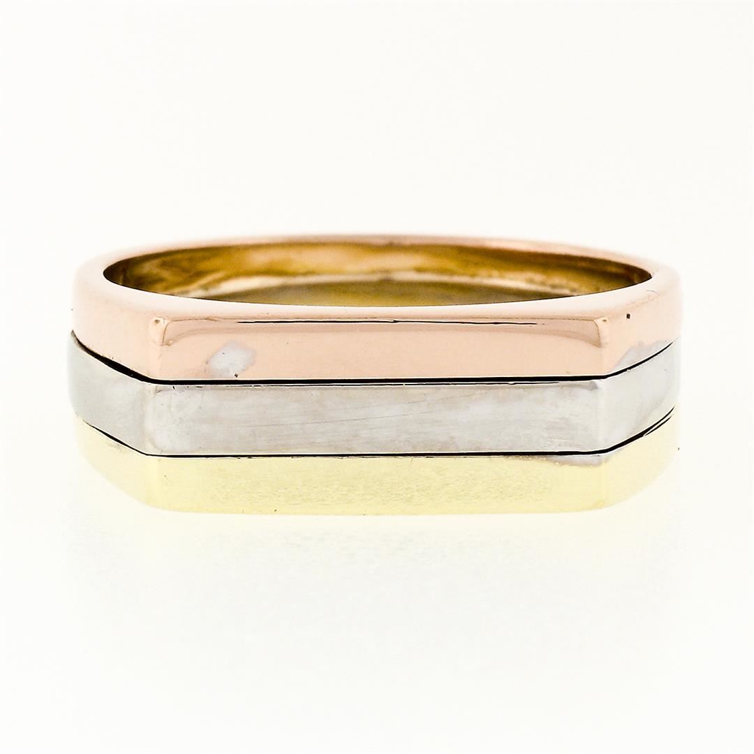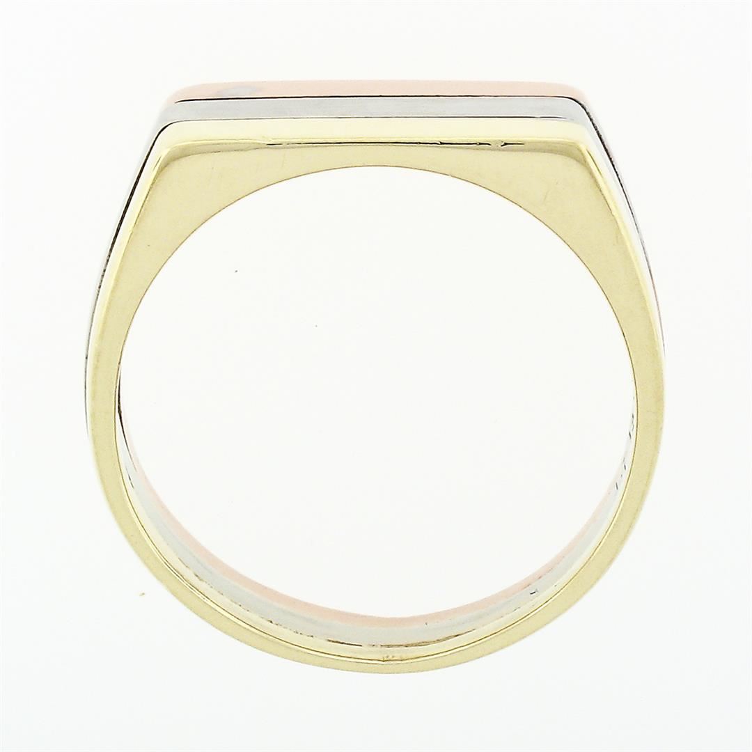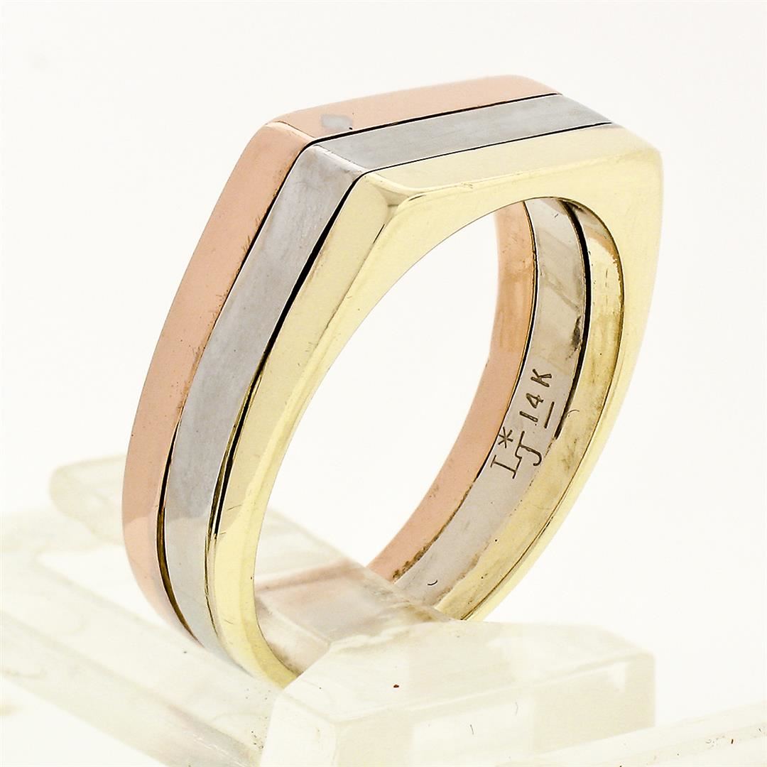 A vintage solid 14k tri color band ring. The ring is size 6.5, weighs a total of 5.60 grams, and measures 6.10mm wide.