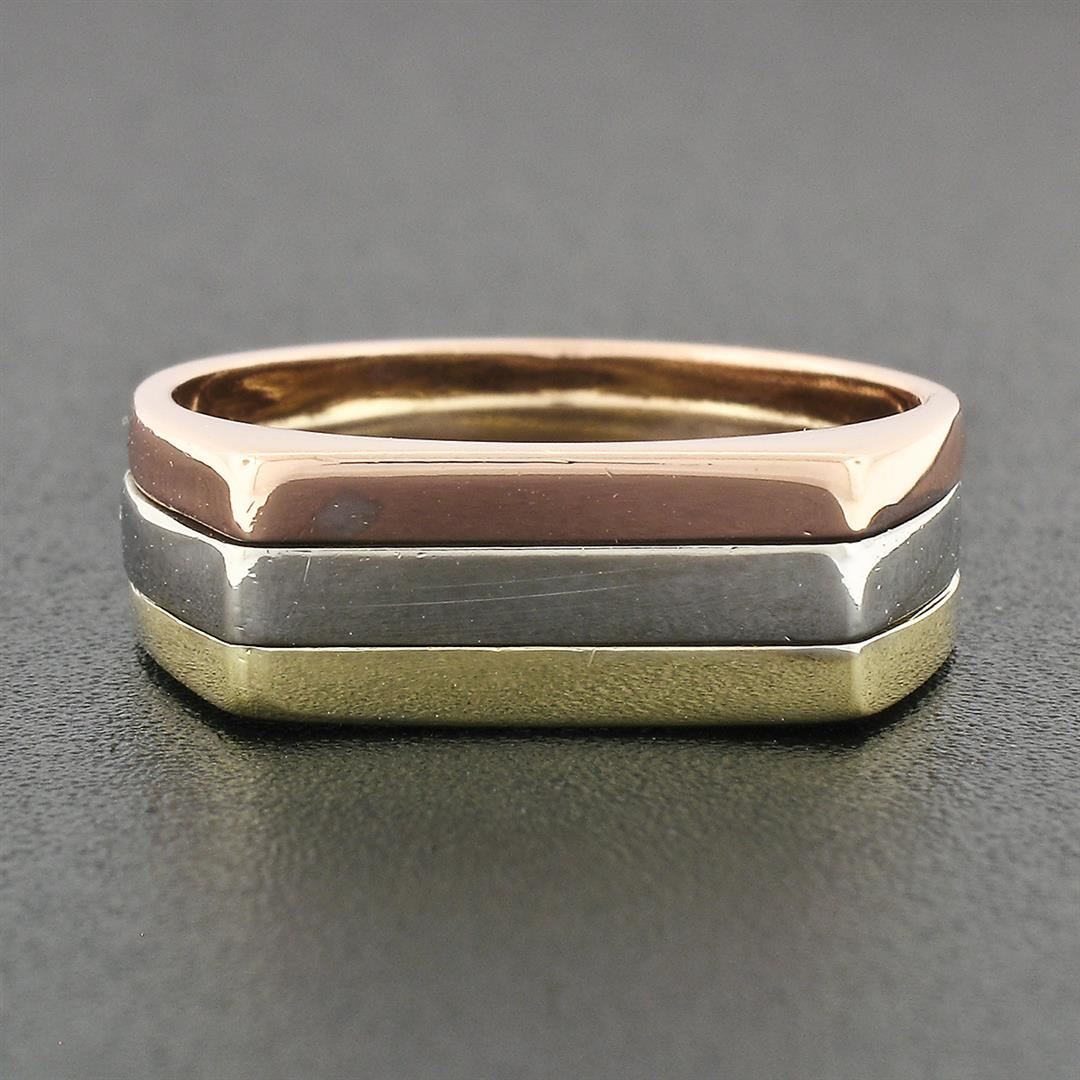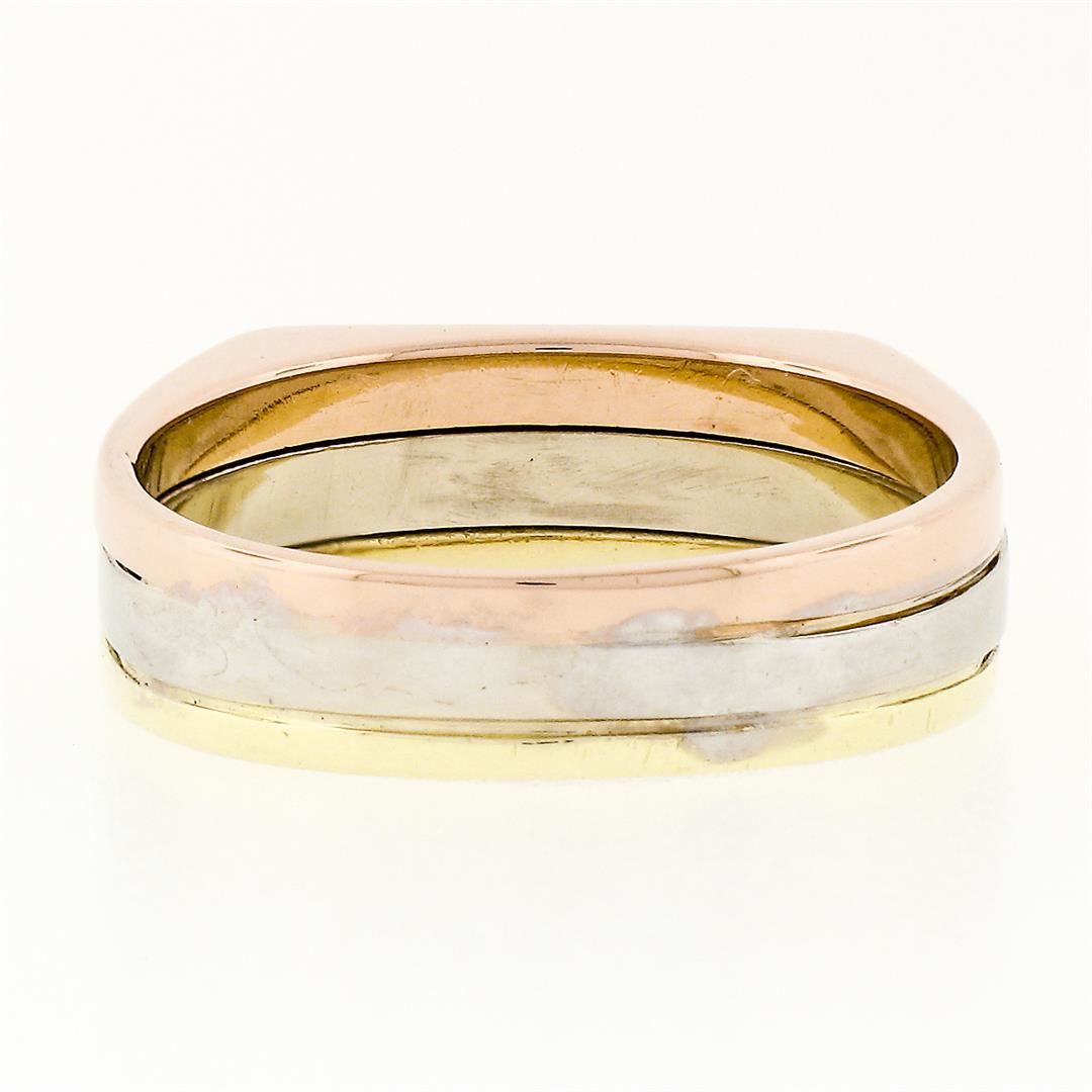 Vintage Solid 14k Tri Color Gold 6.1mm Wide Polished Squared Top 3 Row Band Ring