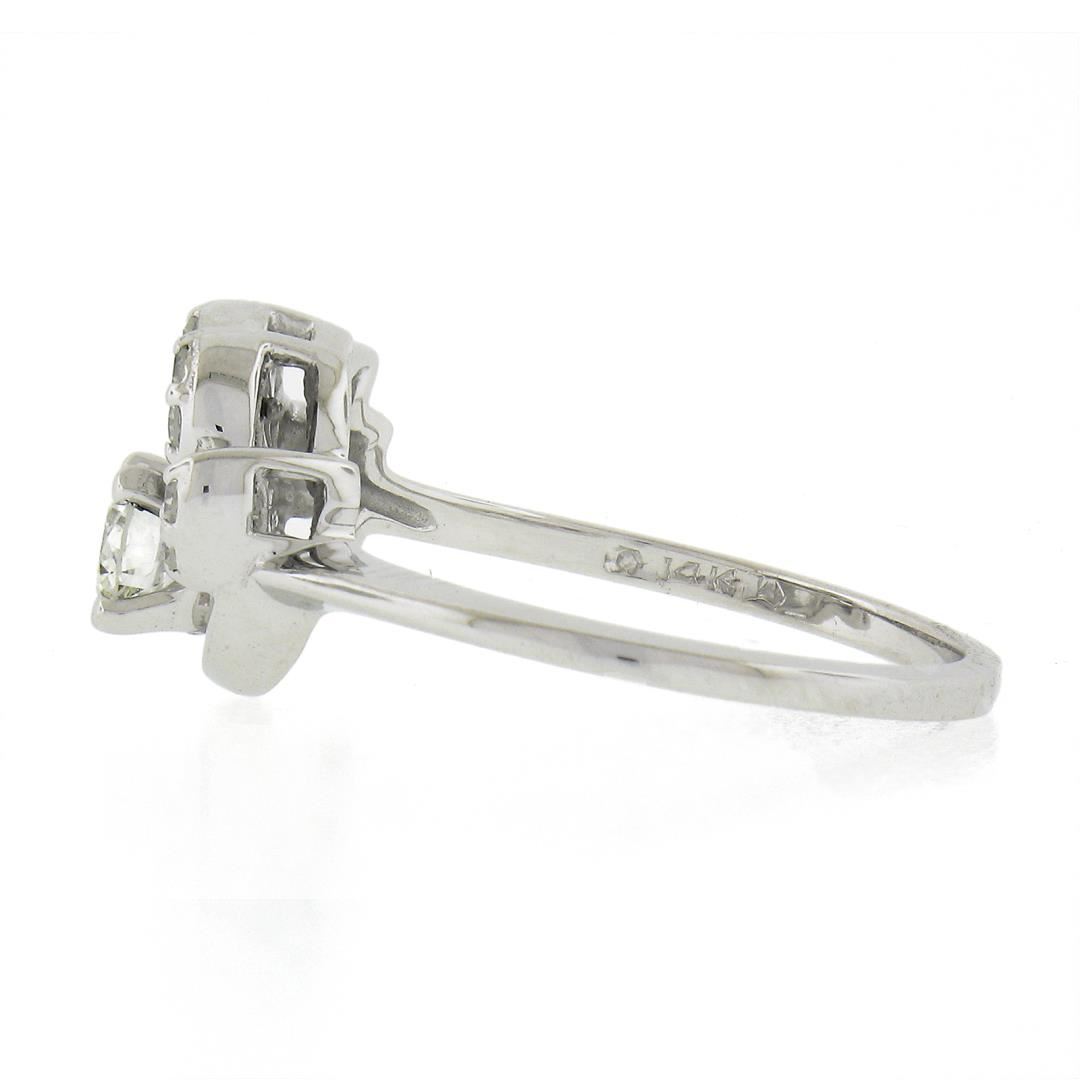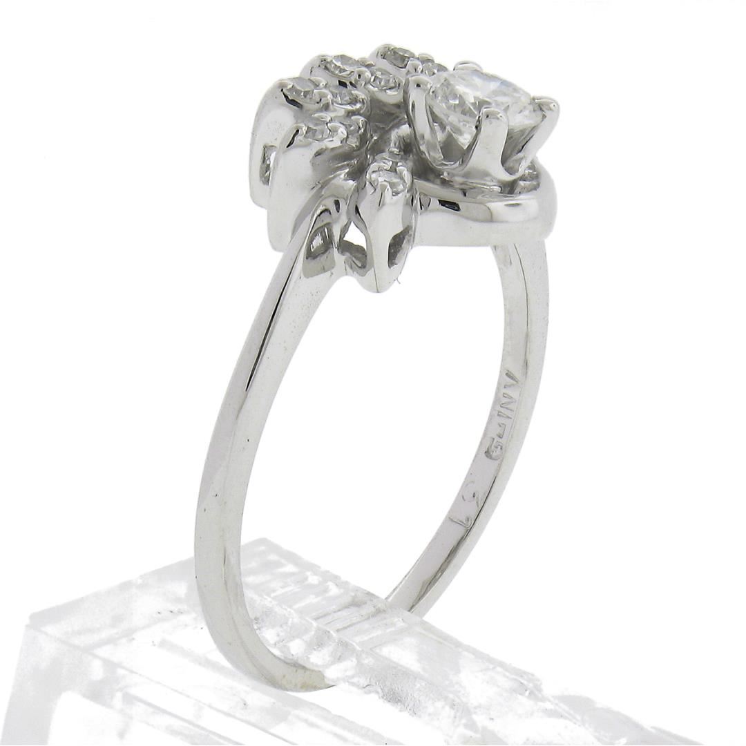 Vintage Solid 14k White Gold 0.45ctw Round Solitaire Diamond w/ Flame Ring