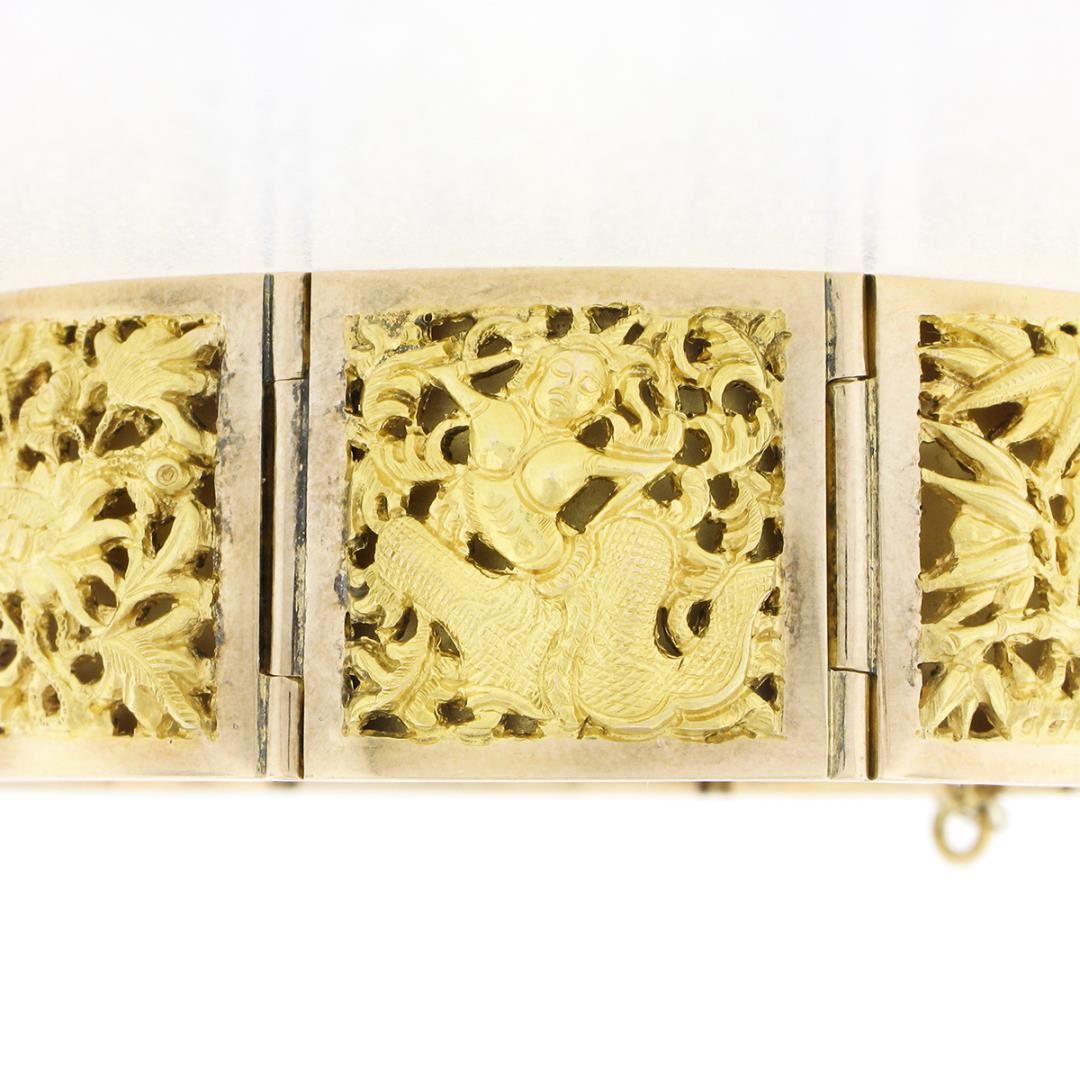 A vintage solid 18k yellow gold nautical bracelet. It weighs a total of 56.13 grams, measures 20.80mm wide, and measures 6.75 inches in length.