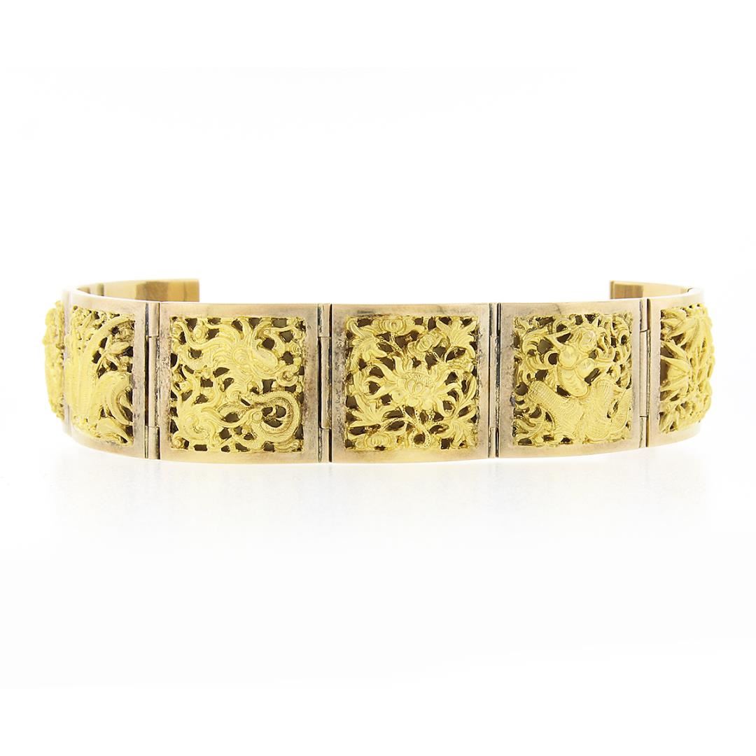 A vintage solid 18k yellow gold nautical bracelet. It weighs a total of 56.13 grams, measures 20.80mm wide, and measures 6.75 inches in length.