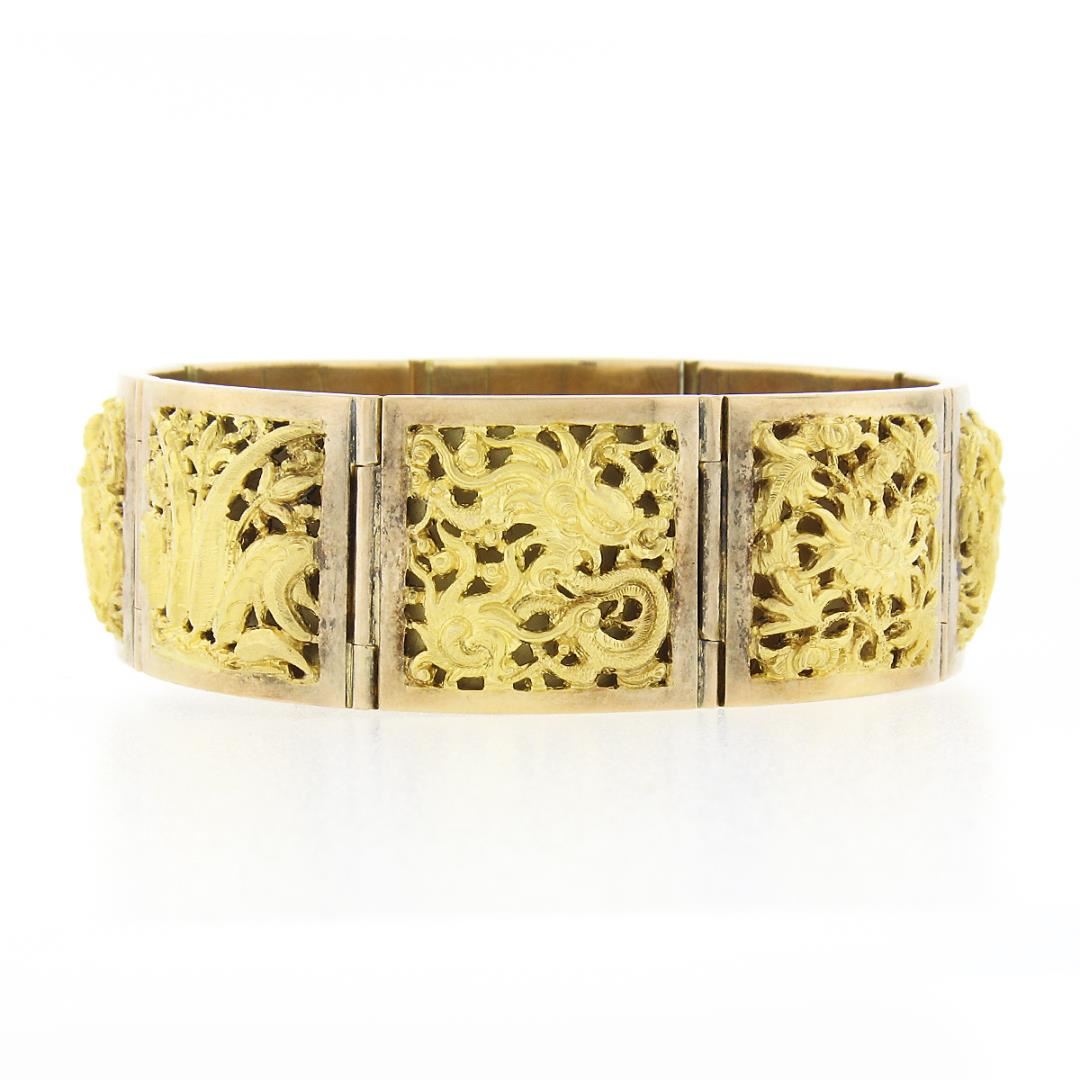 A vintage solid 18k yellow gold nautical bracelet. It weighs a total of 56.13 grams, measures 20.80mm wide, and measures 6.75 inches in length.