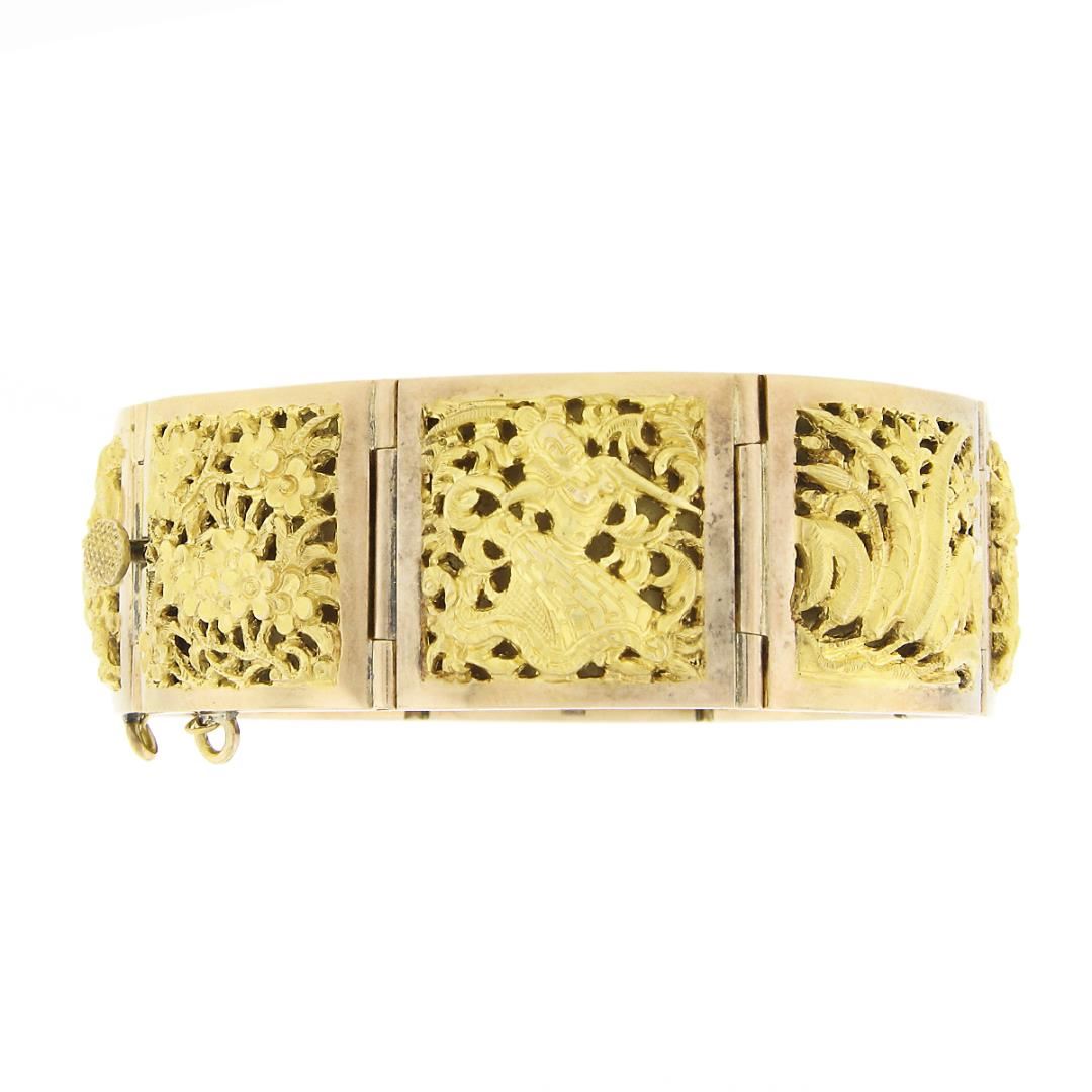 A vintage solid 18k yellow gold nautical bracelet. It weighs a total of 56.13 grams, measures 20.80mm wide, and measures 6.75 inches in length.
