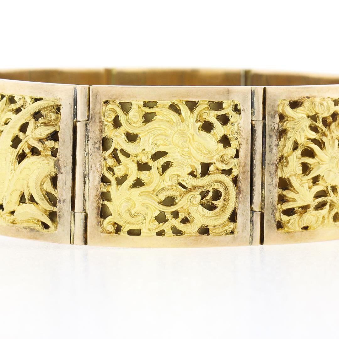 A vintage solid 18k yellow gold nautical bracelet. It weighs a total of 56.13 grams, measures 20.80mm wide, and measures 6.75 inches in length.