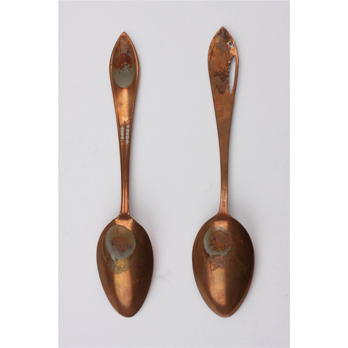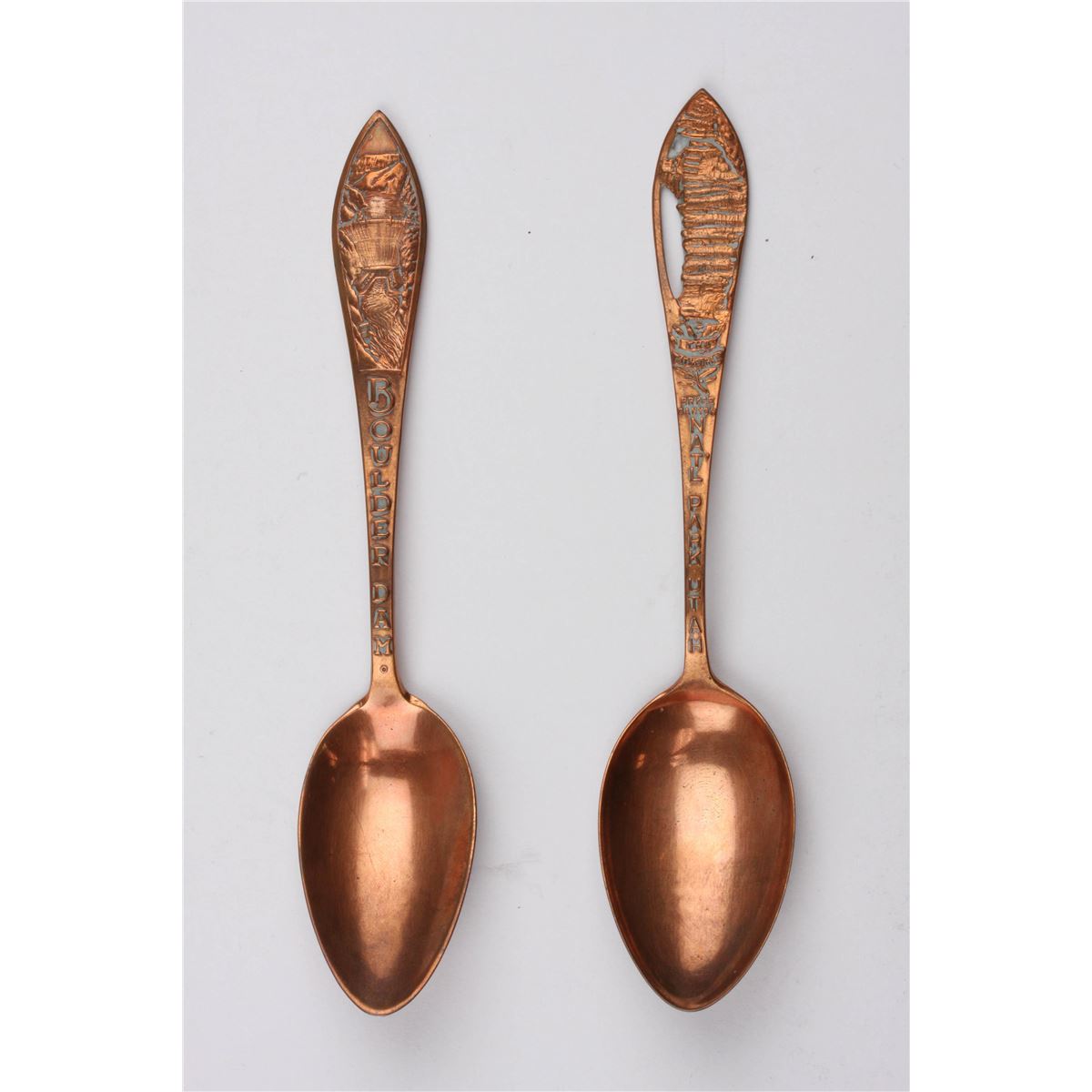 Lot of two vintage solid copper souvenir spoons. Both measure 5.5 inches, one is Boulder Dam and the other is Brice Canyon, Draper Utah.