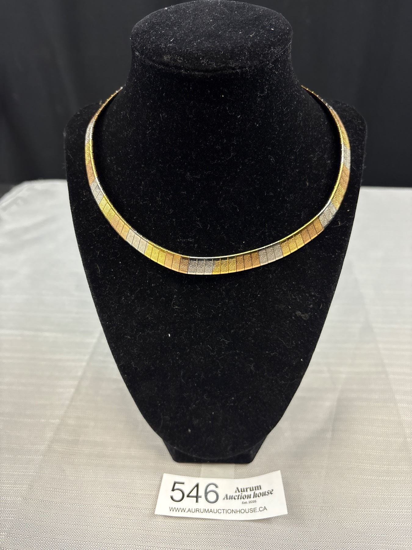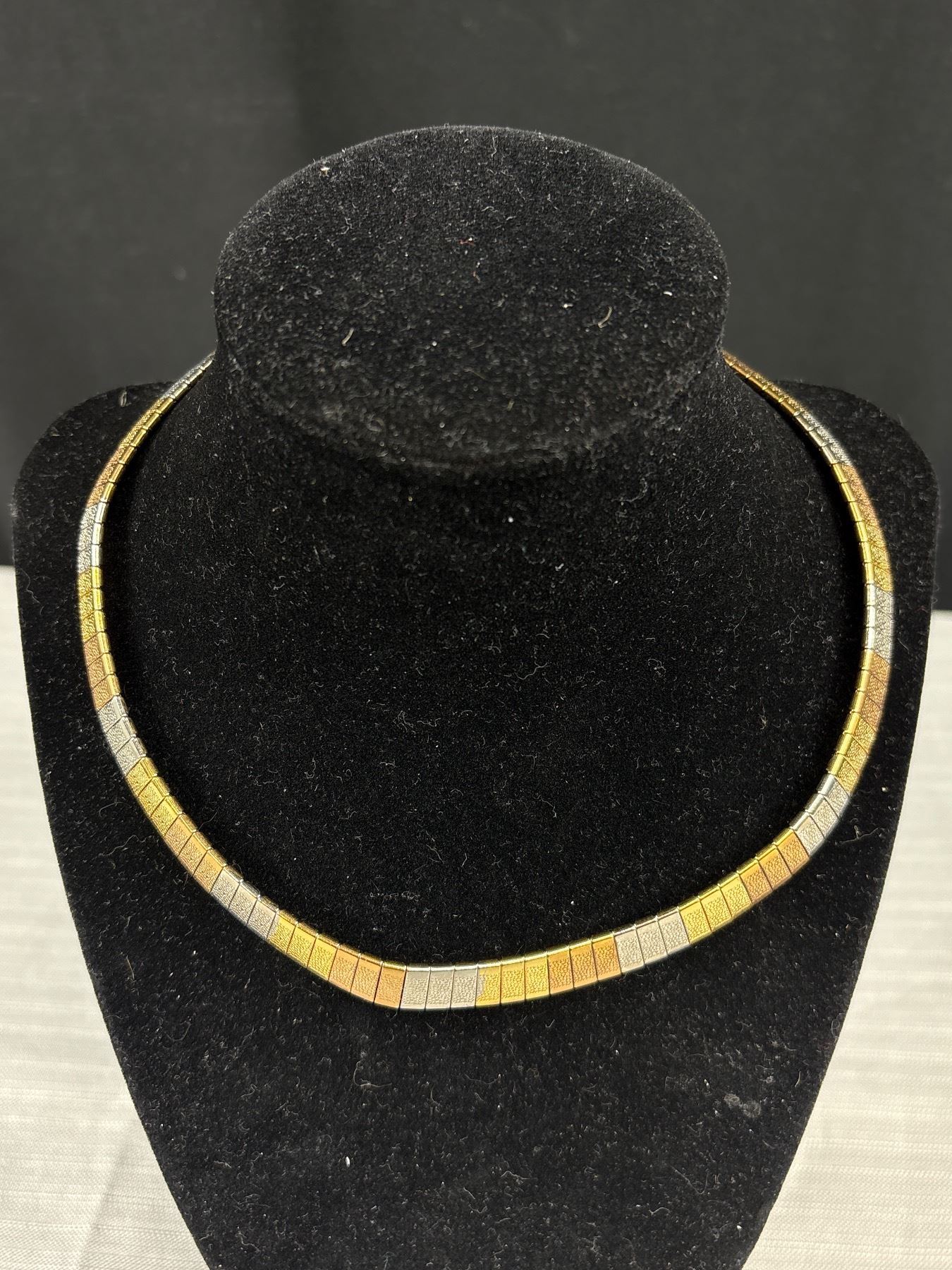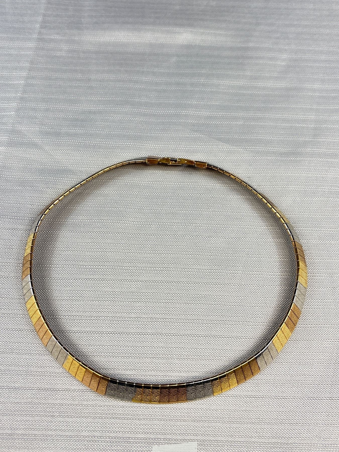 Vintage Solid Tri-Color Gold Collar Necklace Very Nice!