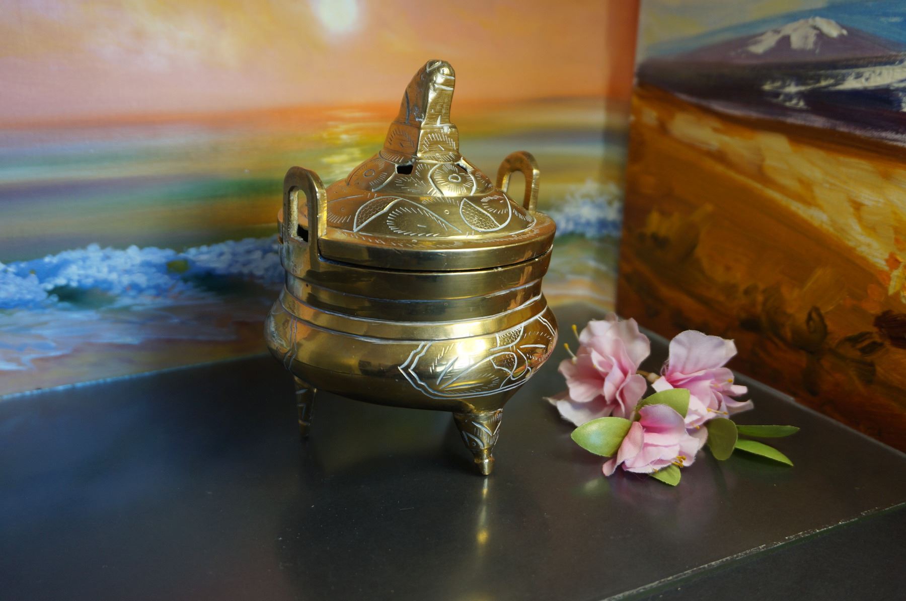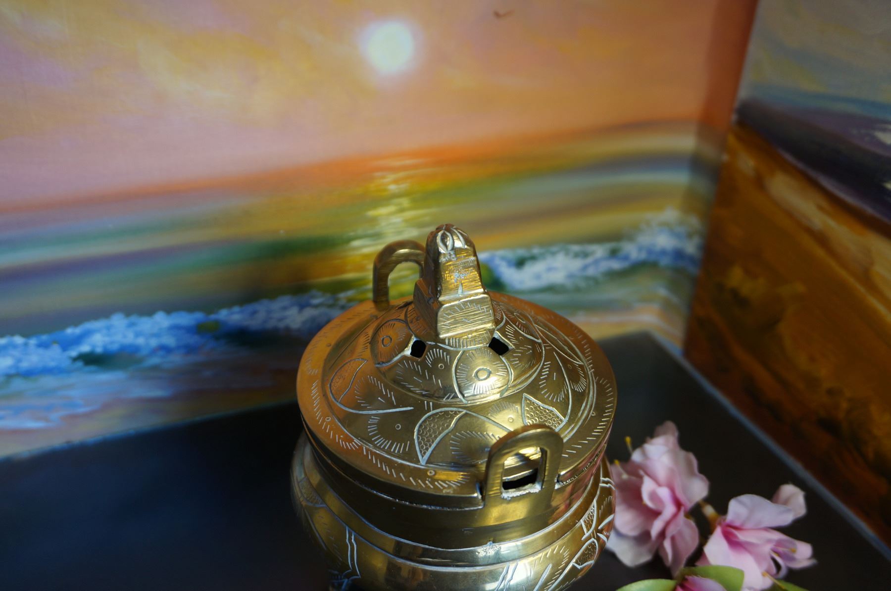 Vintage Solid brass Asian Censer with haracter mark at the bottom