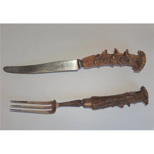 Vintage Solingen Stag Handle Knife and Fork Germany- The blade is marked: