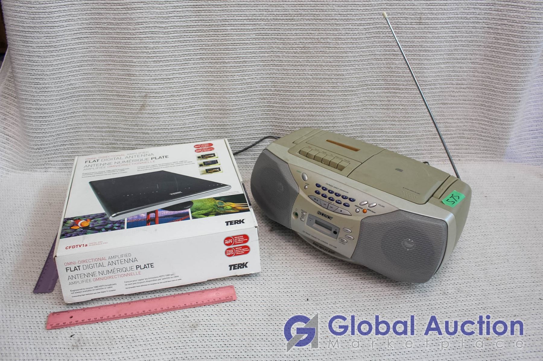 Vintage Sony CD Radio Cassette Recorder and Amplified Digital Antennae