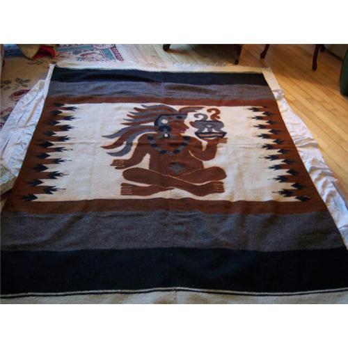 </font></strong>This is a wonderful wool rug.I have had it for many years but never knew alot about it.I took it to a dealer friend of mine and he said it was a South American wool rug.It is made in two pieces.Great design.I am not sure if the color has run at some time or if it is just that way.Measures a large 55x78.There are no holes or tears in this piece.Could probably use a good cleaning as I have had it stored for many years.</font>