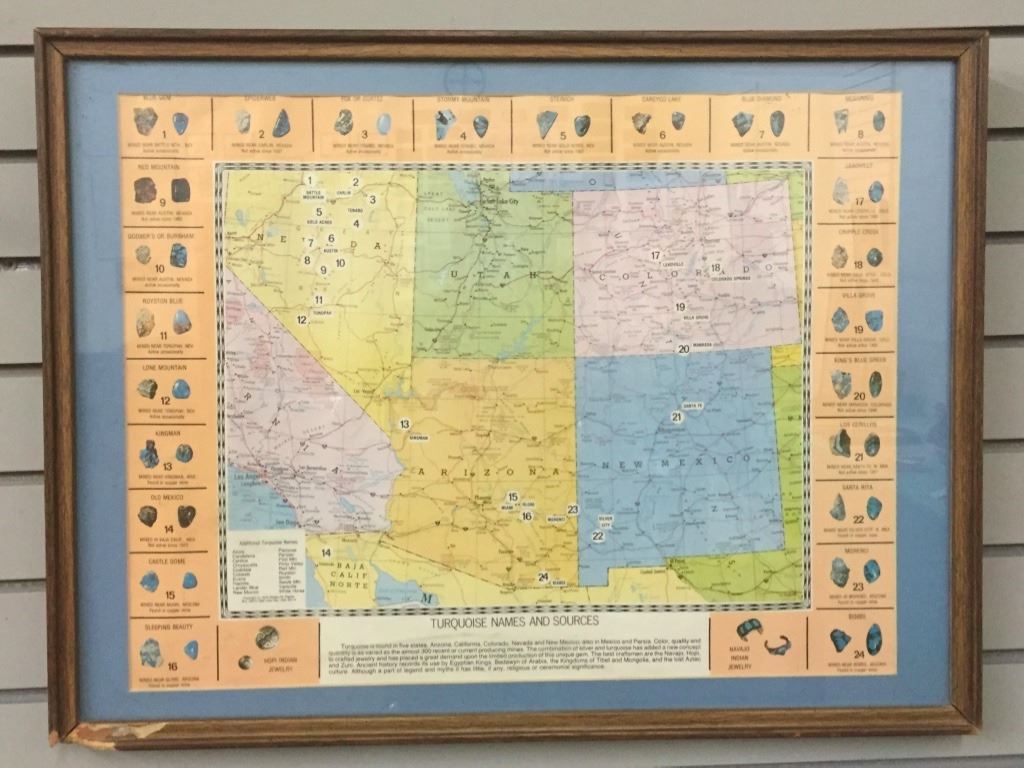 Measures 25 inches wide by 19 inches high including the frame. Map is from the early 1970s. Please note, one corner of the frame has been chewed up a bit. Please look closely at pics - they are an important part of our description. Shipping: There will be a $10 handling / packaging fee for shipping this lot. The actual cost of postage will be added on top of that.