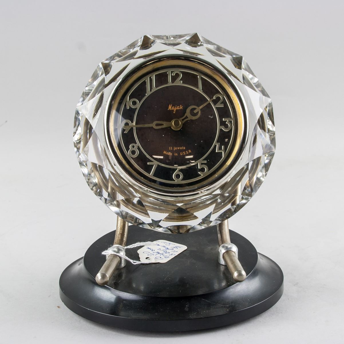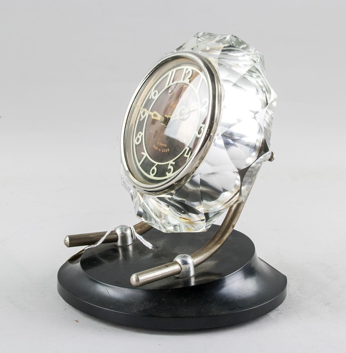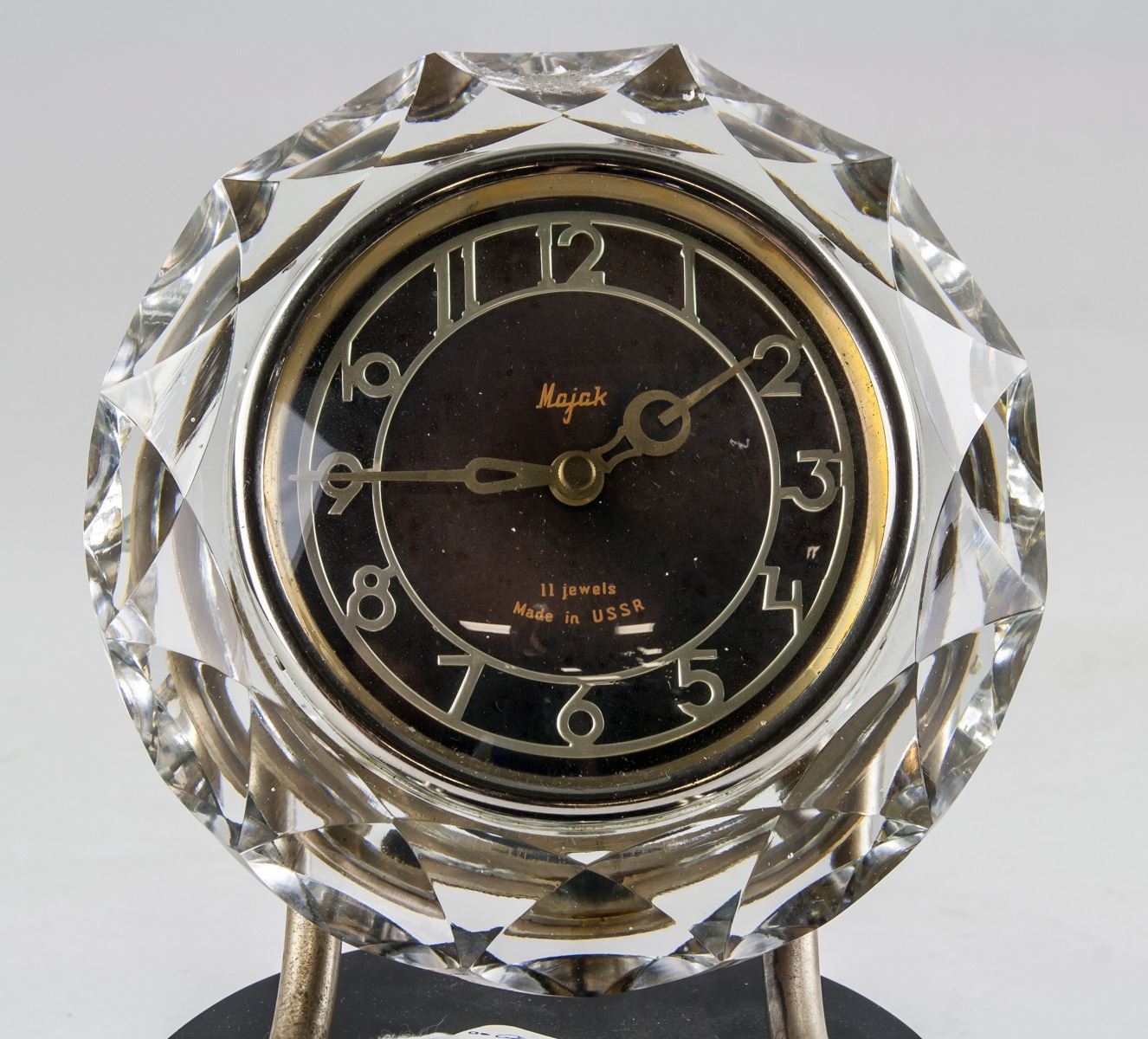 Vintage Soviet Union Majak 11 jewels crystal table clock, in working condition, 21 x 16 cm, 1804 grams
