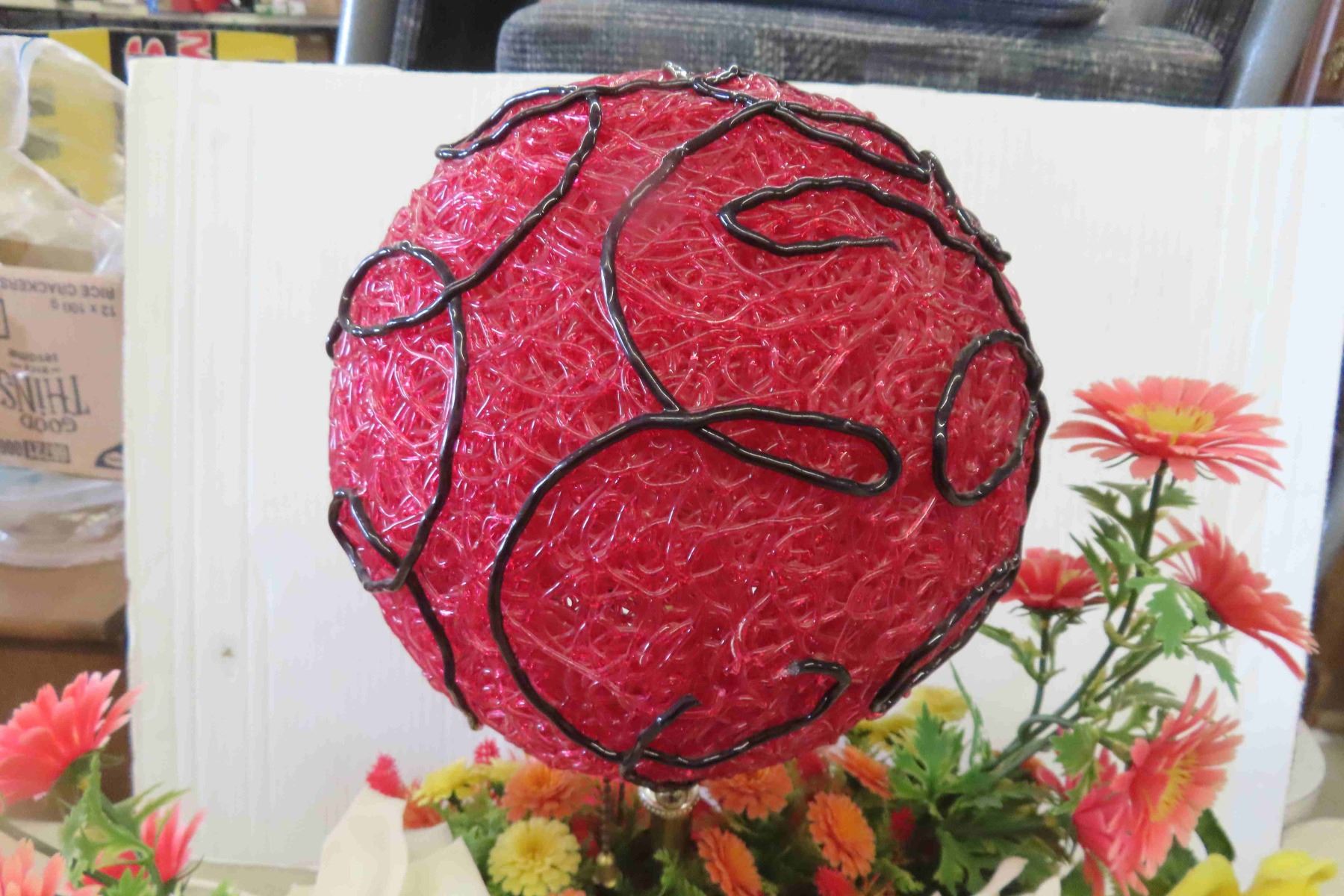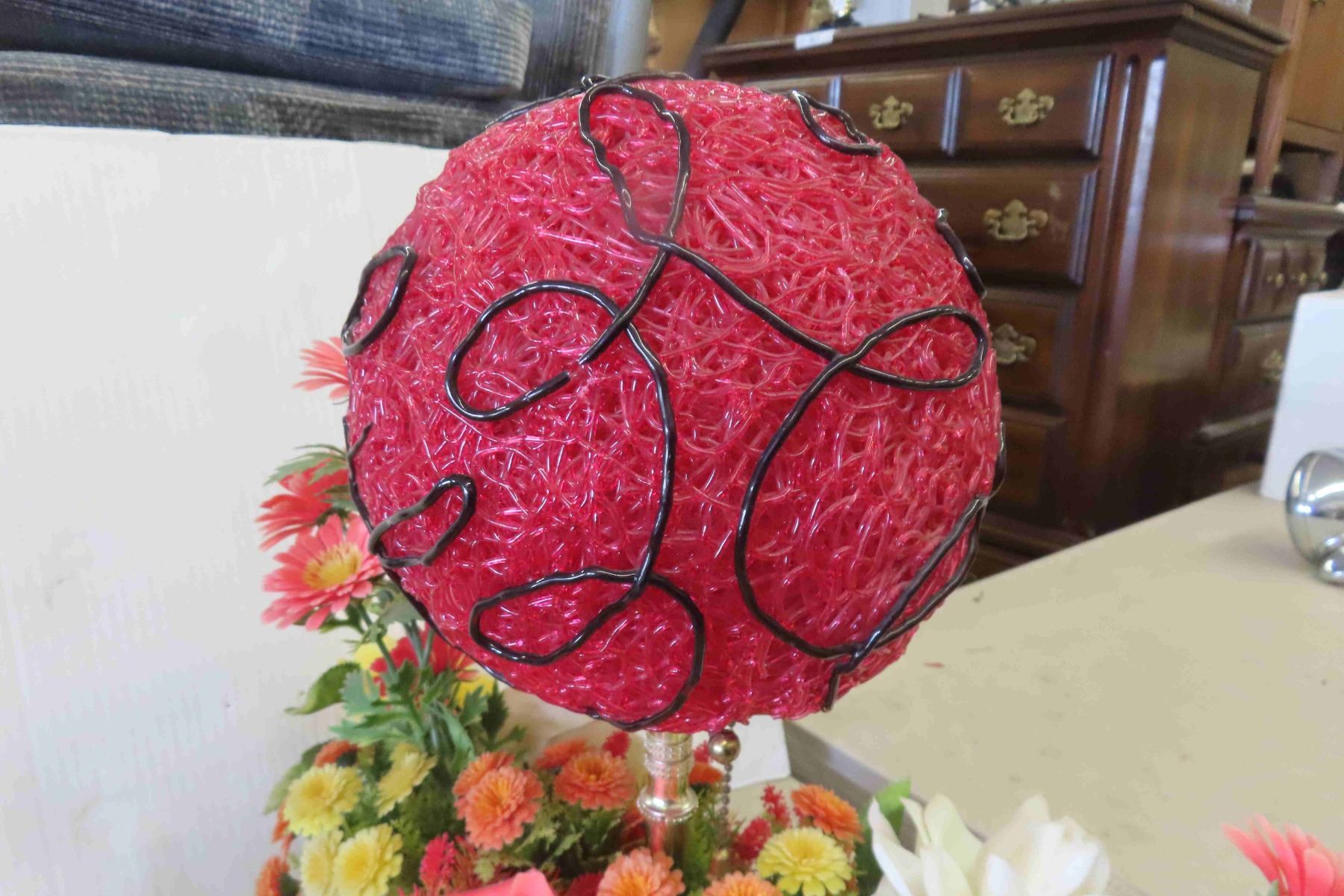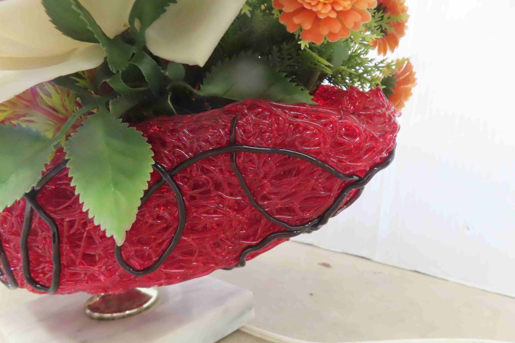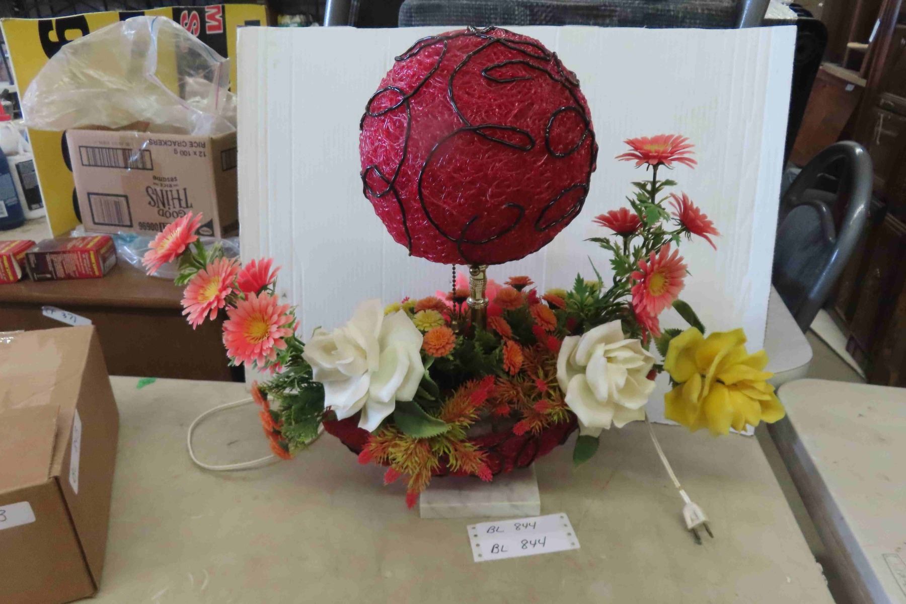 Vintage Spaghetti Lamp With Floral Display 19"x 21" In a Spaghetti Style Planter On a Marble Base
