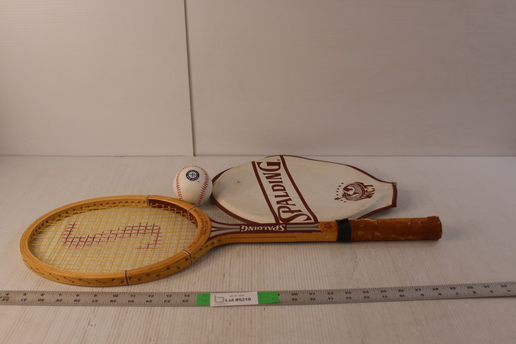 Vintage Spalding Tennis Racquet with Case & Seattle Mariners Baseball