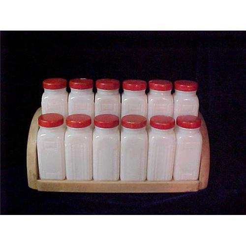 Vintage Spice Rack, Milk Glass Jars with Red #2247851