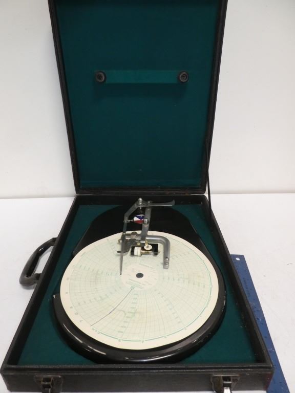 c/w Protective Case A chart recorder is an electromechanical device that records an electrical or mechanical input trend onto a piece of paper (the chart). Chart recorders may record several inputs using different color pens and may record onto strip charts or circular charts. Chart recorders may be entirely mechanical with clockwork mechanisms, electro-mechanical with an electrical clockwork mechanism for driving the chart (with mechanical or pressure inputs), or entirely electronic with no mechanical components at all (a virtual chart recorder).