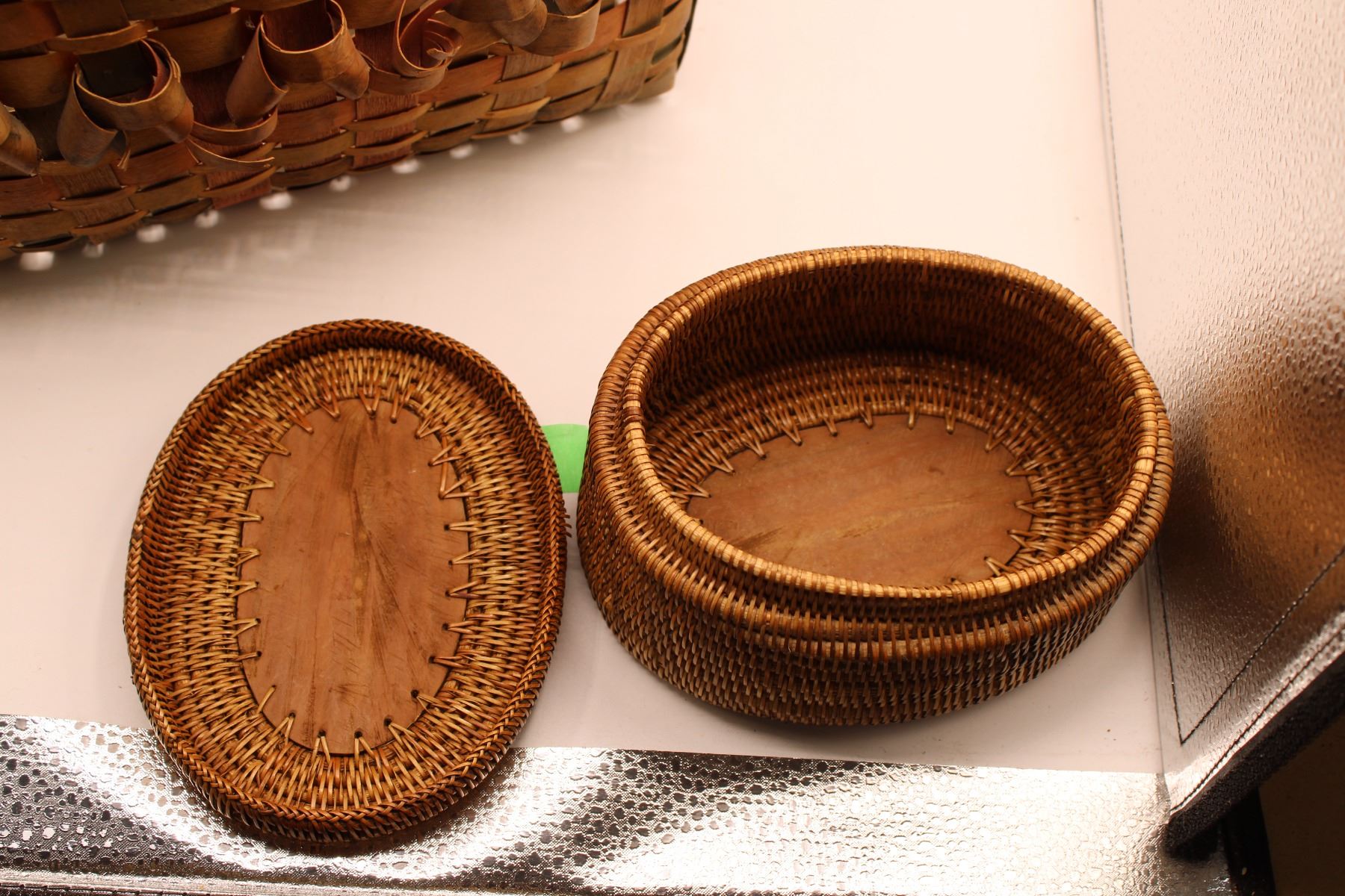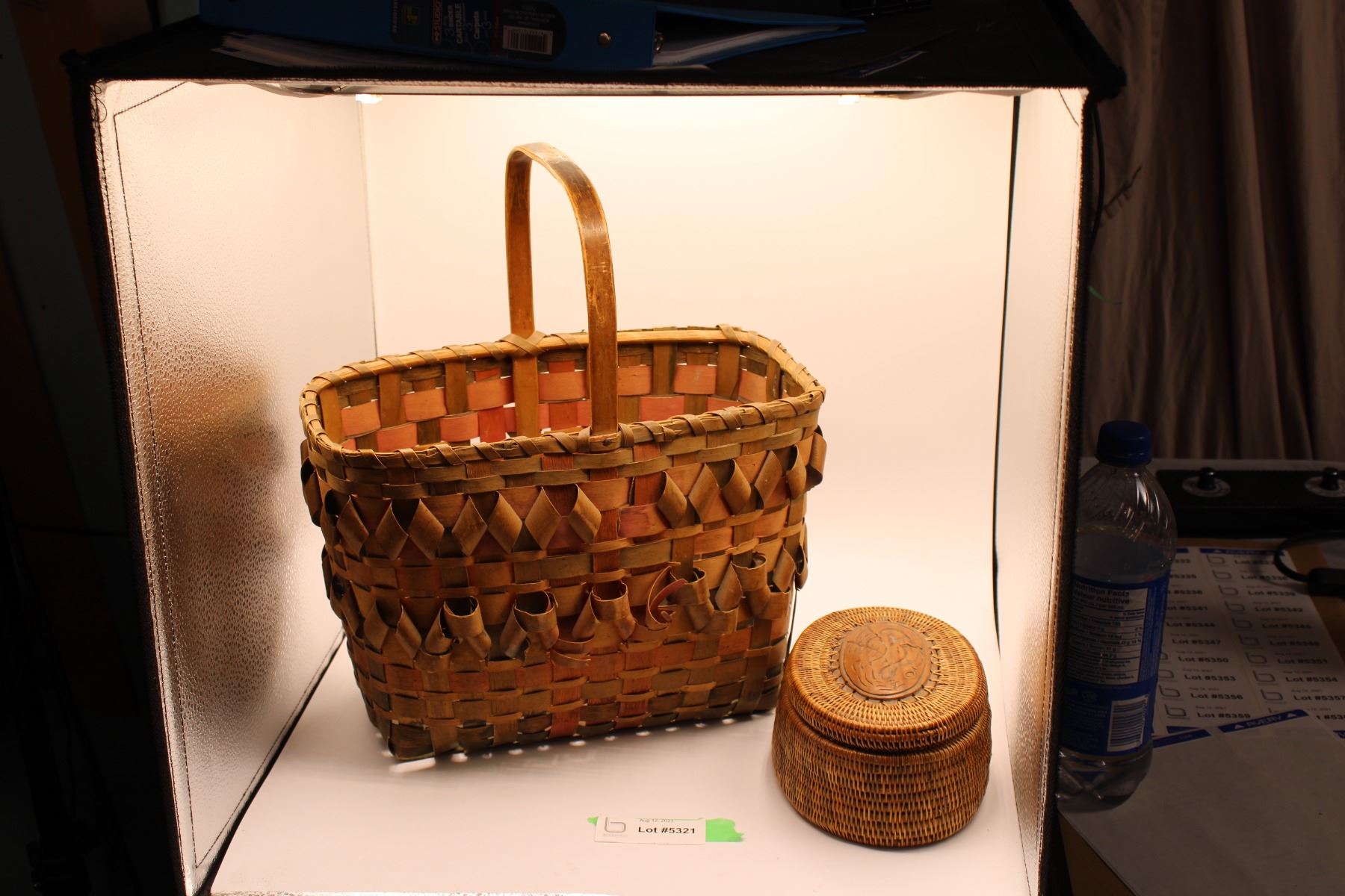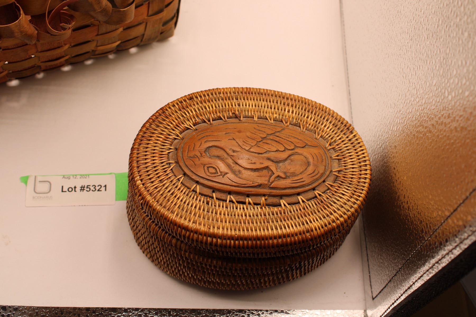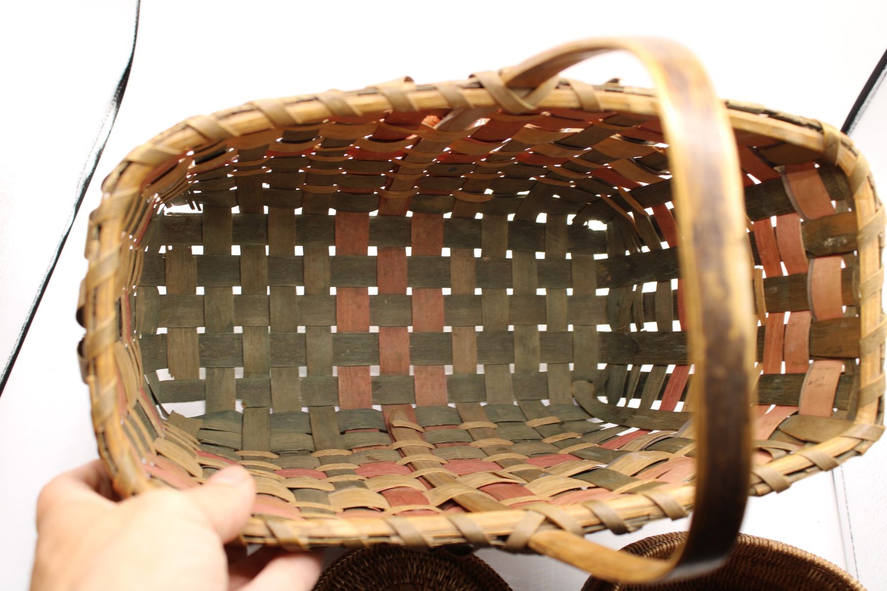 Vintage Splint Basket + Woven Native Basket (Carved center medallion)