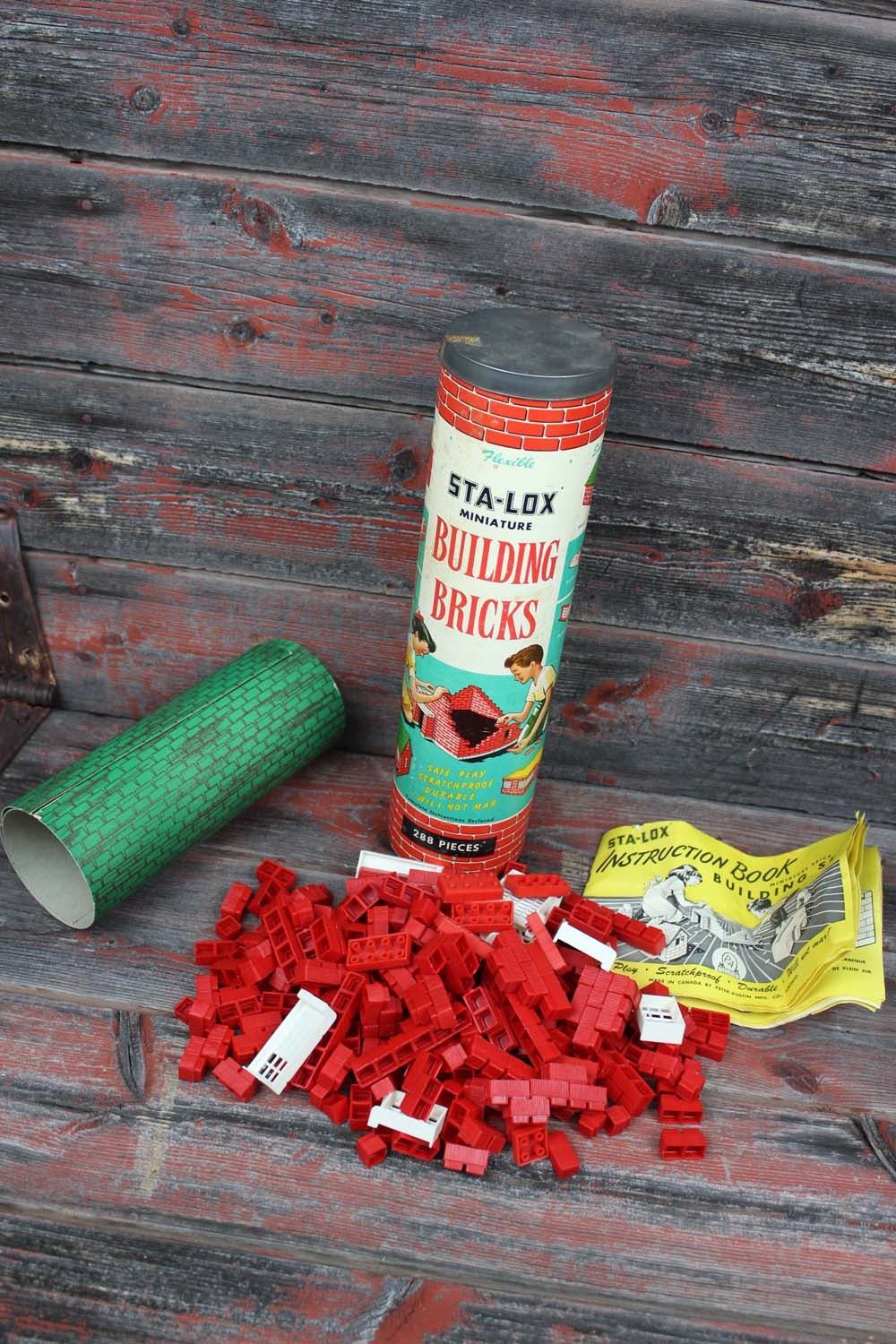 Vintage Sta-lox Brick Toy Tin Full With Instructions